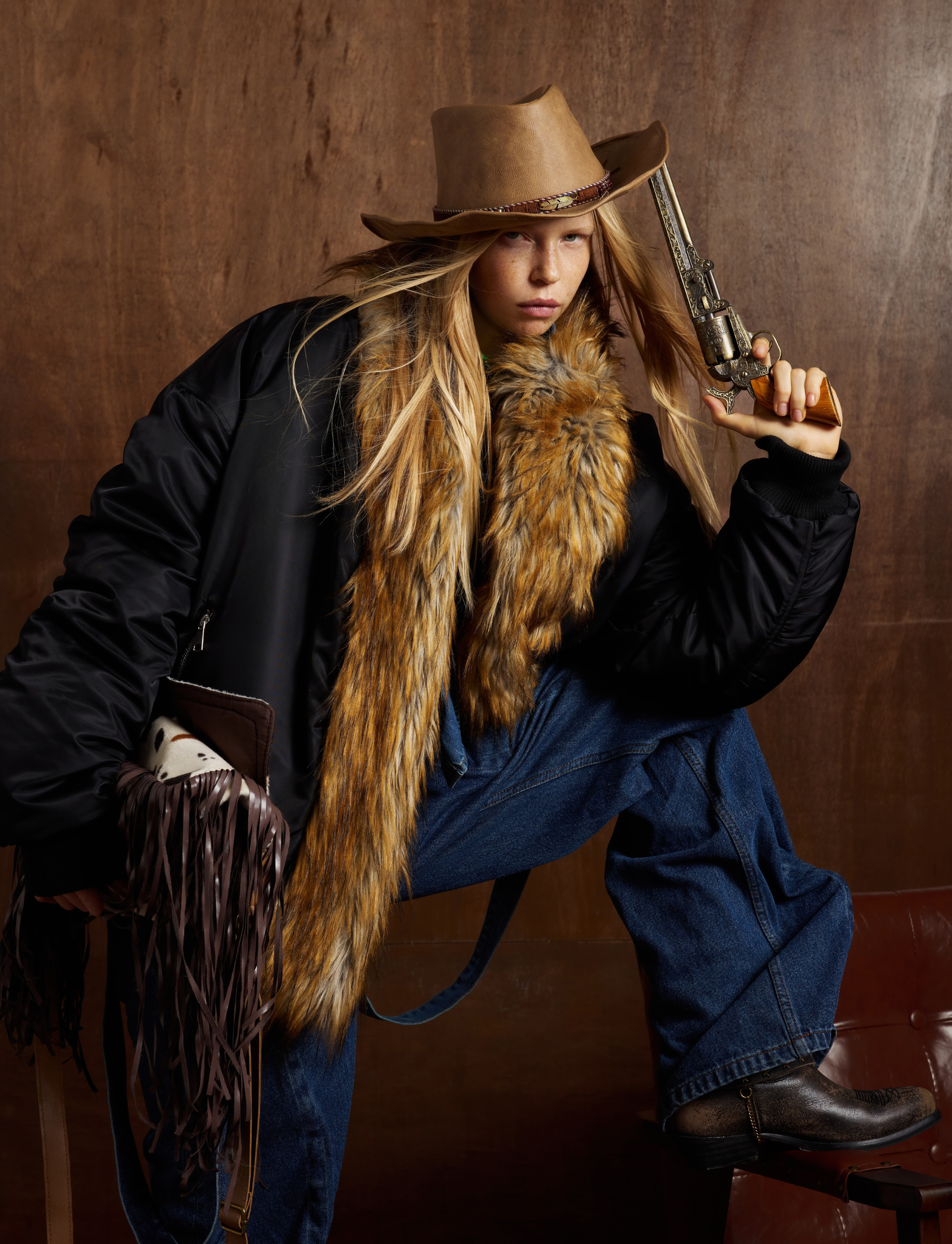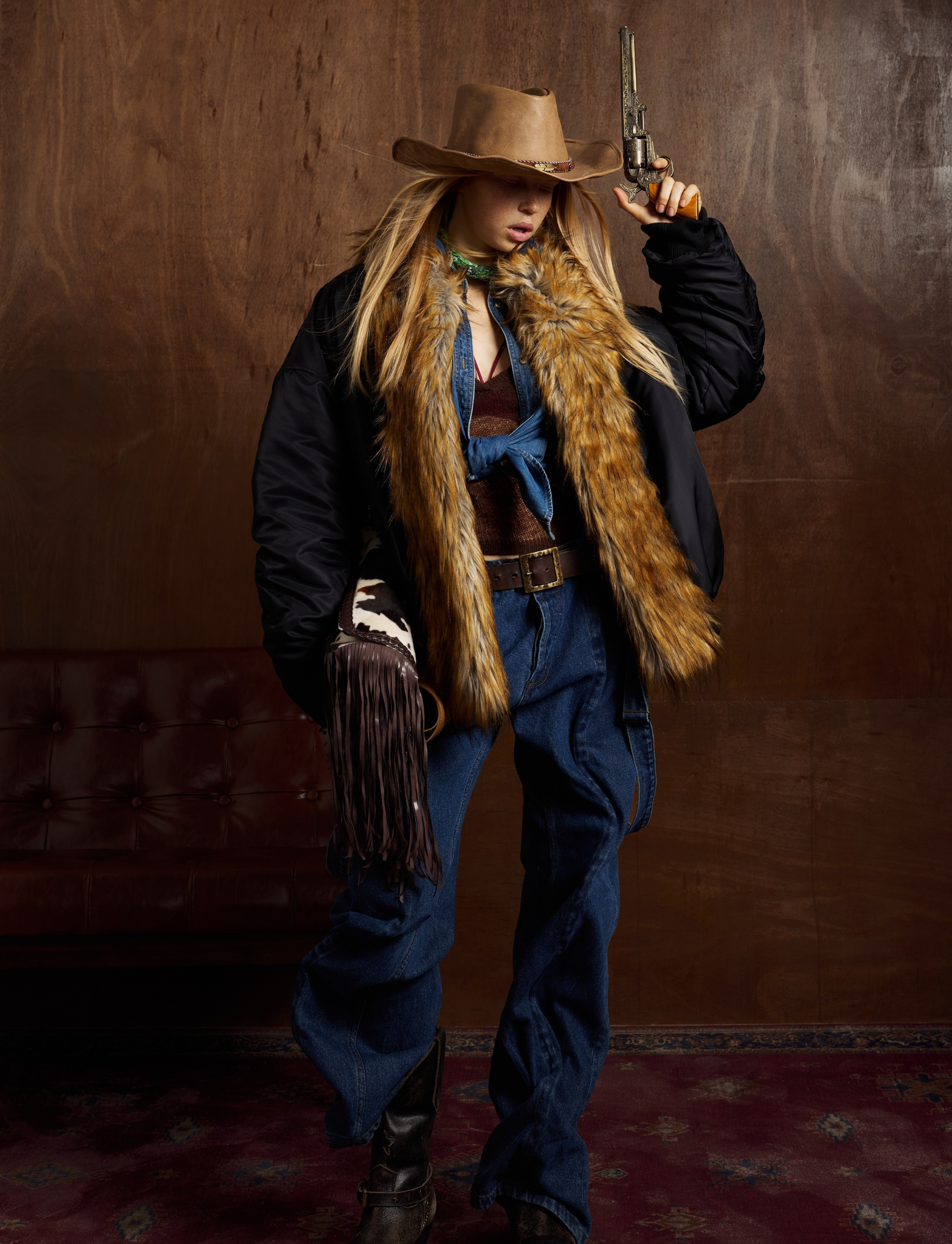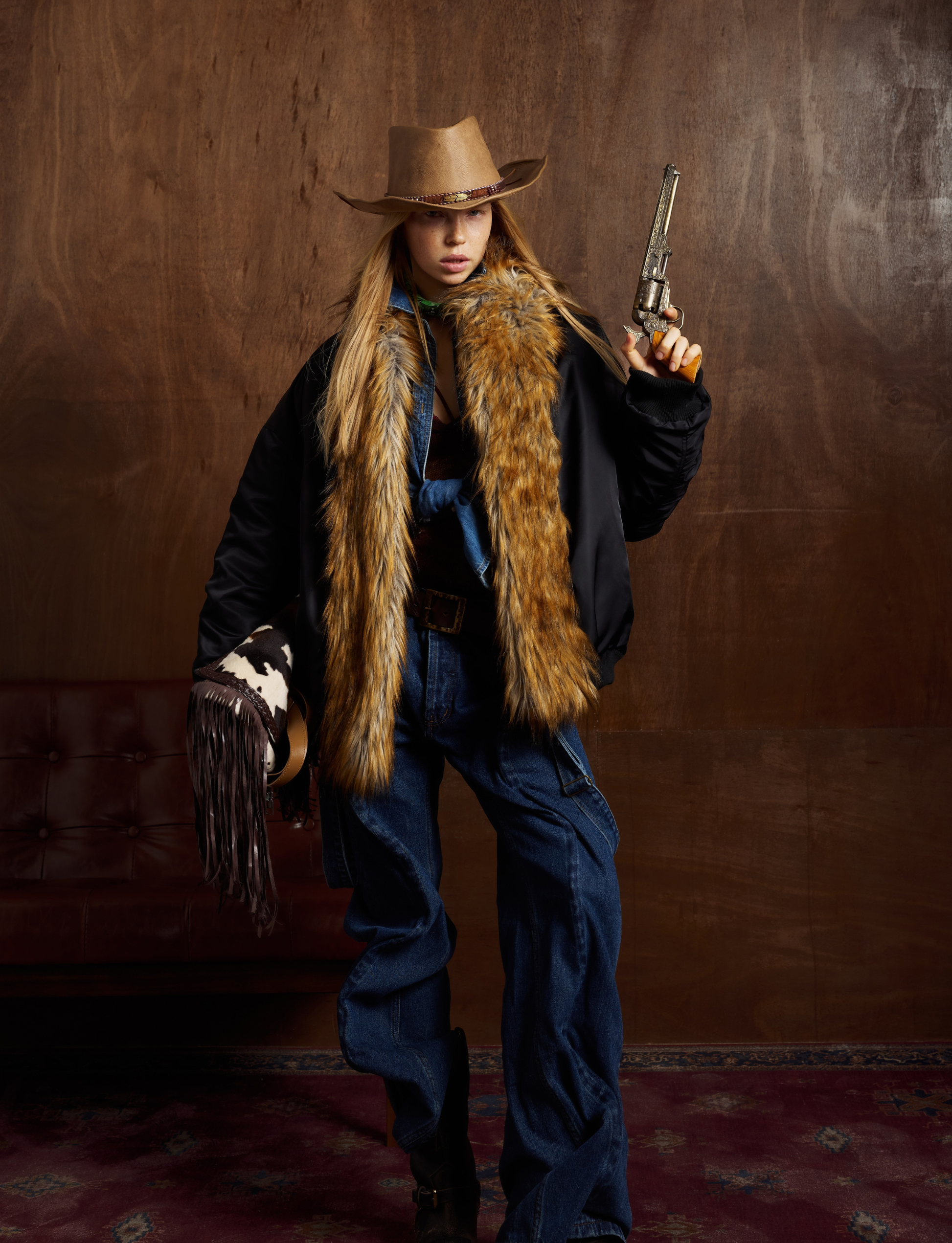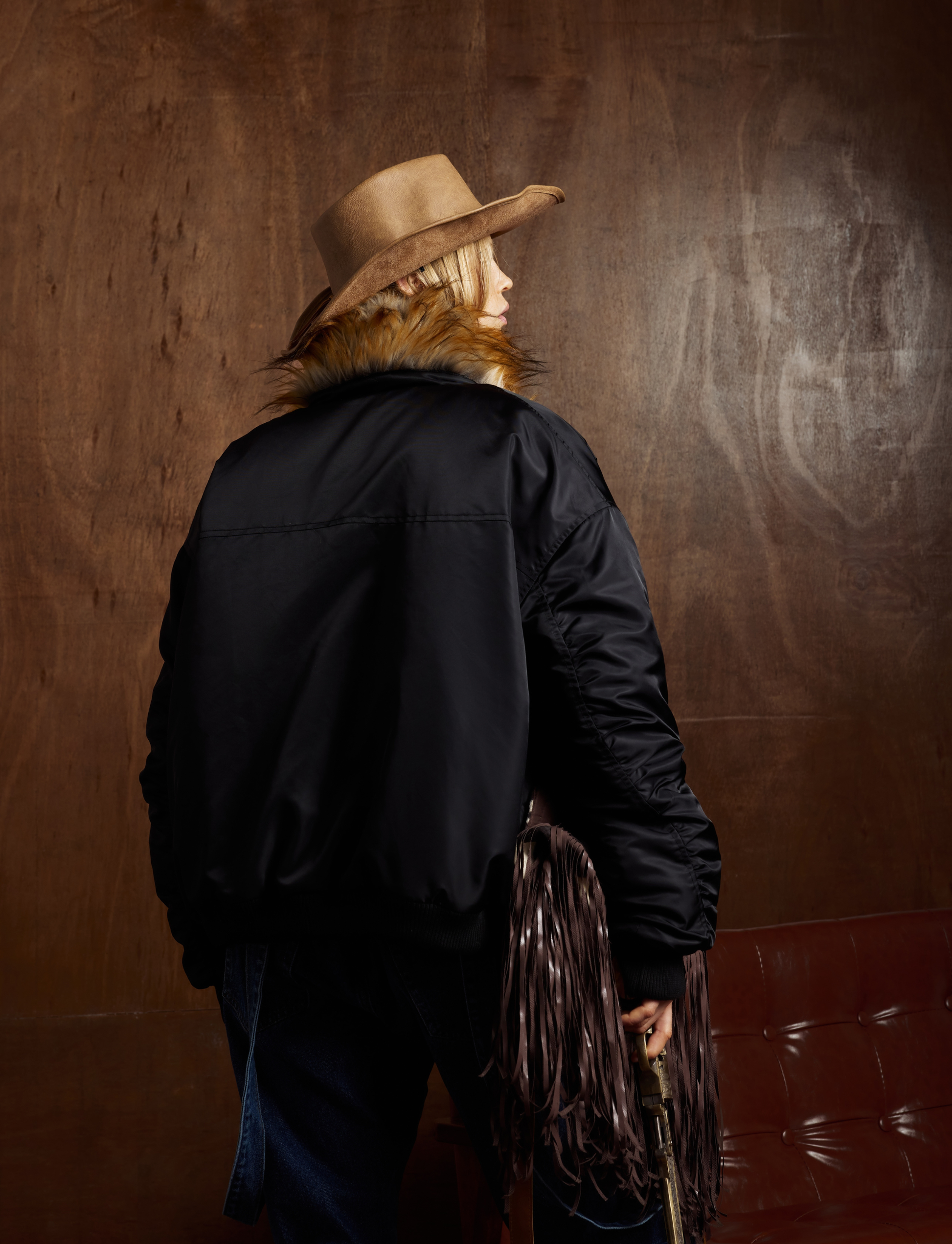 The Omirad Faux-Fur Lined Bomber Jacket delivers bold winter energy with a sleek black shell and oversized fur-lined front. Featuring a soft faux-fur interior and collar trim, it balances warmth with attitude. Ribbed cuffs and hem lock in structure, while the heavyweight padding adds volume — a statement outer layer built for cold-weather dominance.