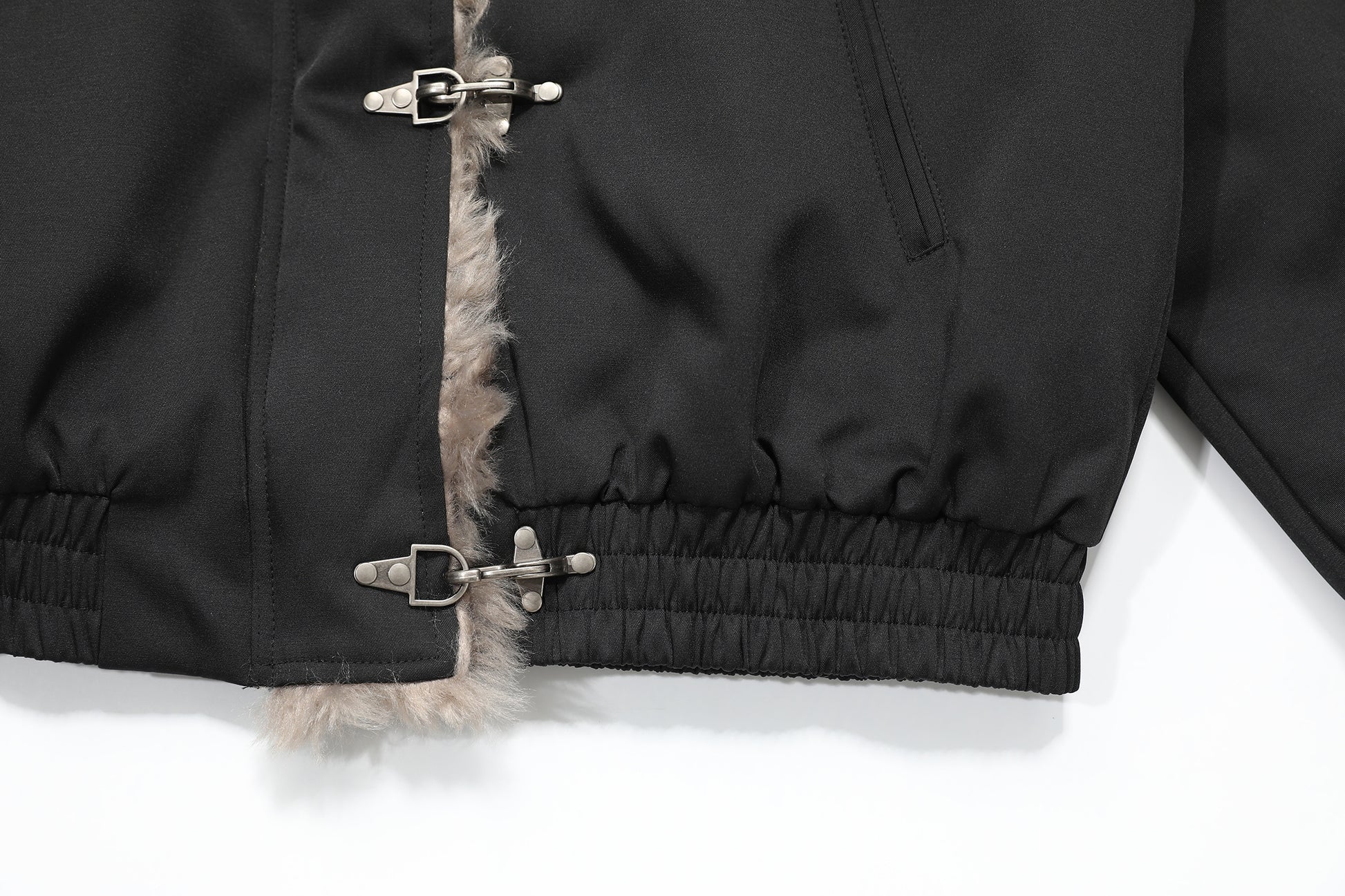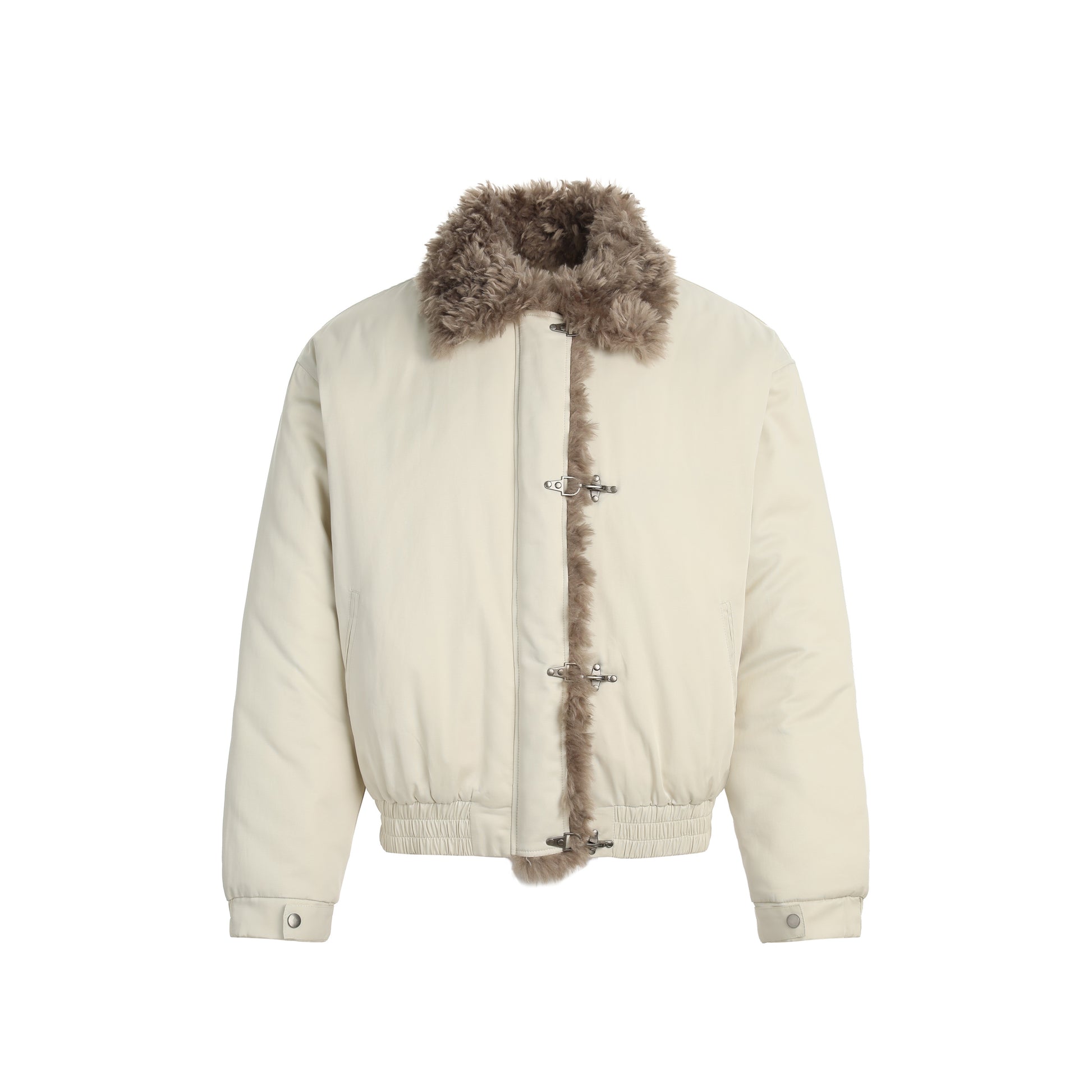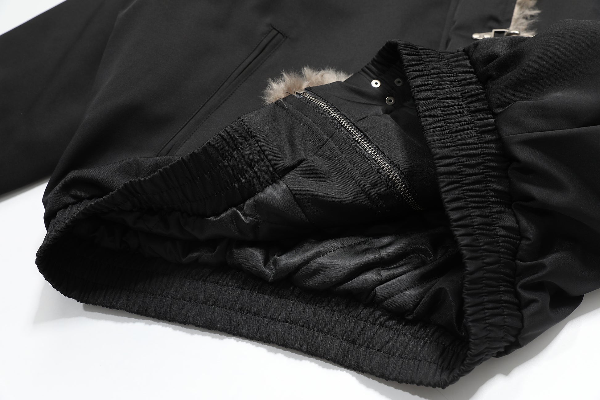 The Omirad Faux-Fur Trim Bomber Jacket features a clean minimalist bomber silhouette paired with a plush faux-fur trimmed front placket and collar, delivering a sharp contrast between luxury texture and street utility. Designed with a cropped padded fit, this jacket brings both cold-weather protection and elevated street presence.