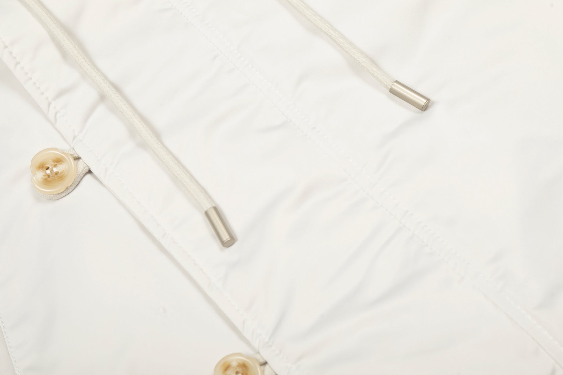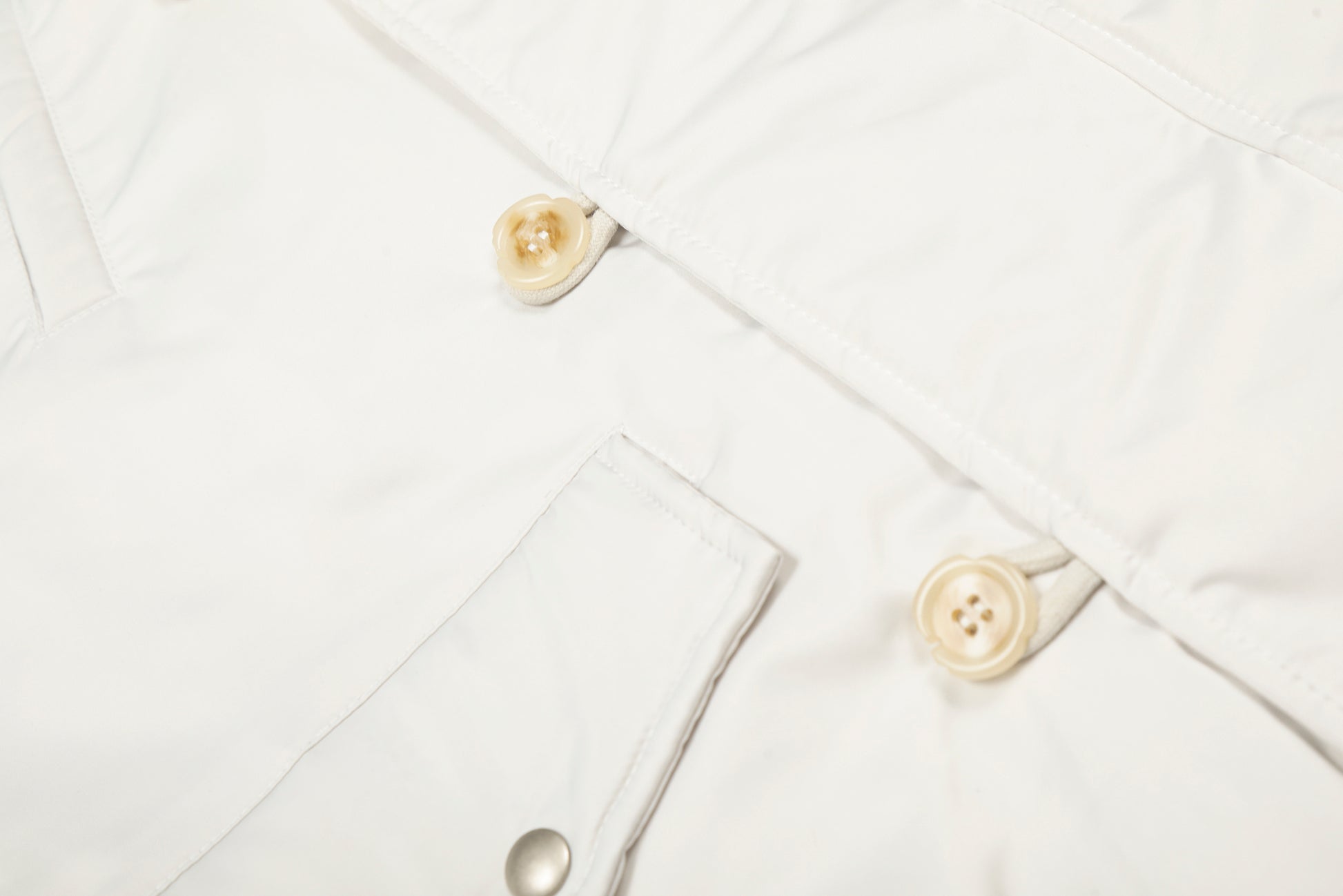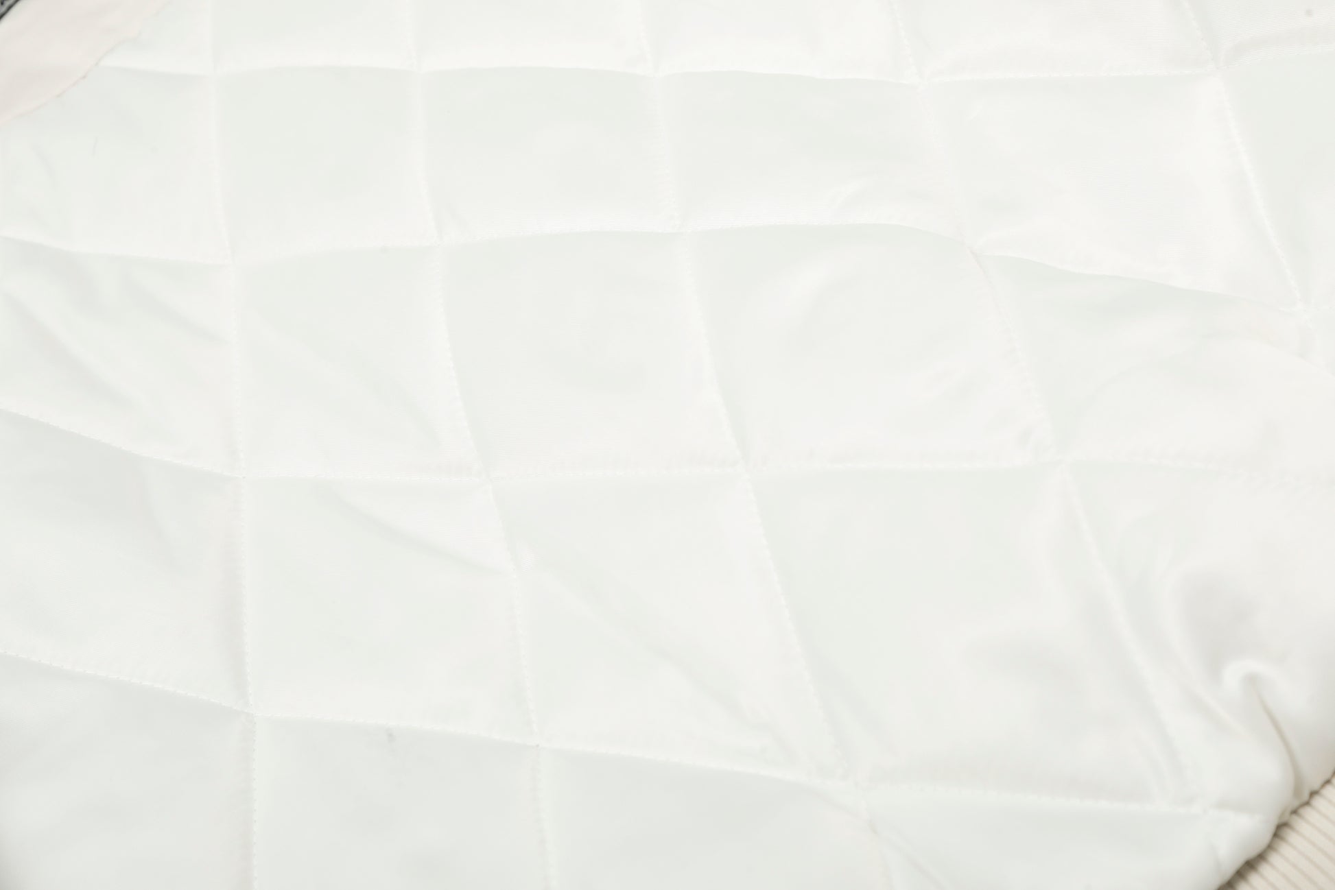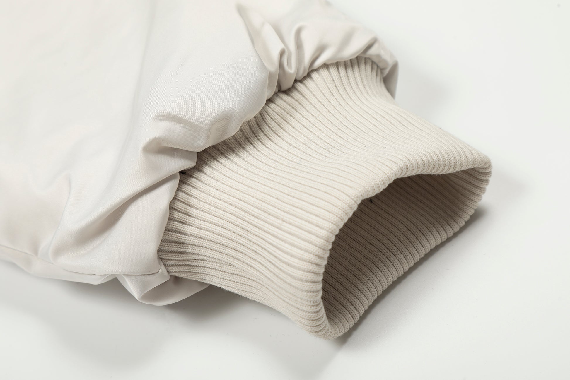 Clothing details: Detachable faux fur hood trim, padded bomber design, button and zipper front closure, ribbed cuffs and hem, cropped silhouette