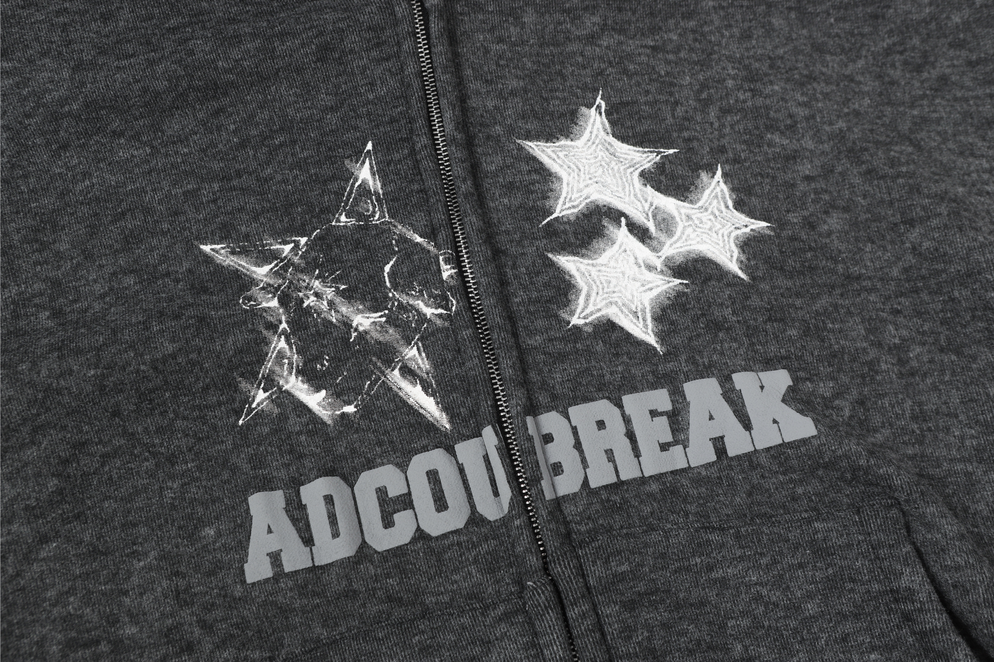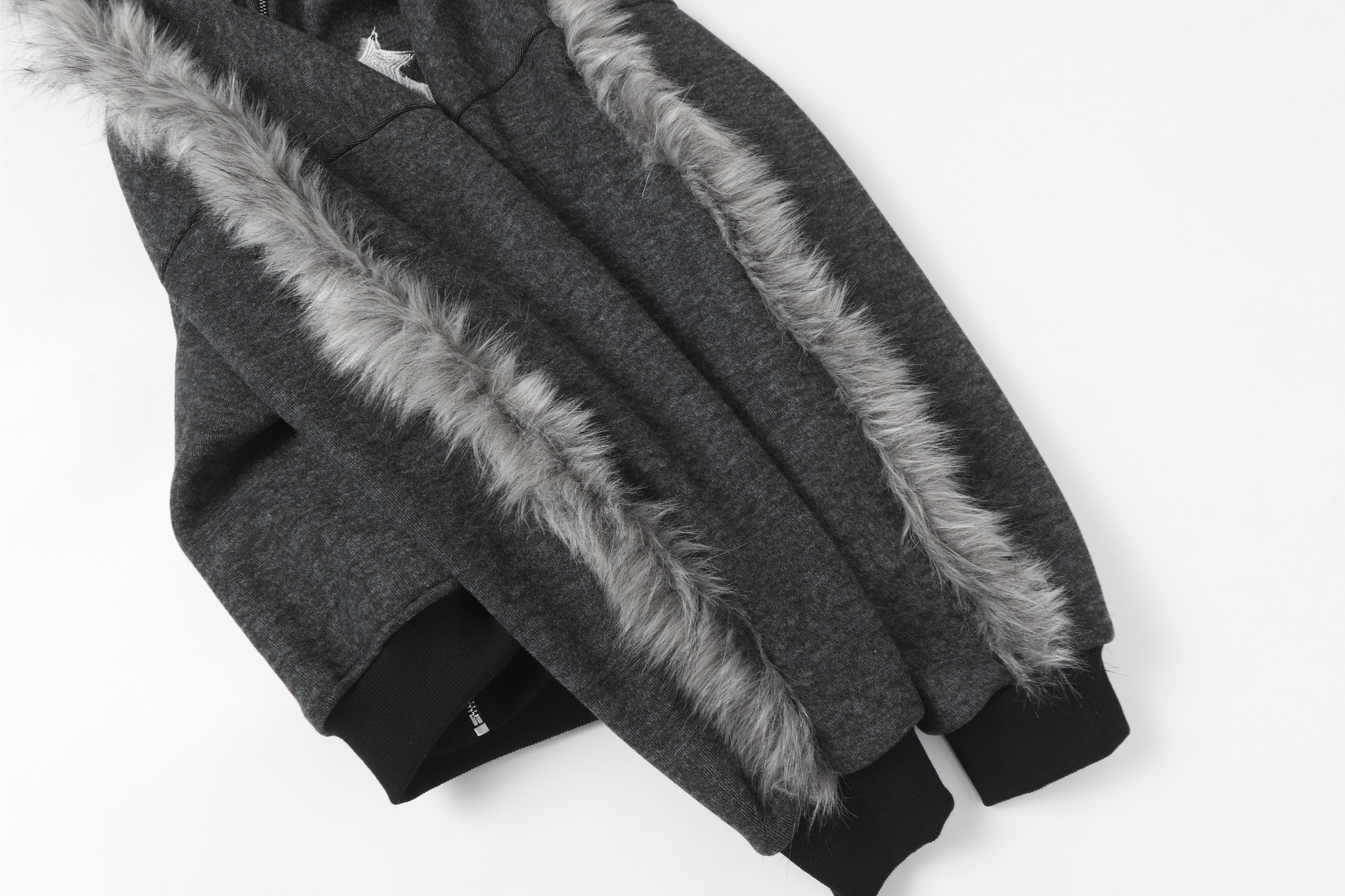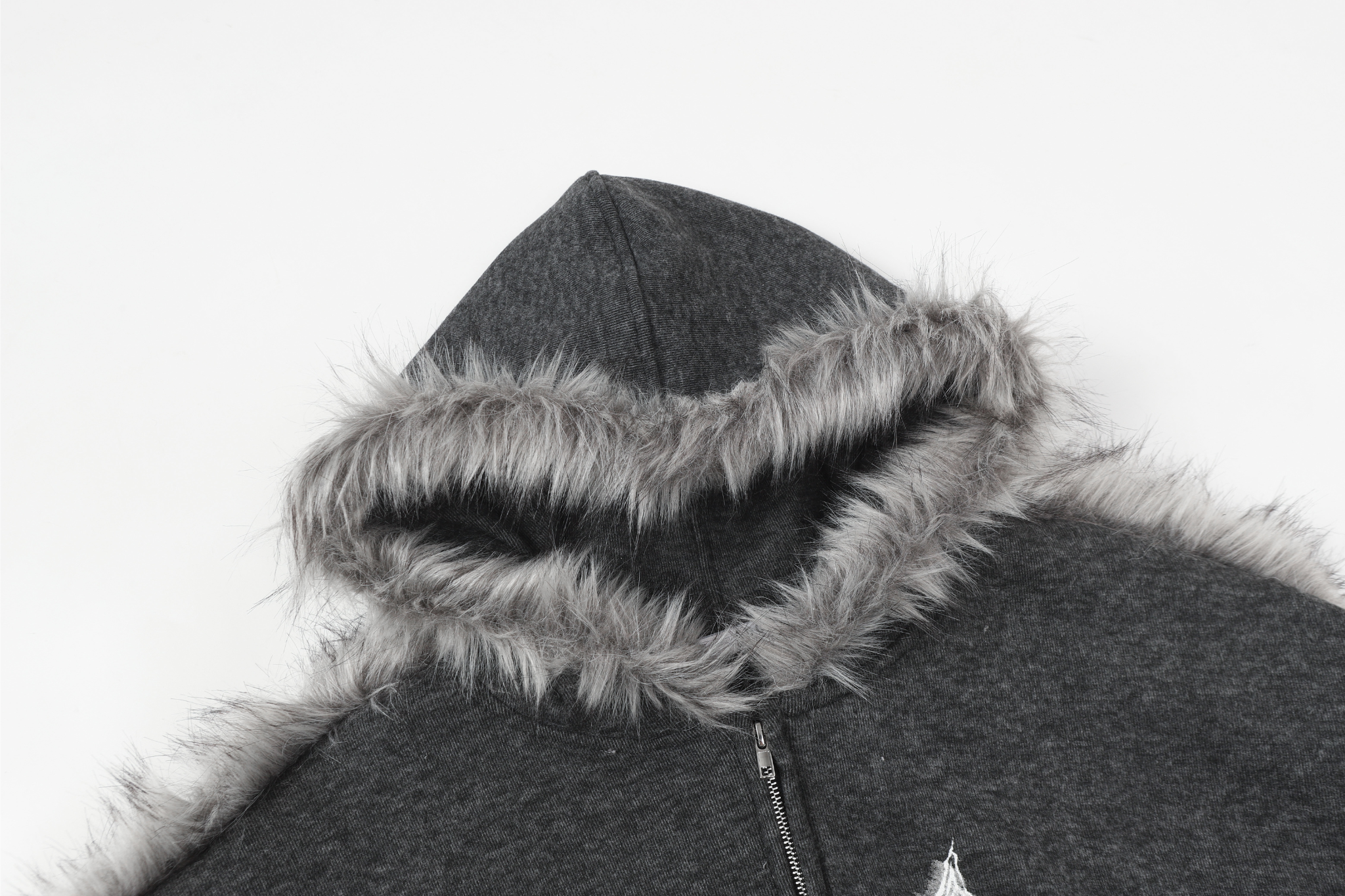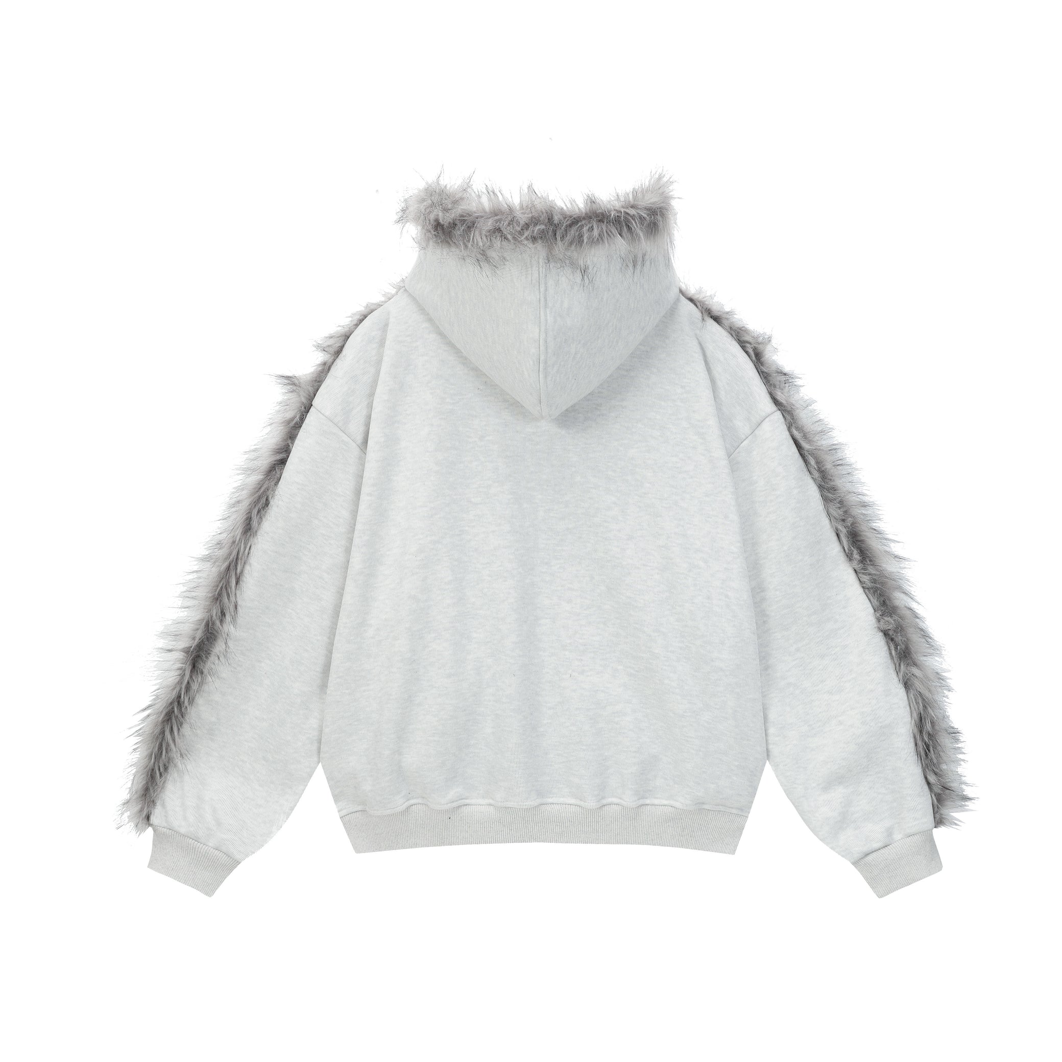 The Omirad Faux Fur-Trimmed Graphic Zip Hoodie blends street-style energy with cozy winter functionality. Made from 100% polyester, it features a soft brushed fleece texture for warmth and structure. The standout design includes a faux-fur trim along the hood and shoulder lines, giving the piece a bold, avant-garde silhouette. The front showcases distressed star graphics and the “ADCOUR BREAK” print for a rebellious streetwear edge.