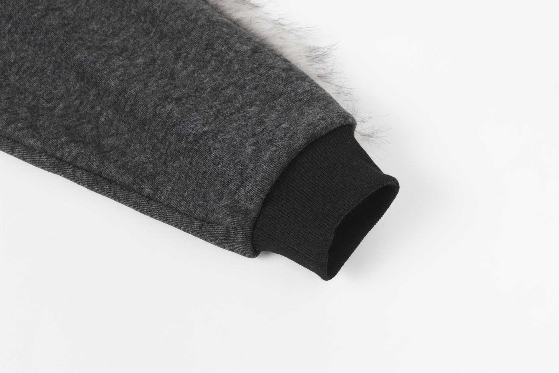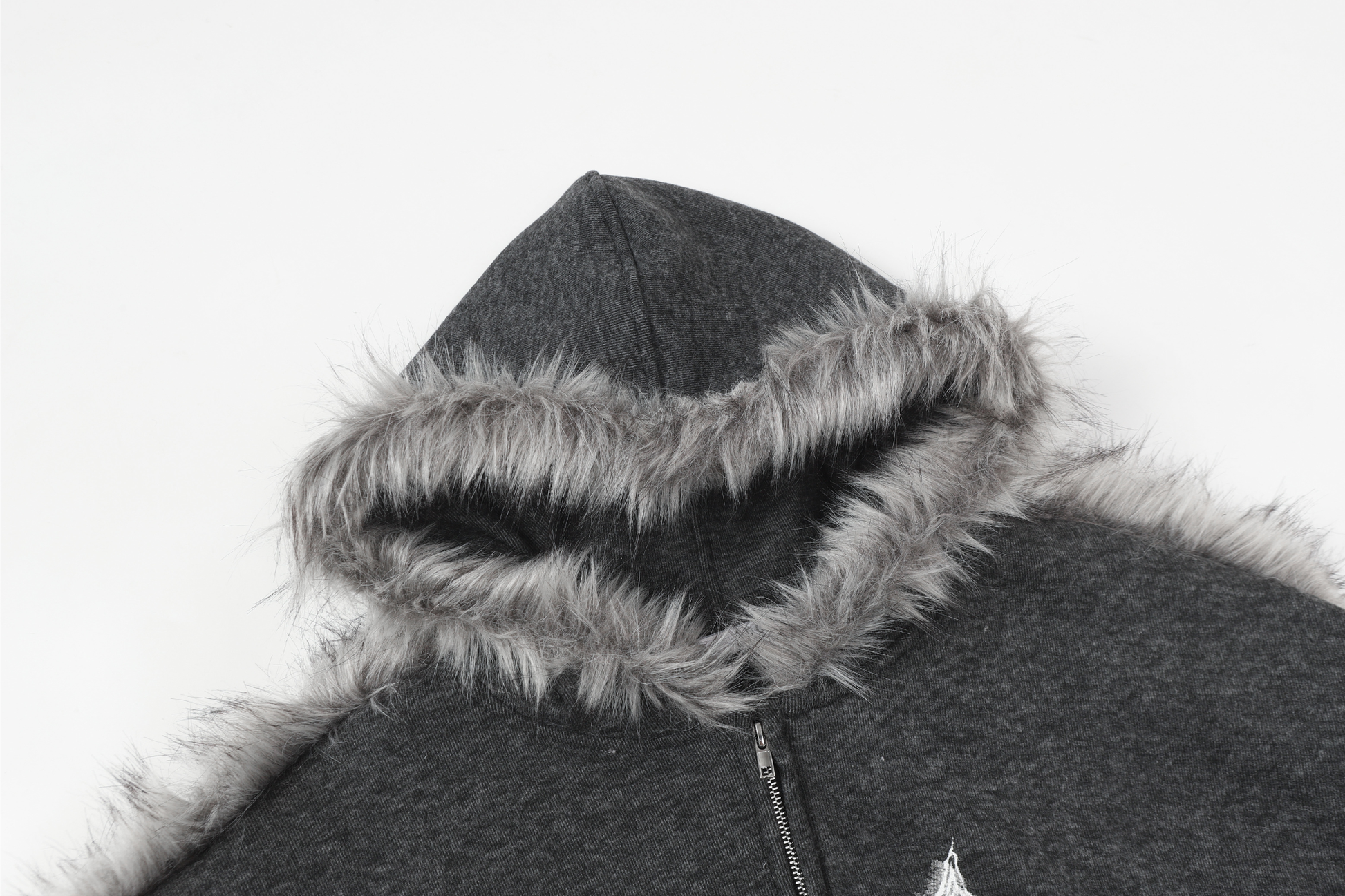 Clothing Details: Faux-fur trim along hood and sleeves, full zip closure, graphic print front, kangaroo pockets, ribbed cuffs and hem, relaxed oversized fit