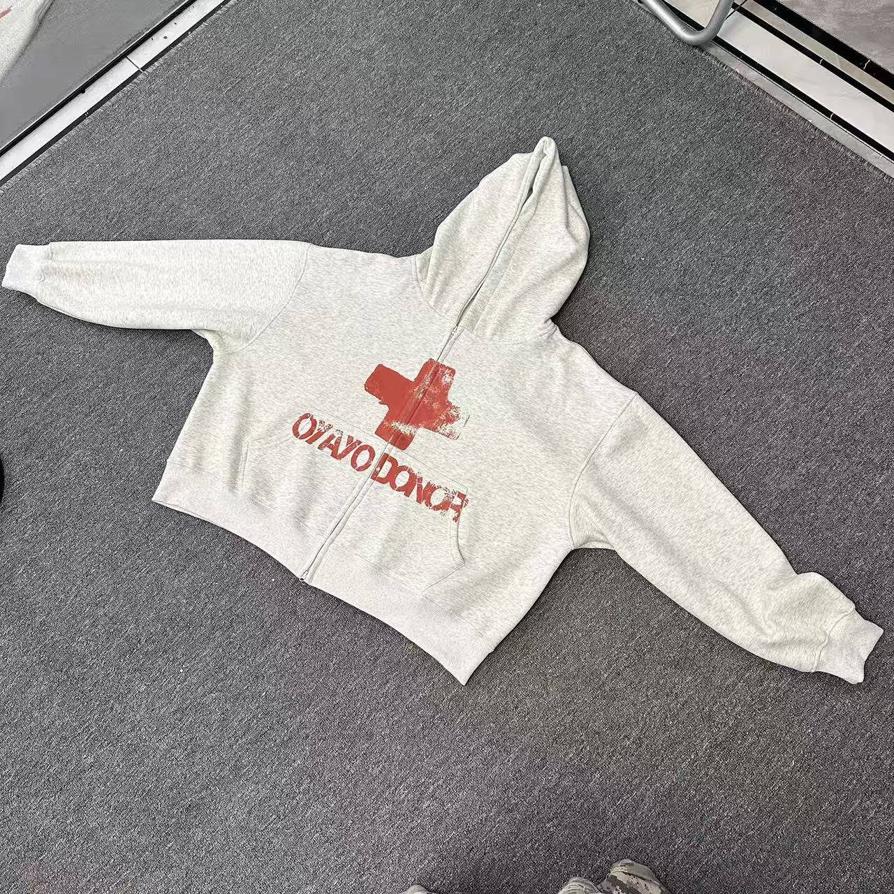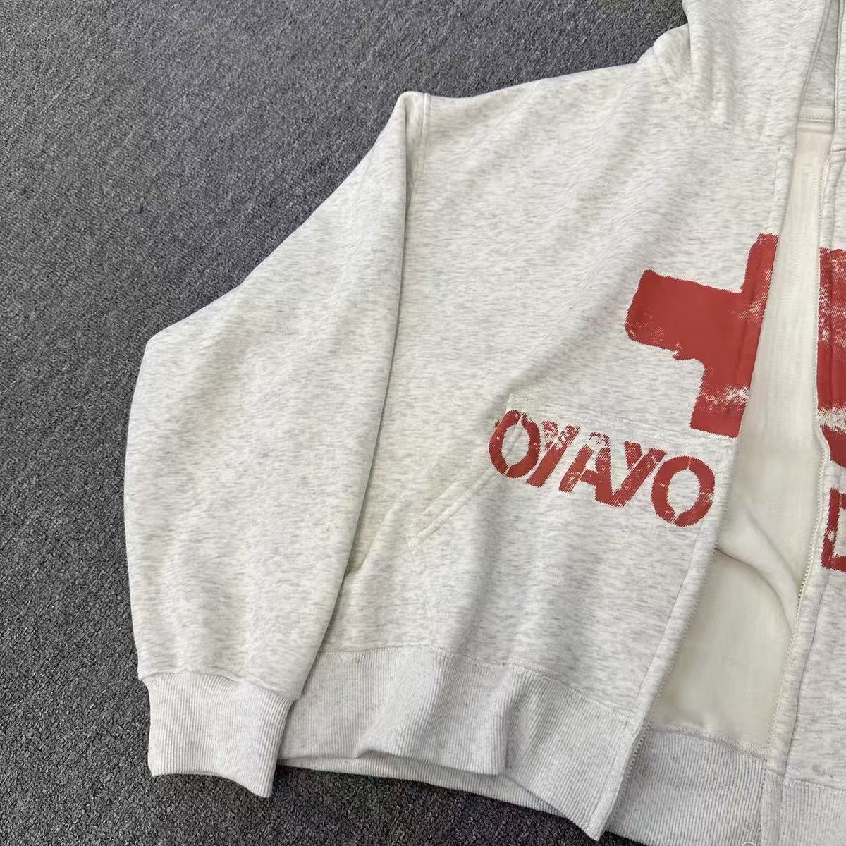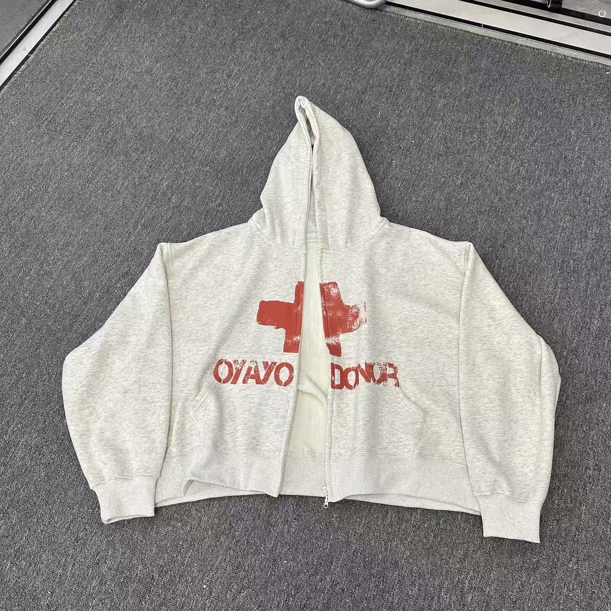 The Omirad Fleece-Lined Red Cross Zip Hoodie blends minimalist design with raw street expression. Featuring a bold distressed red cross and “OYAYO DONOR” print across the chest, this hoodie channels underground energy with a vintage edge. The relaxed silhouette, dropped shoulders, and fleece-lined interior deliver both comfort and attitude, perfect for layering through colder days.