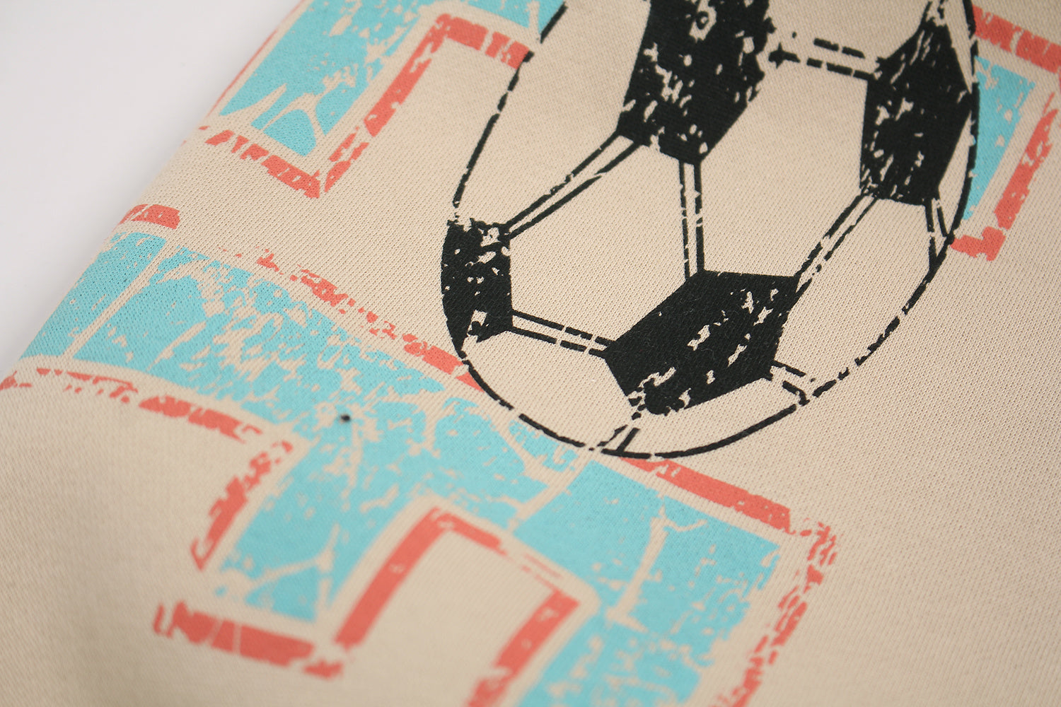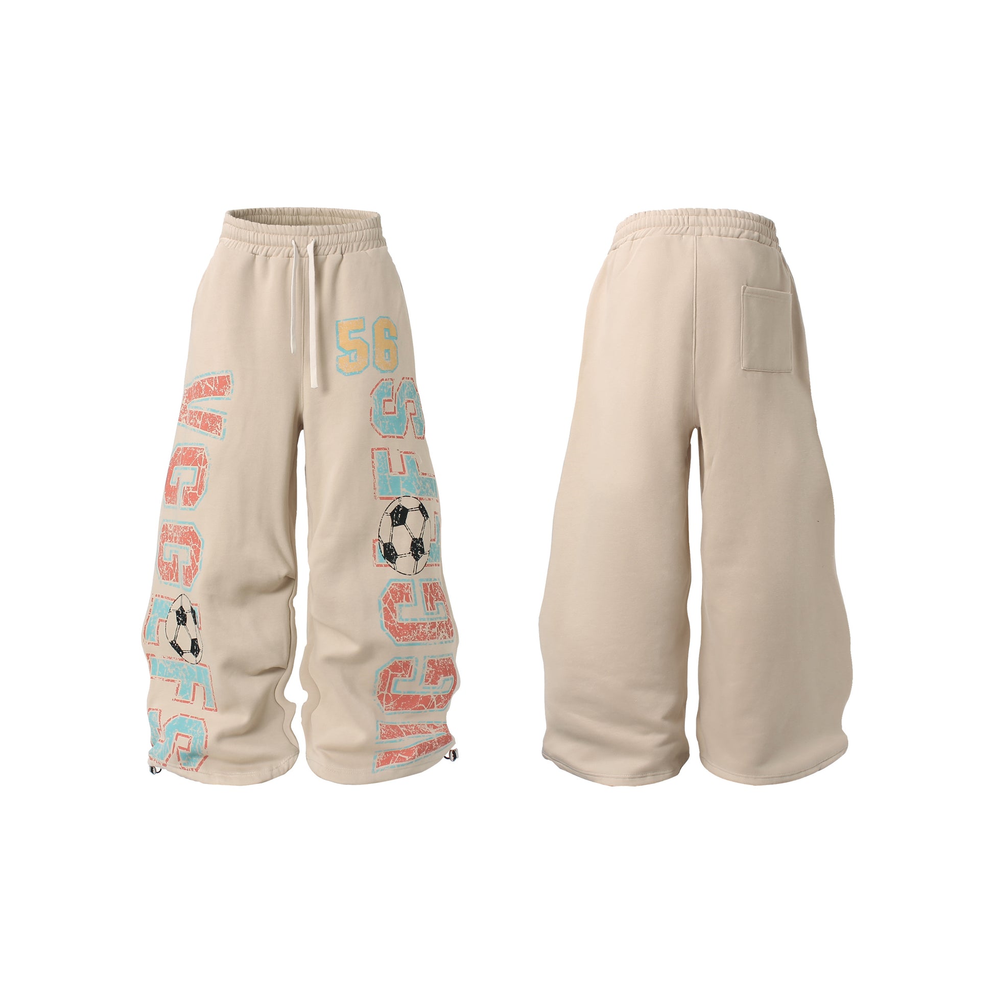 Clothing details: Fleece lining, soccer and letter graphic print, wide-leg fit, adjustable drawstring hem, elastic waistband