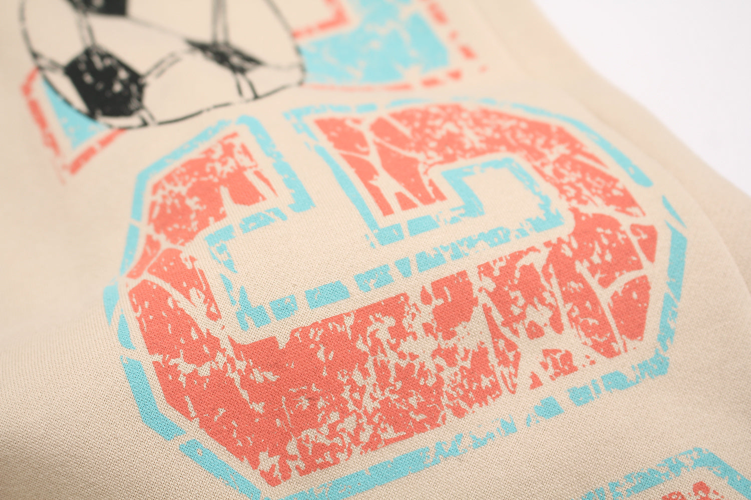 The Omirad Fleece-Lined Soccer Graphic Wide-Leg Sweatpants blend retro sport energy with streetwear comfort. Featuring vintage-inspired letter prints and soccer motifs in faded pastel tones, this piece brings a nostalgic athletic edge to your fit. The wide-leg silhouette and adjustable drawstring hem create a relaxed look, while the fleece lining keeps you warm through colder days. Crafted from a smooth nylon-poly blend for comfort, structure, and durability.