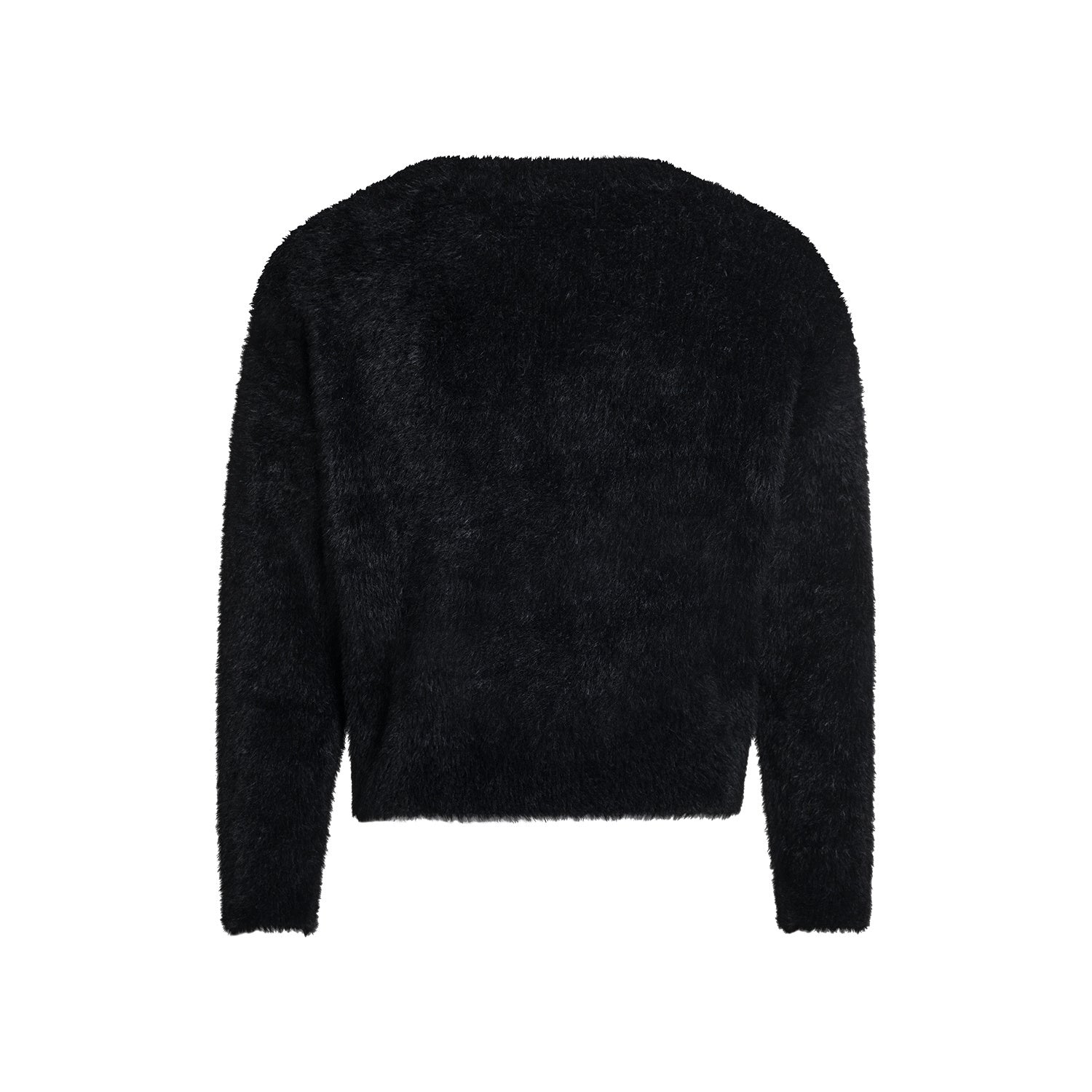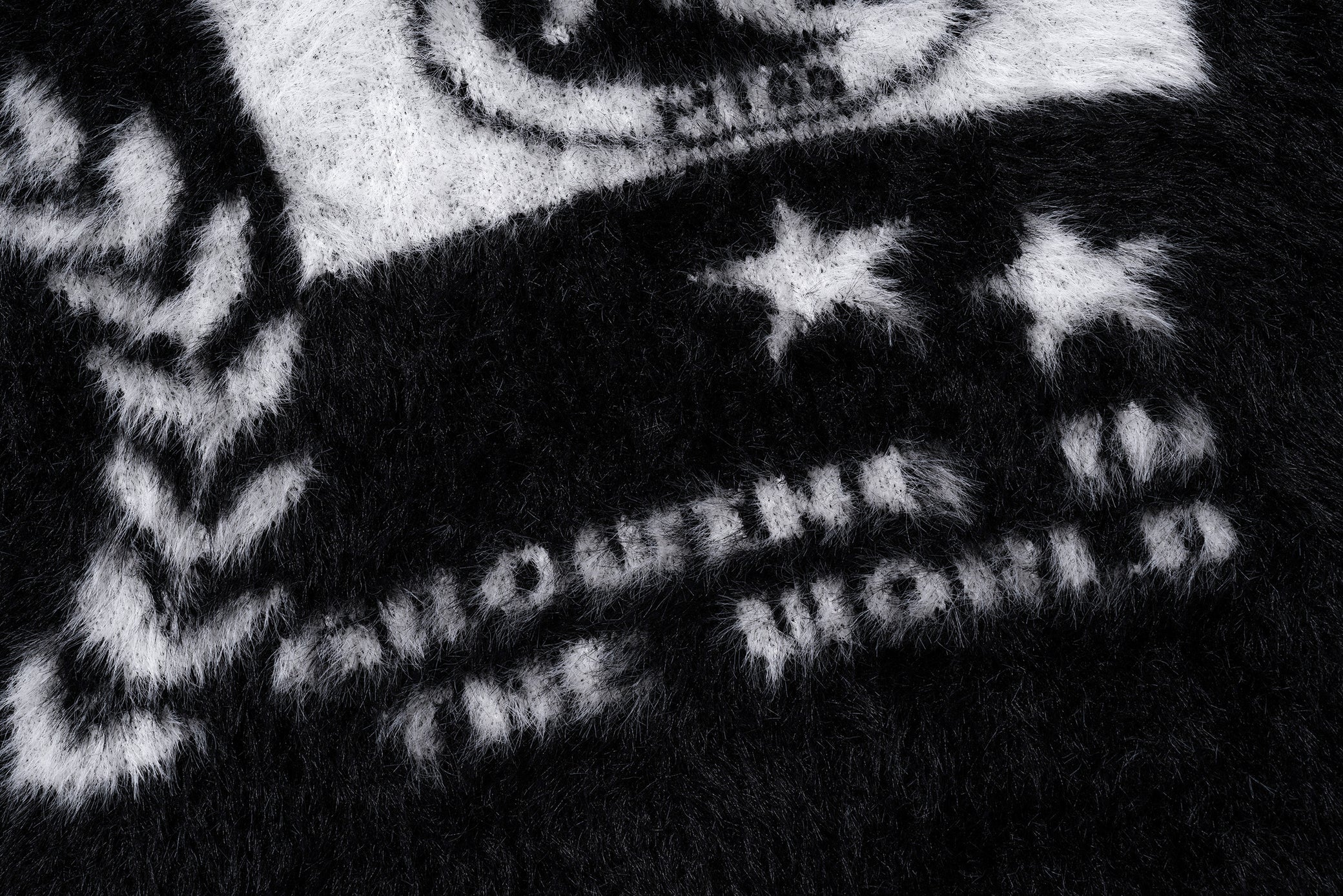 Clothing details: Fluffy knit texture, graphic jacquard pattern, ribbed cuffs and hem, relaxed cropped fit