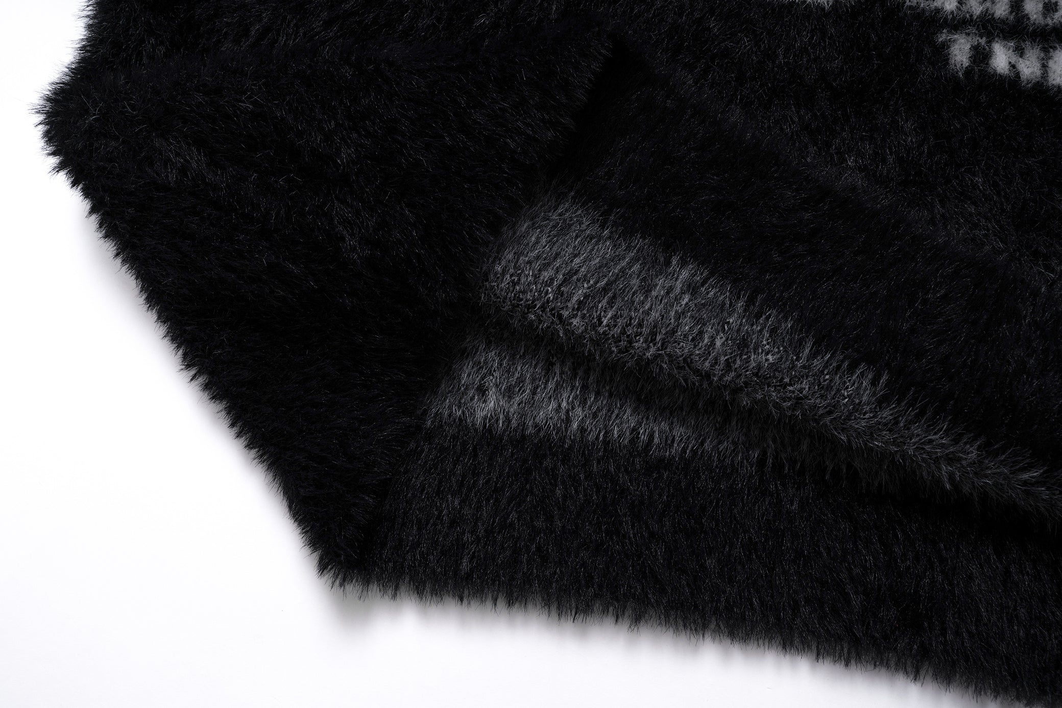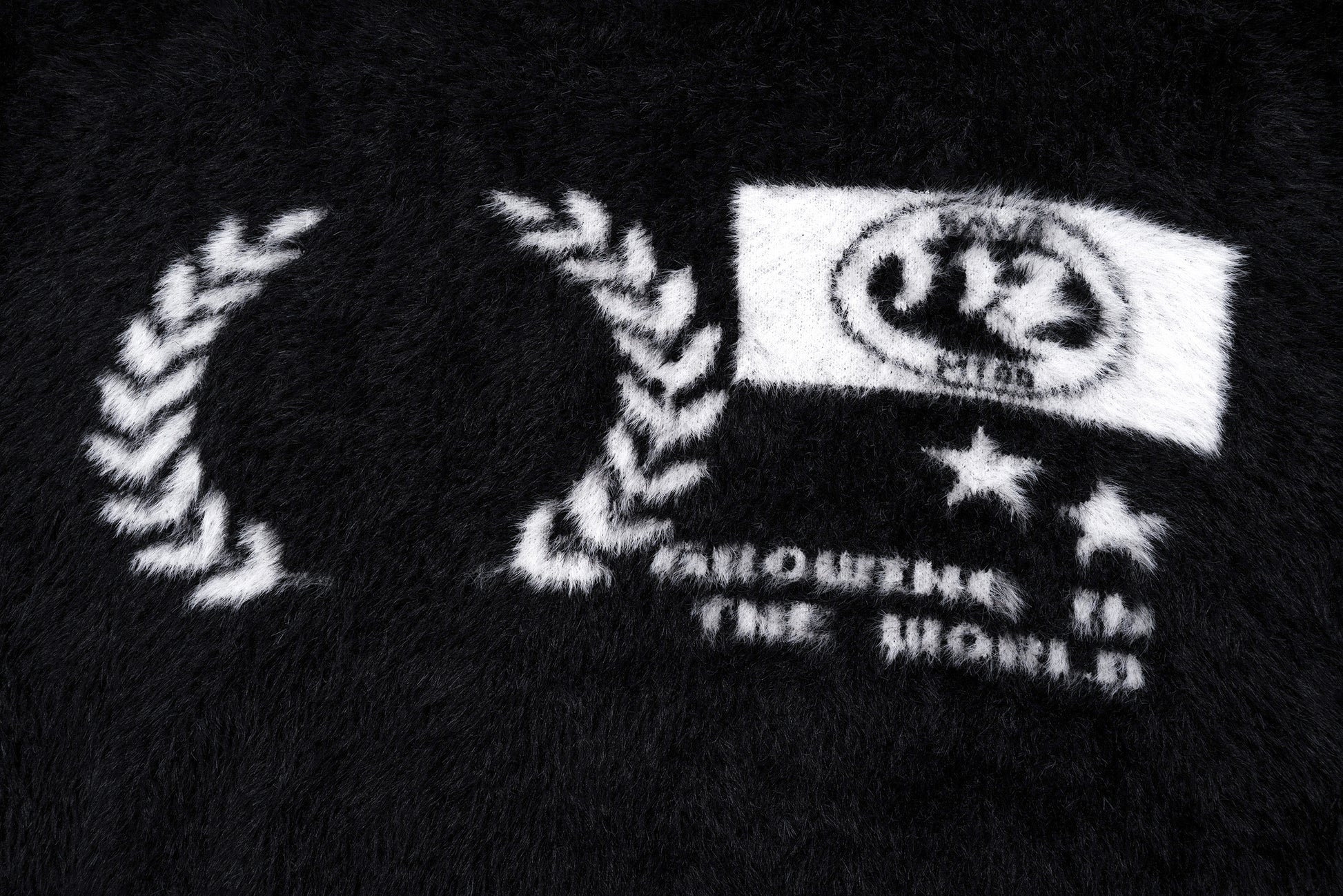 The Omirad Fluffy Crest Knit Sweater brings a soft-grunge edge to winter layering. Made from plush nylon yarn, it delivers a fuzzy texture with a subtle sheen. The front features a woven crest and slogan graphic — “CONQUER THE WORLD” — combining collegiate symbolism with rebellious street culture. Designed for a relaxed silhouette that pairs effortlessly with wide-leg trousers or layered outerwear.