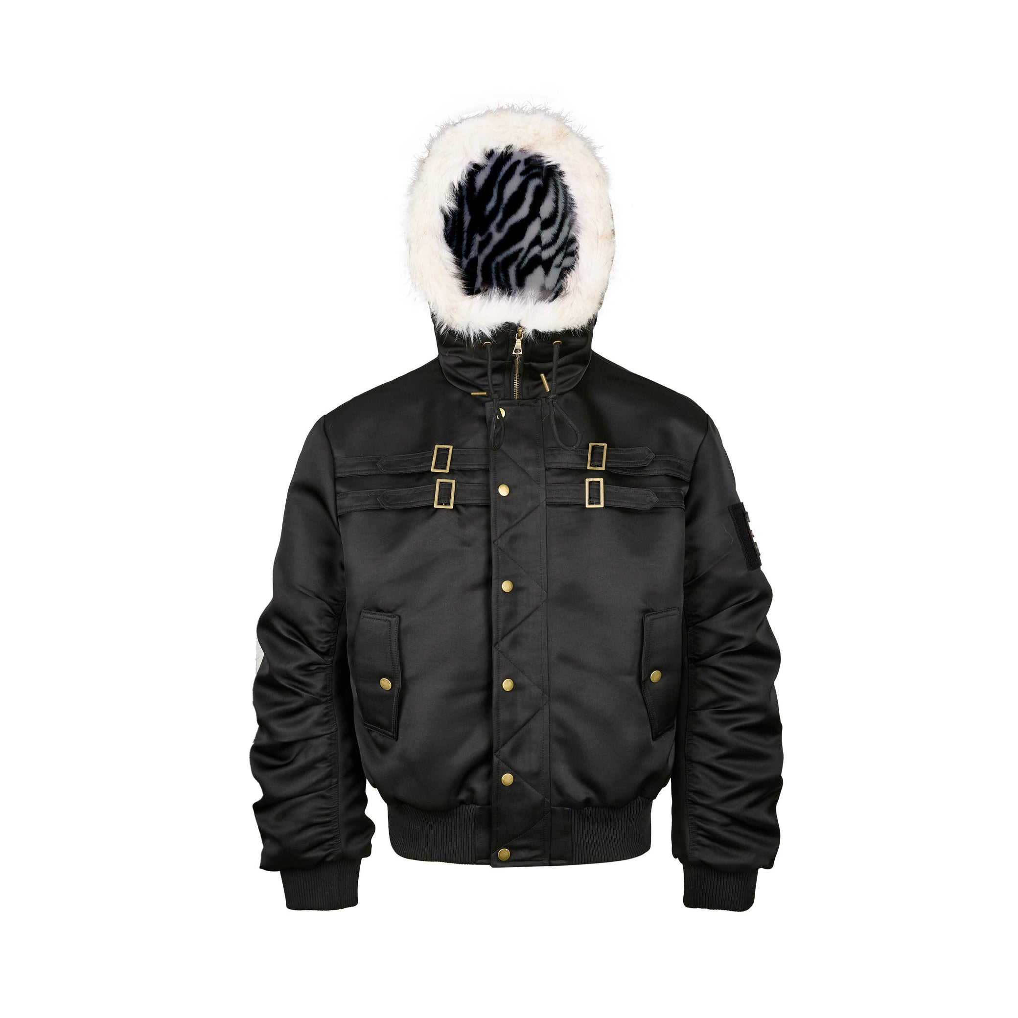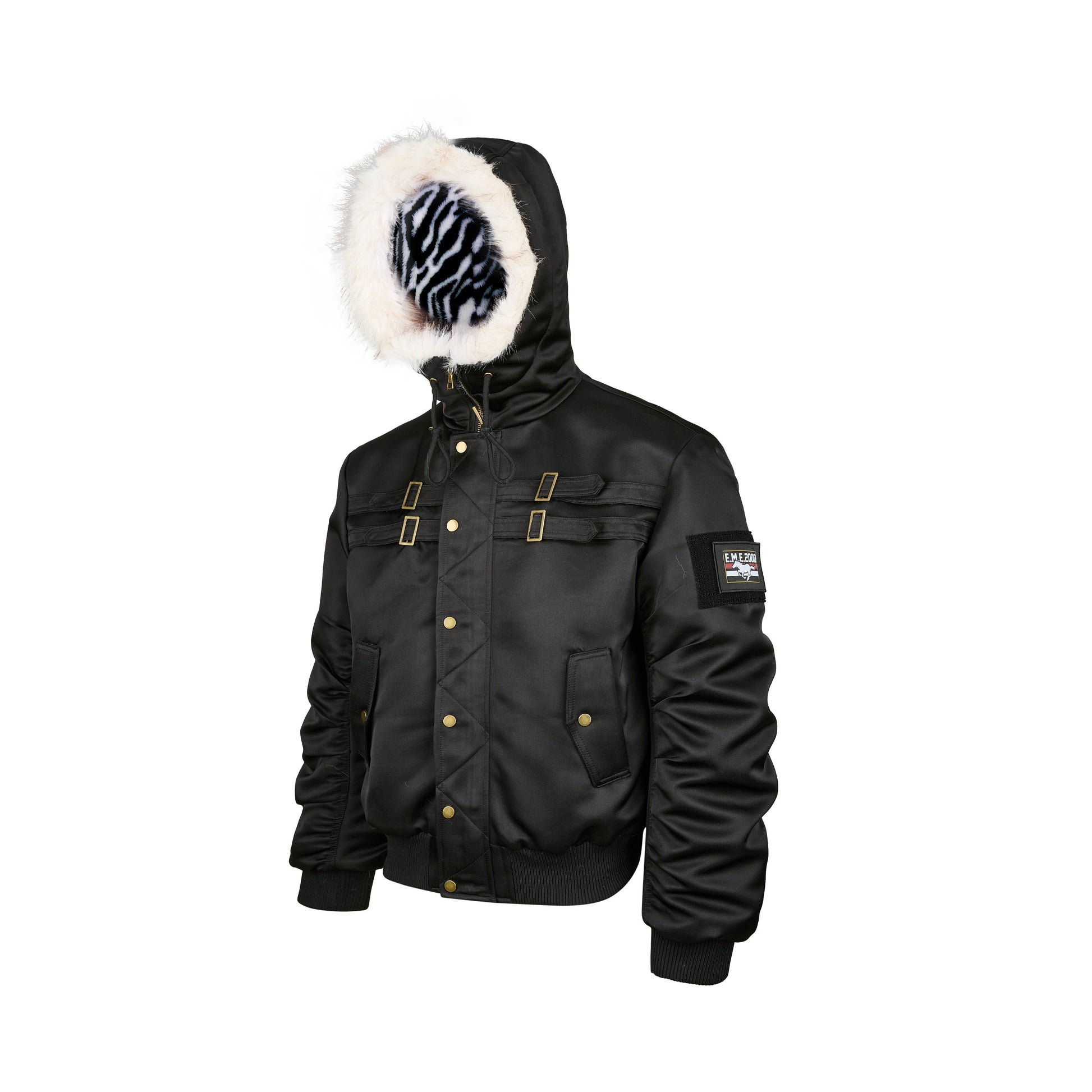 The Omirad Fur-Lined Utility Bomber Jacket features a bold multi-strap utility design paired with a plush faux-fur hood and striking patterned inner lining, delivering a statement-driven streetwear silhouette built for cold-weather styling. Designed to balance functionality and attitude, this jacket brings military-inspired structure into modern urban wear.