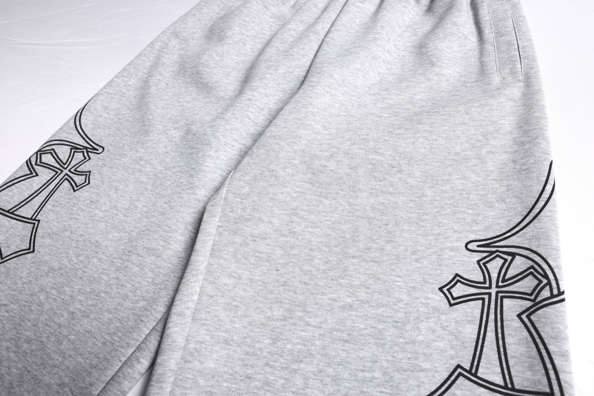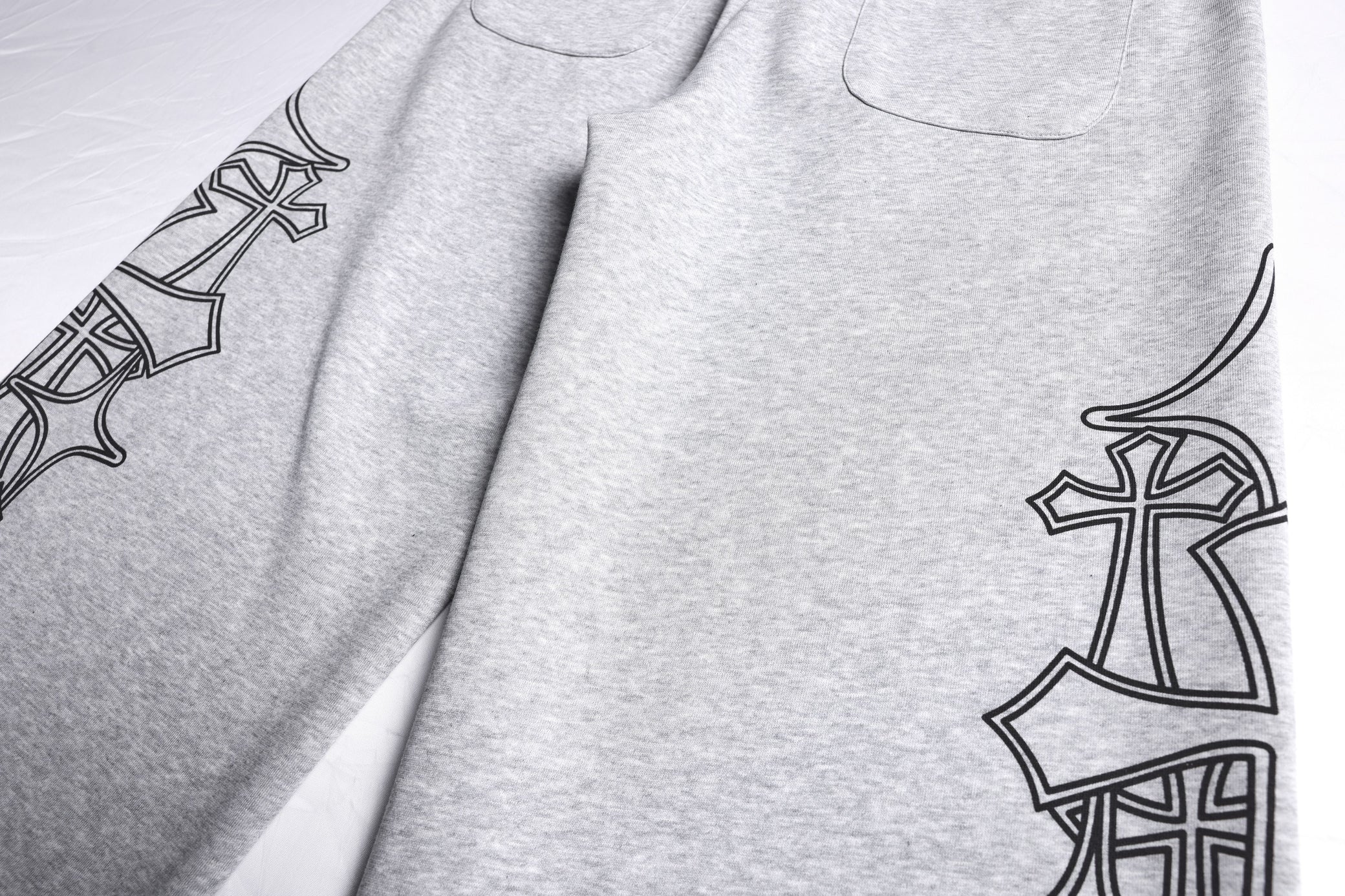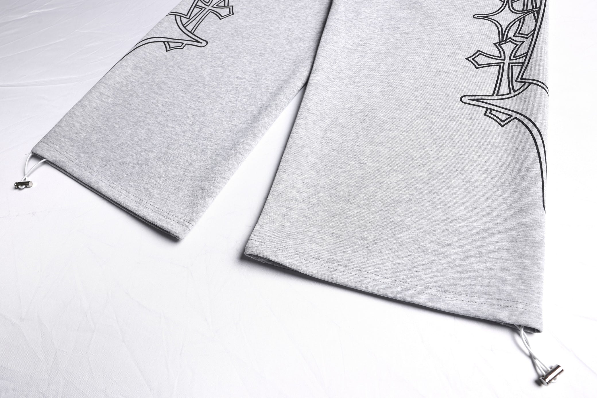 The Omirad Gothic Outline Wide-Leg Sweatpants feature bold gothic-style outline graphics along the legs, creating a clean yet striking streetwear statement. Designed with a relaxed wide-leg silhouette, these sweatpants balance visual edge with everyday comfort. Crafted from a cotton-rich athletic blend, they deliver a soft hand feel and flexible wearability, ideal for daily styling or layered looks.