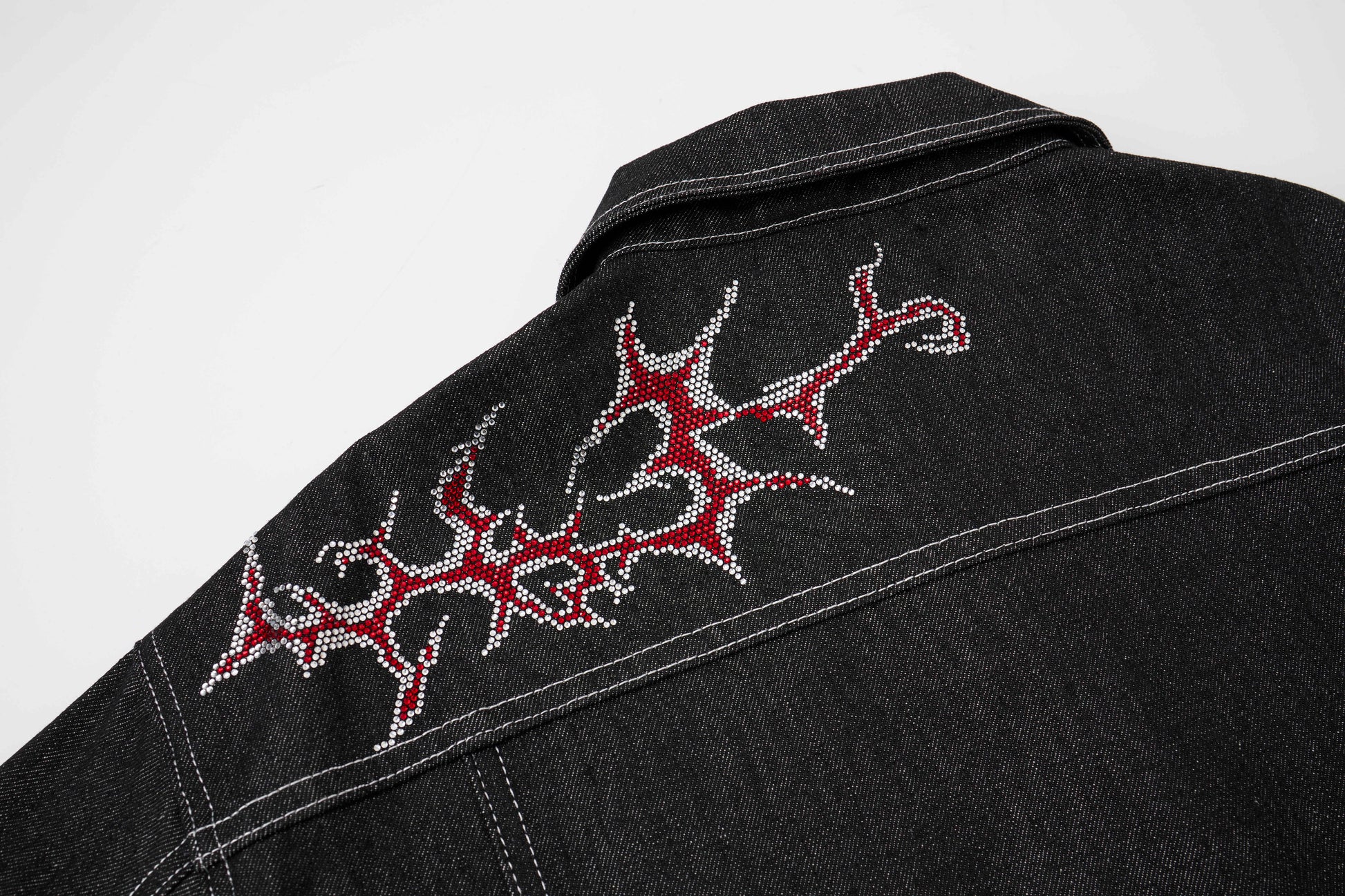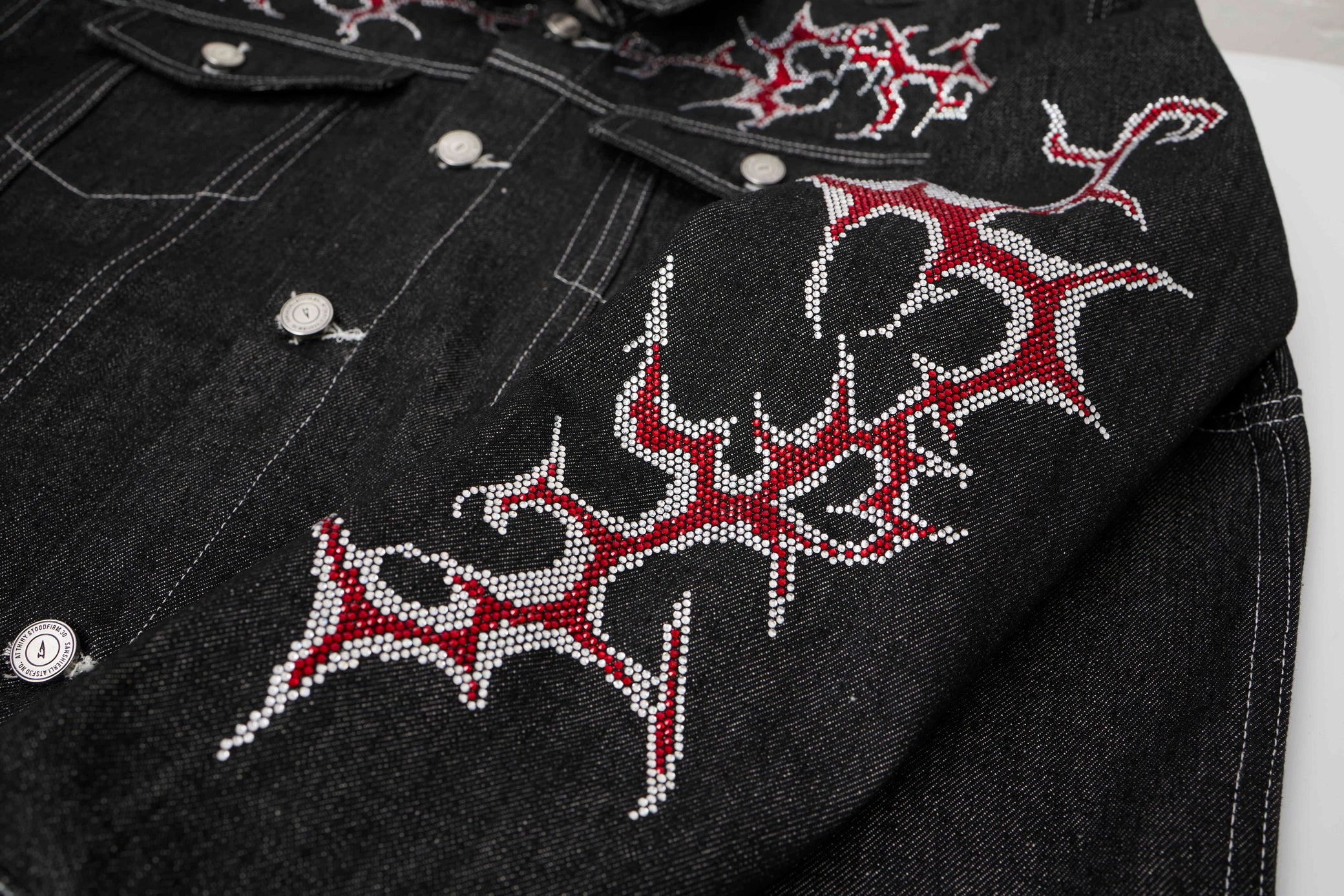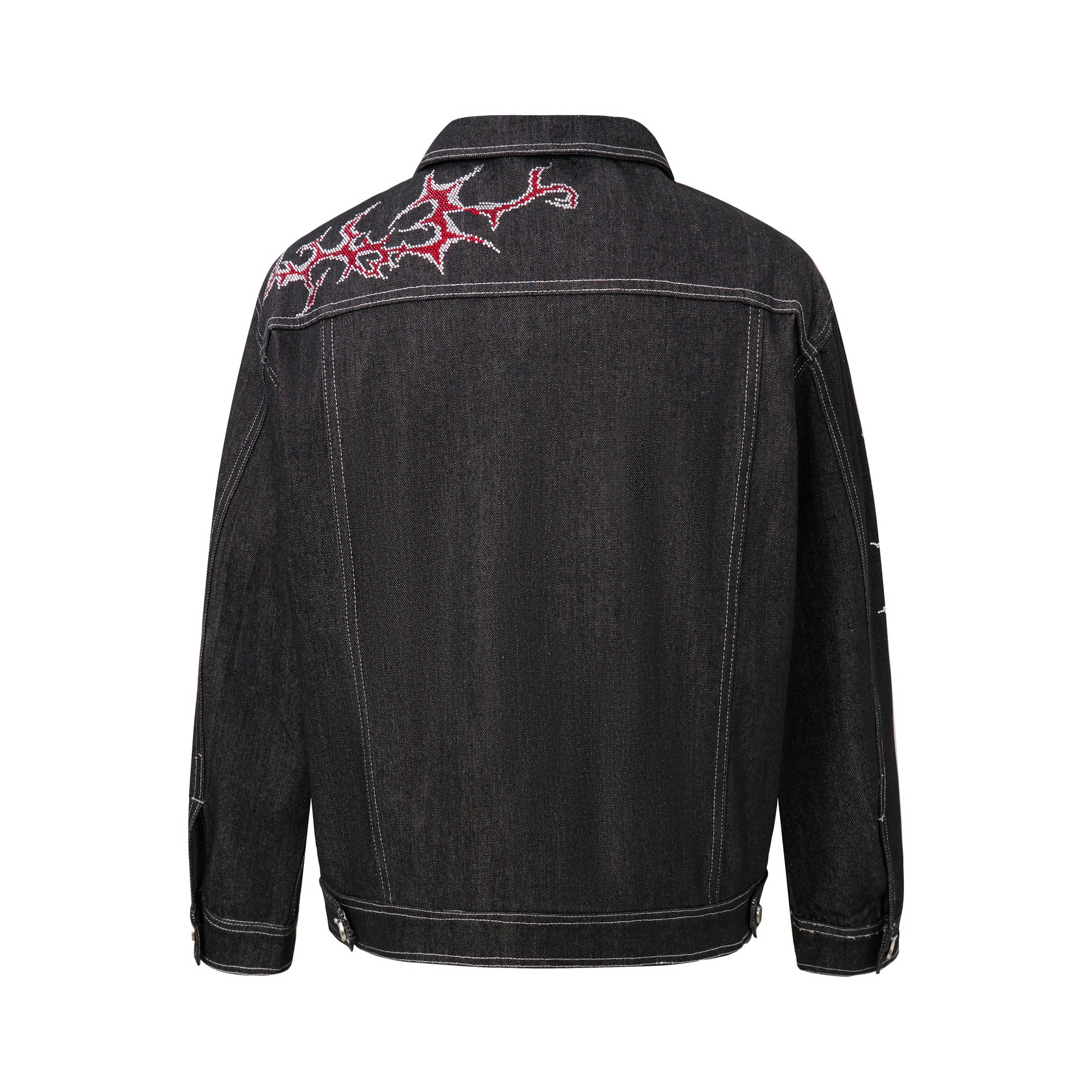 The Omirad Graphic Denim Jacket features intricate embroidered flame-style detailing that adds a bold, edgy accent to a classic denim silhouette. Perfect for elevating streetwear looks, this jacket combines timeless structure with striking visual detail.