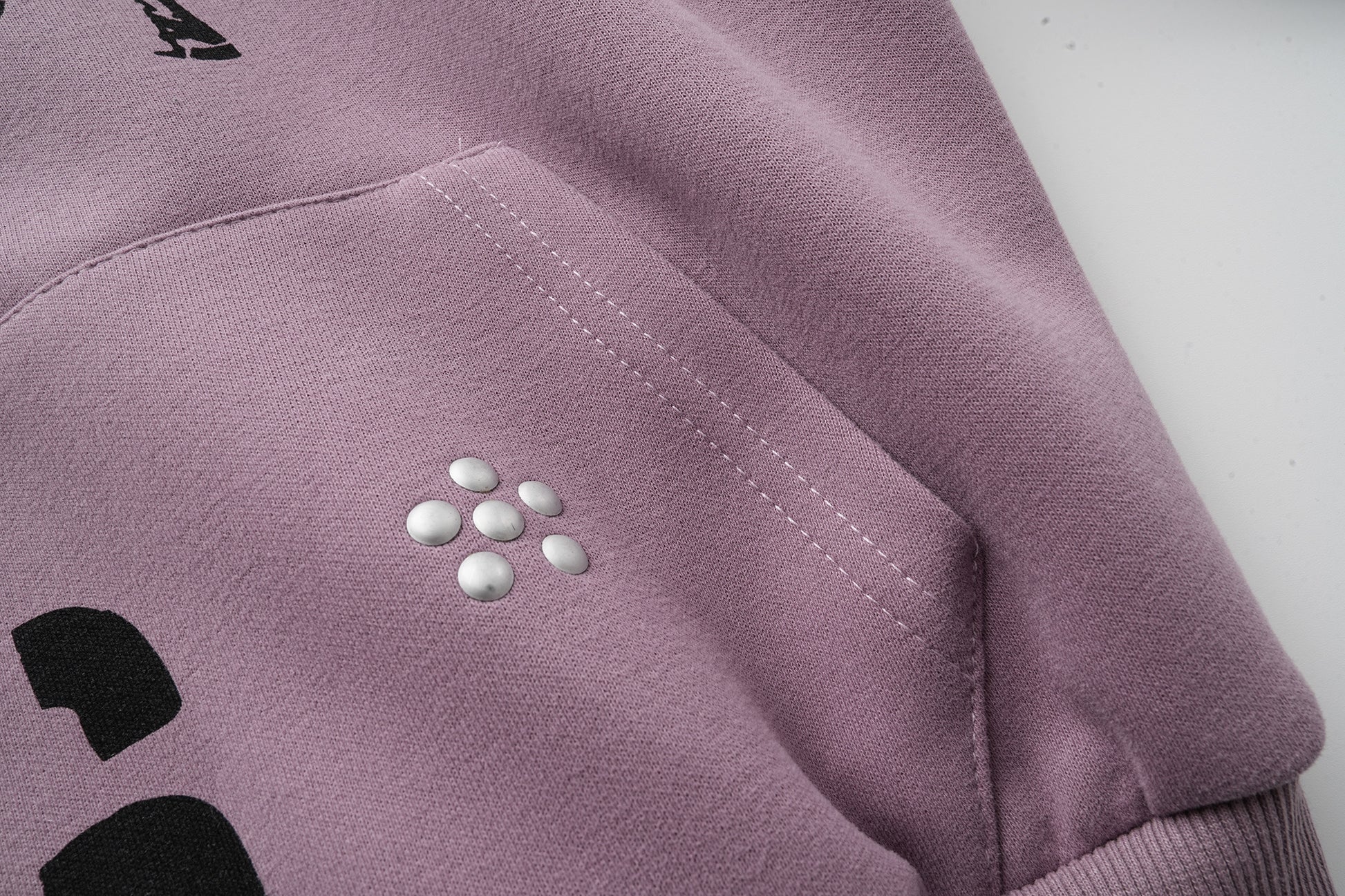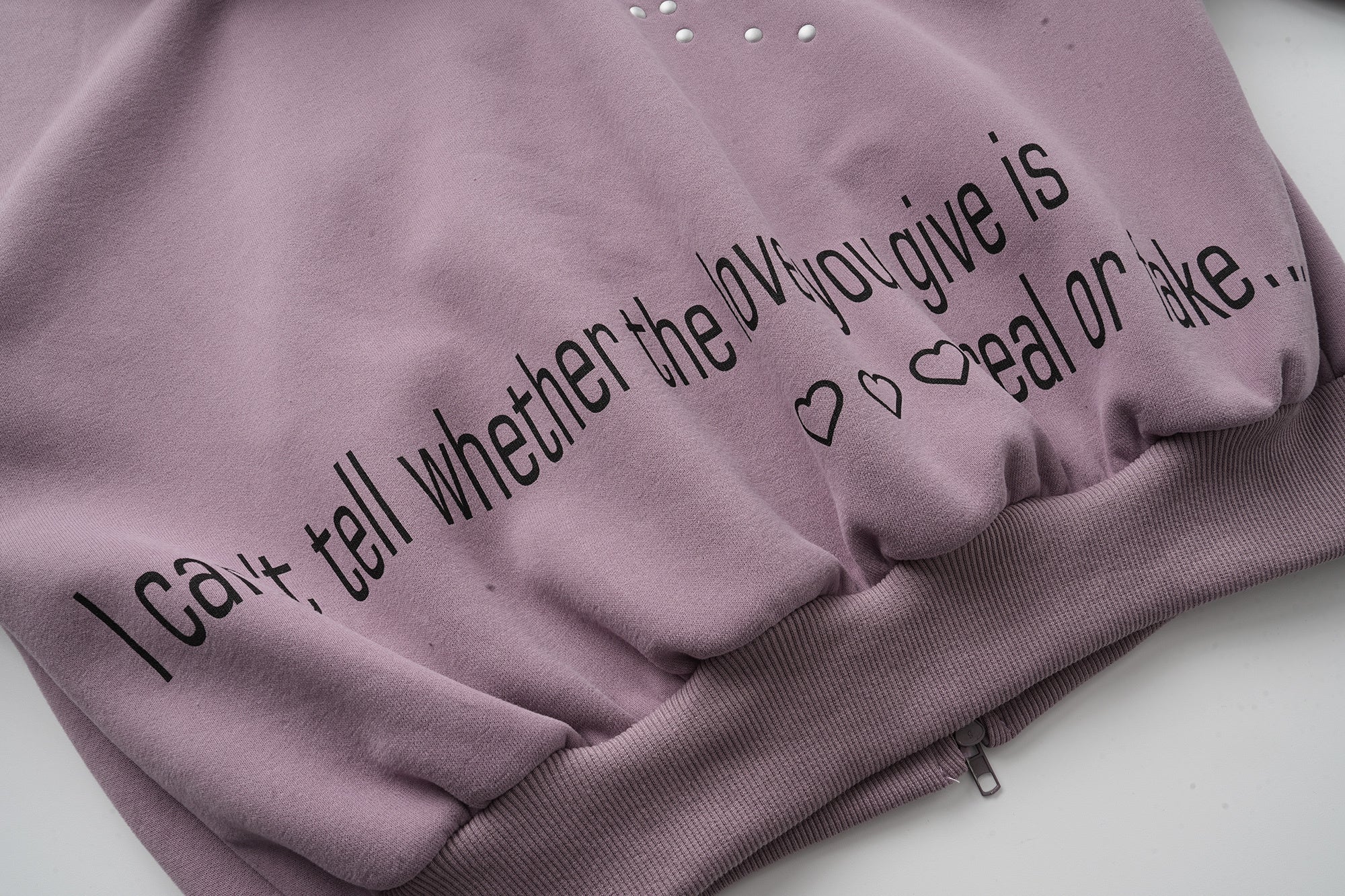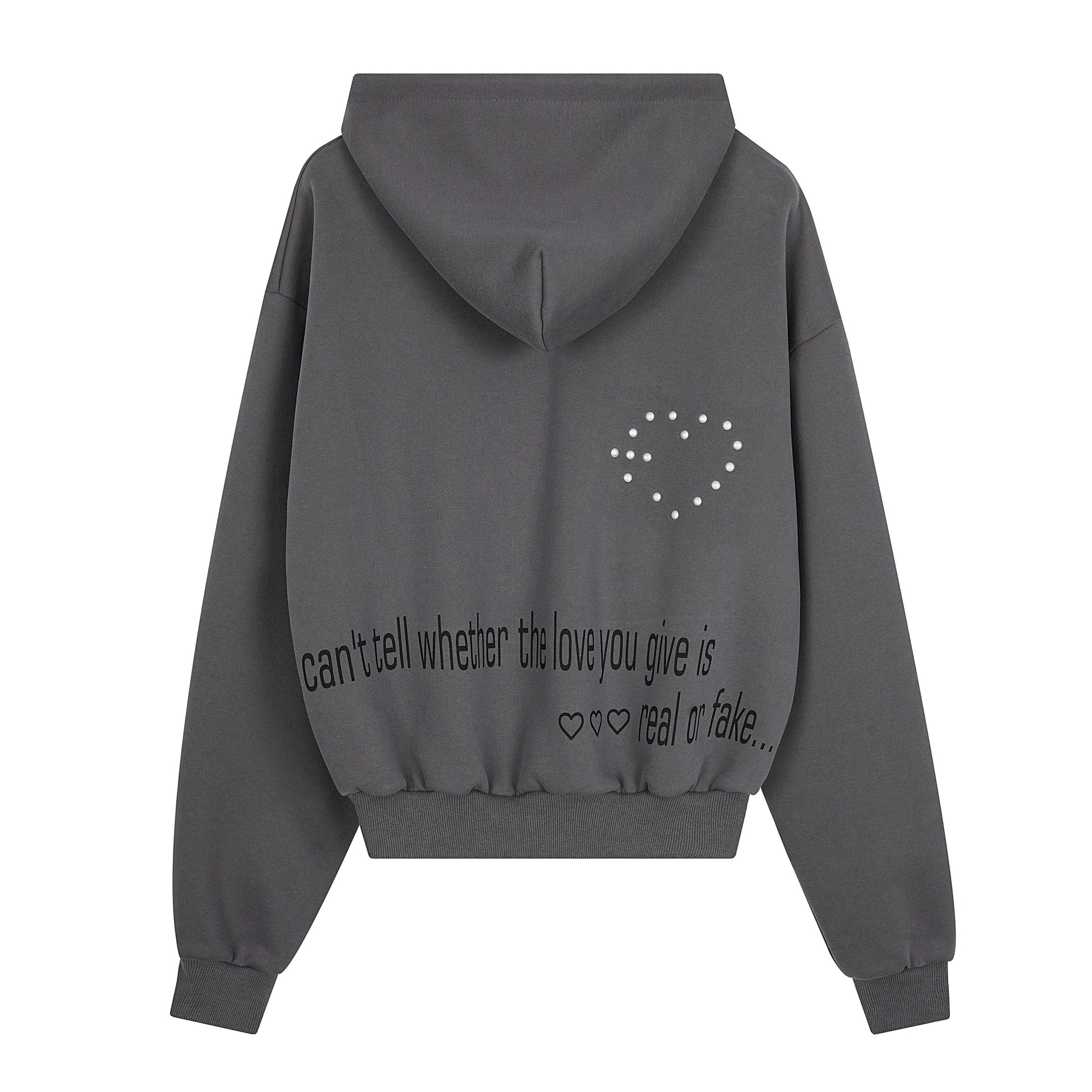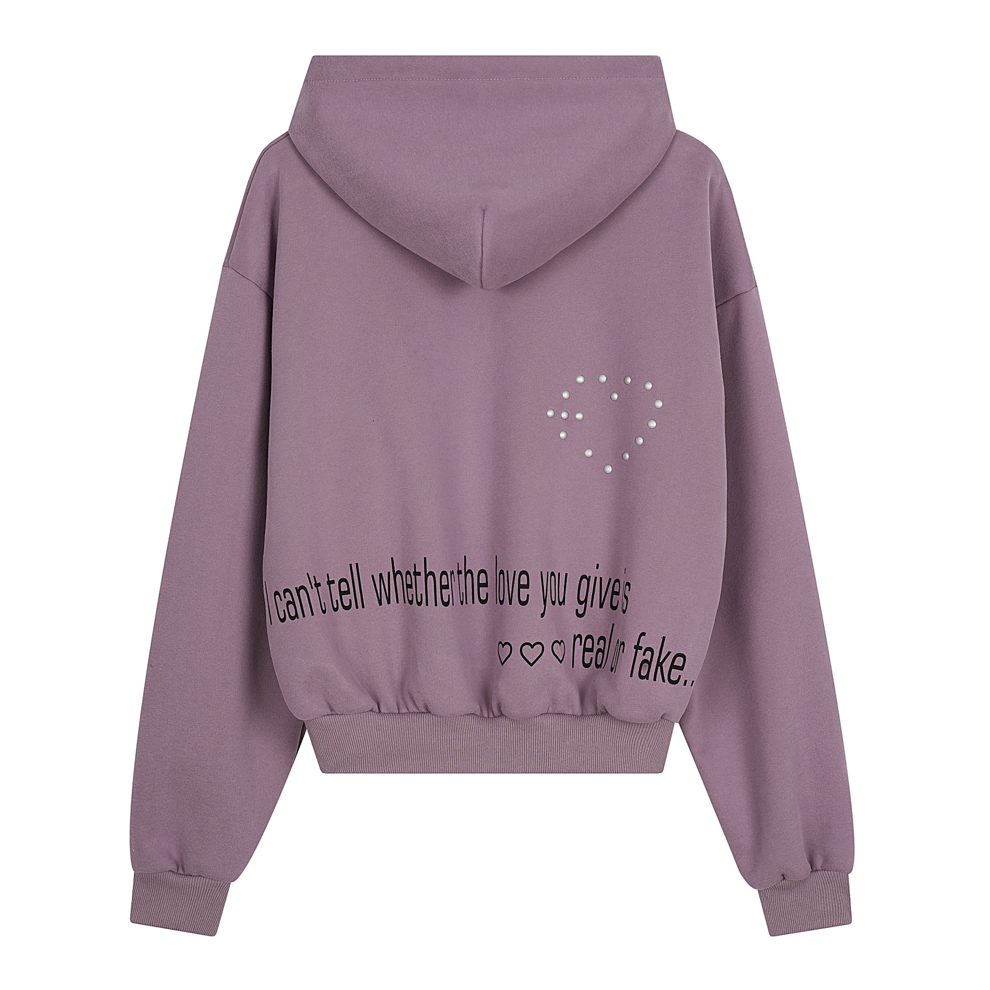 Clothing details: Graphic print, full zip closure, adjustable hood with drawstrings, front pockets, ribbed cuffs and hem, relaxed fit