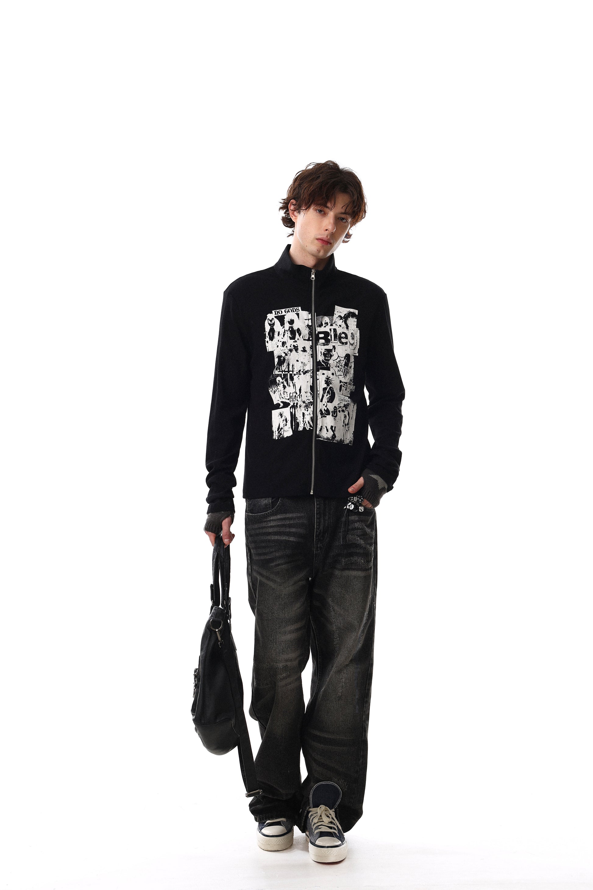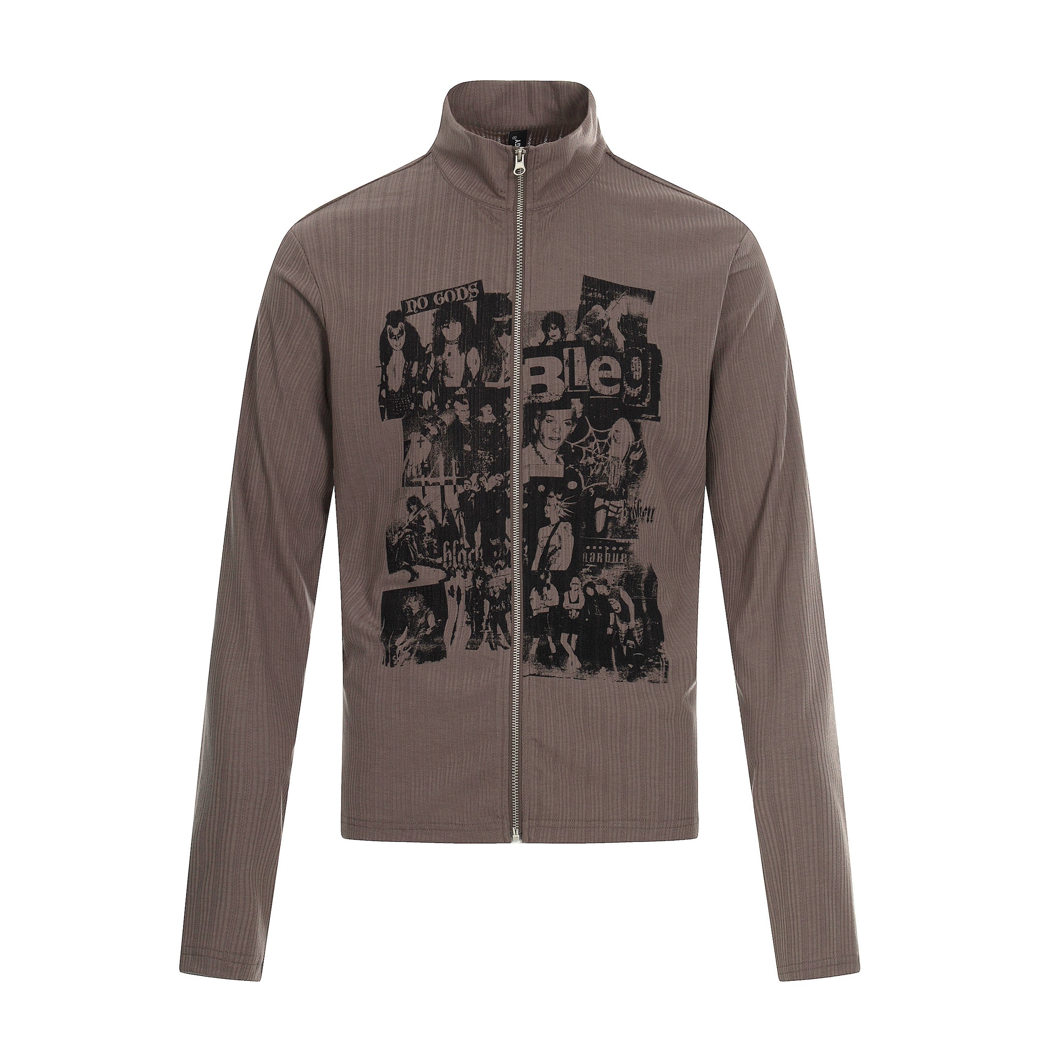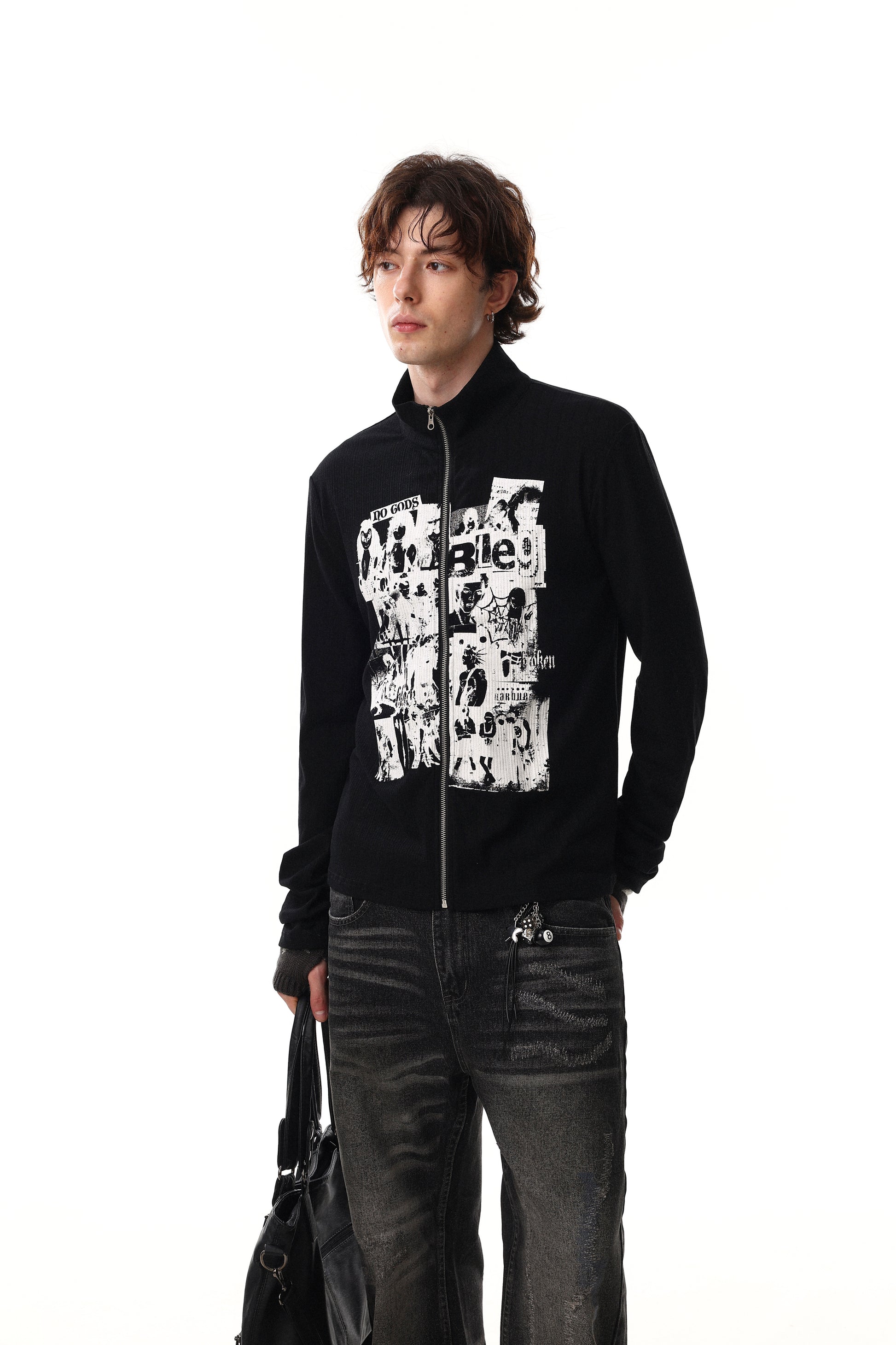 Clothing details: Full zip front closure, stand collar design, front graphic print, long sleeves, ribbed cuffs and hem, slim-to-regular fit.