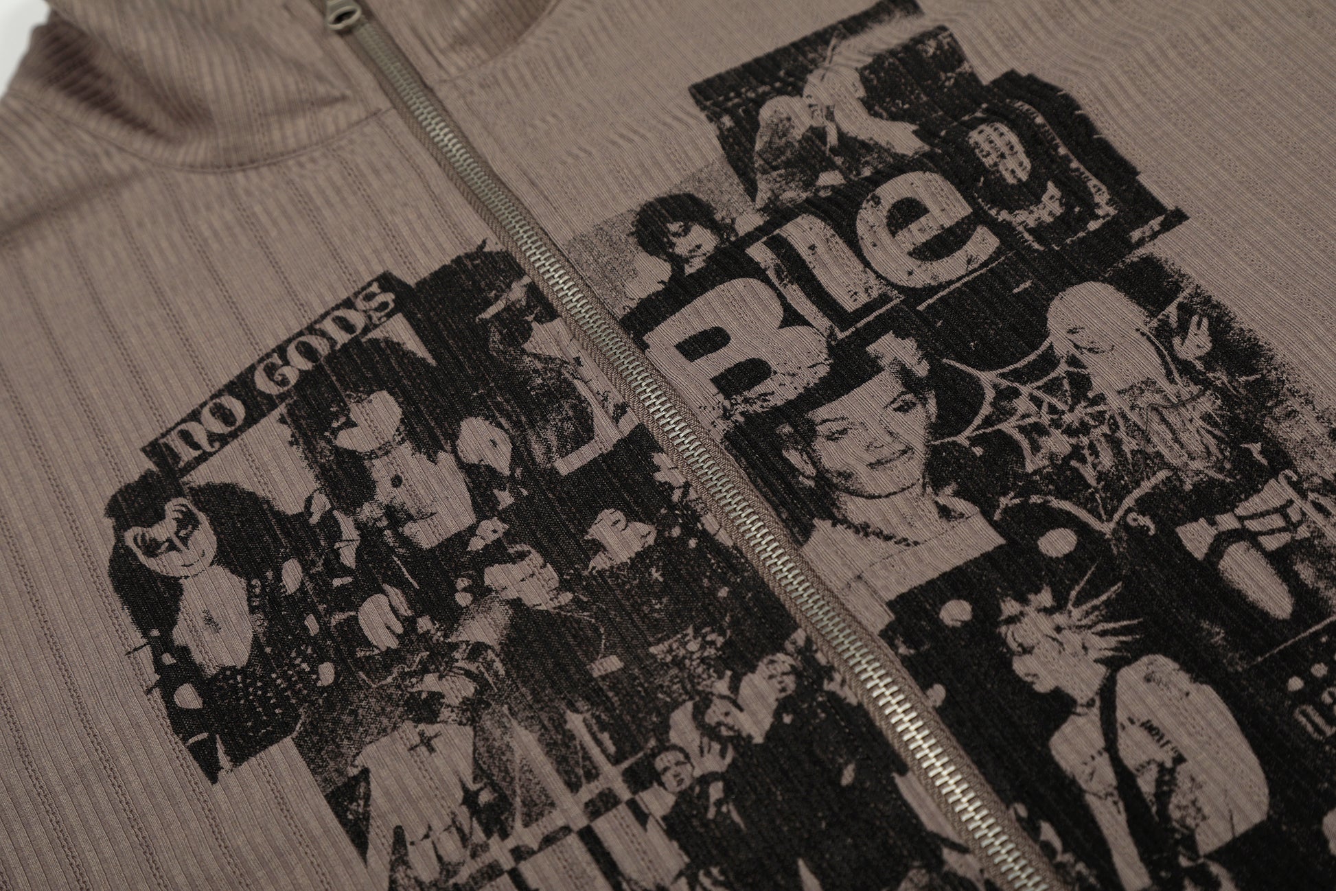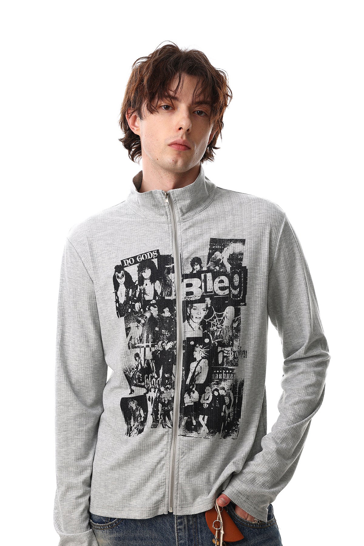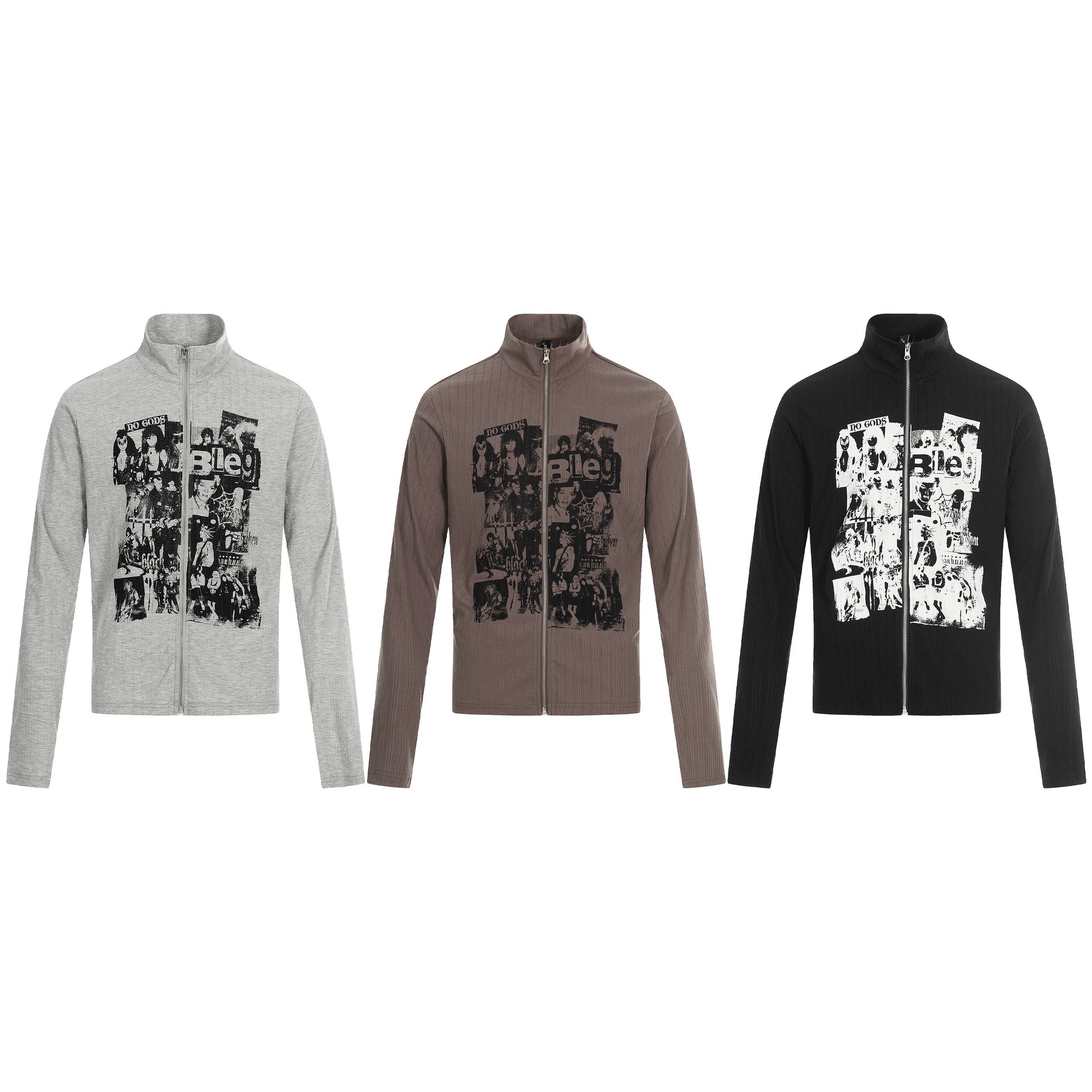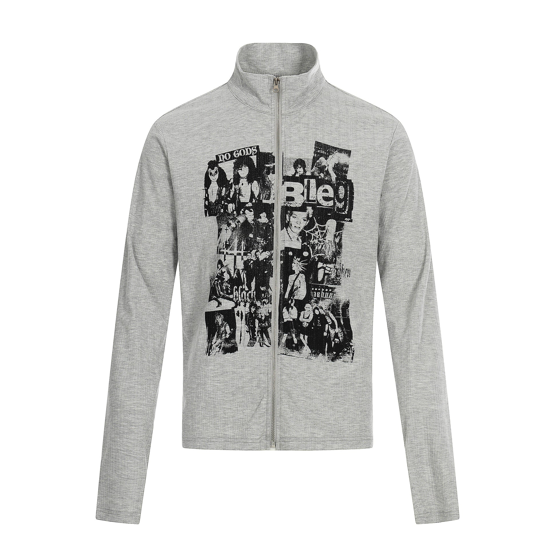 Clothing details: Full zip front closure, stand collar design, front graphic print, long sleeves, ribbed cuffs and hem, slim-to-regular fit.