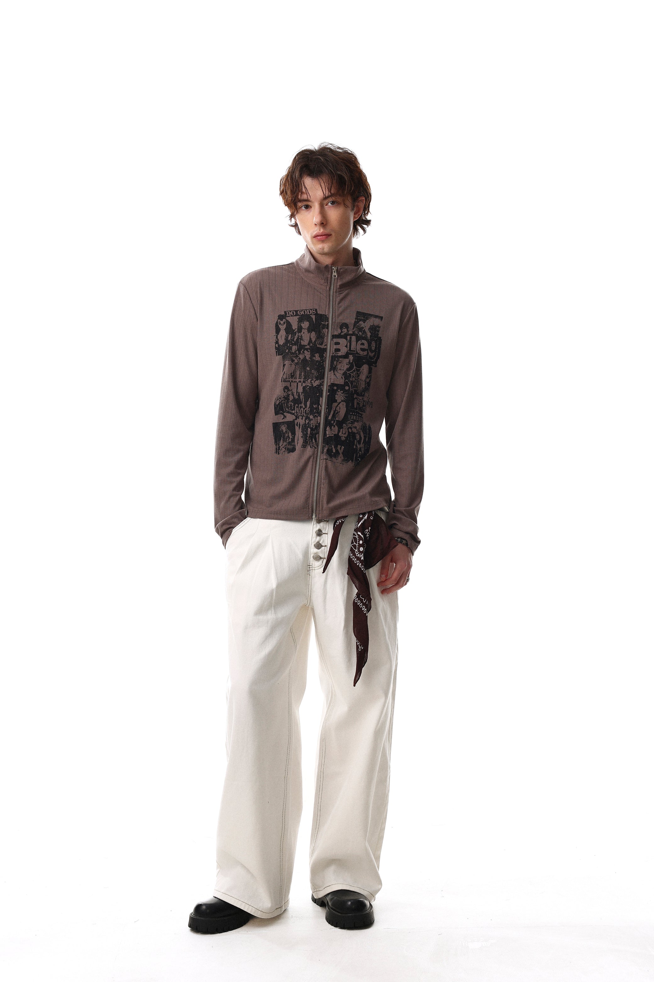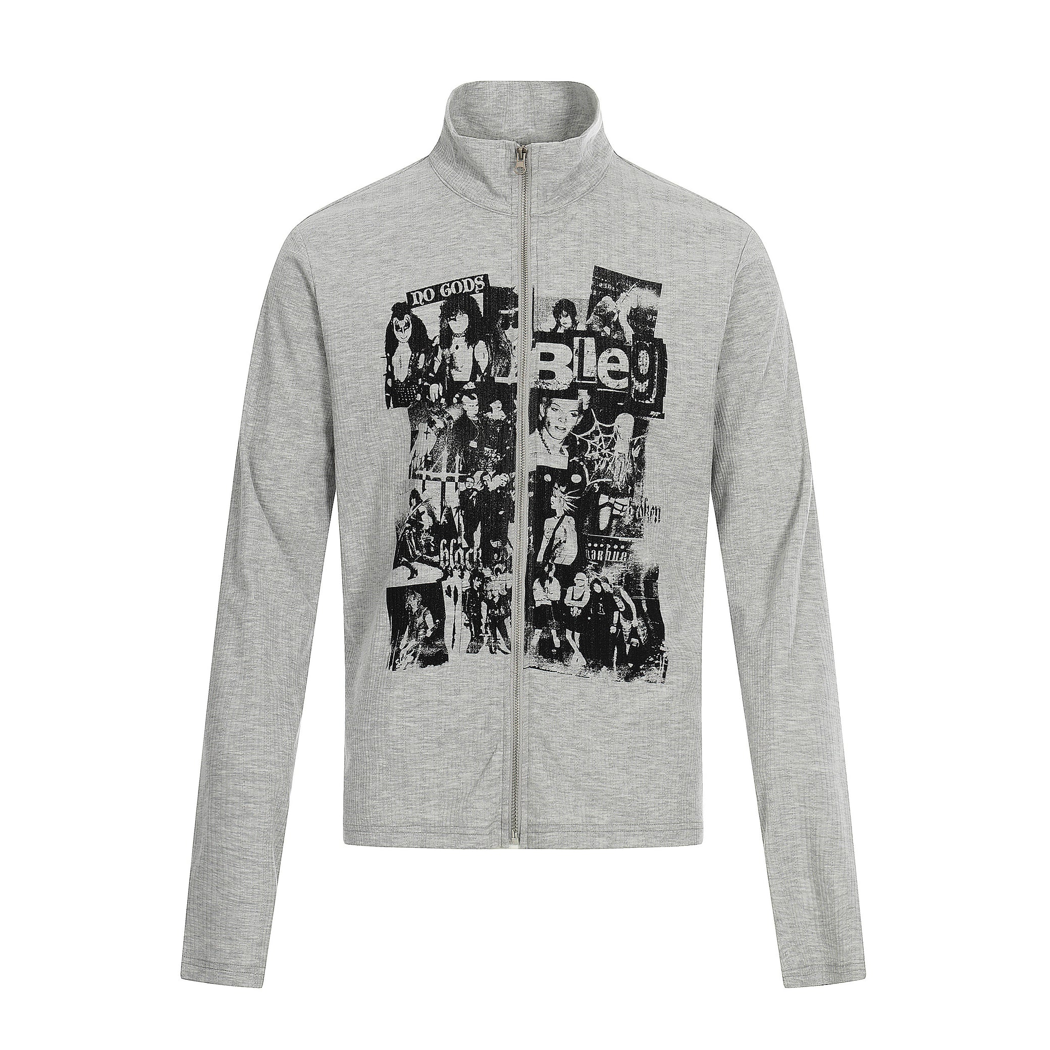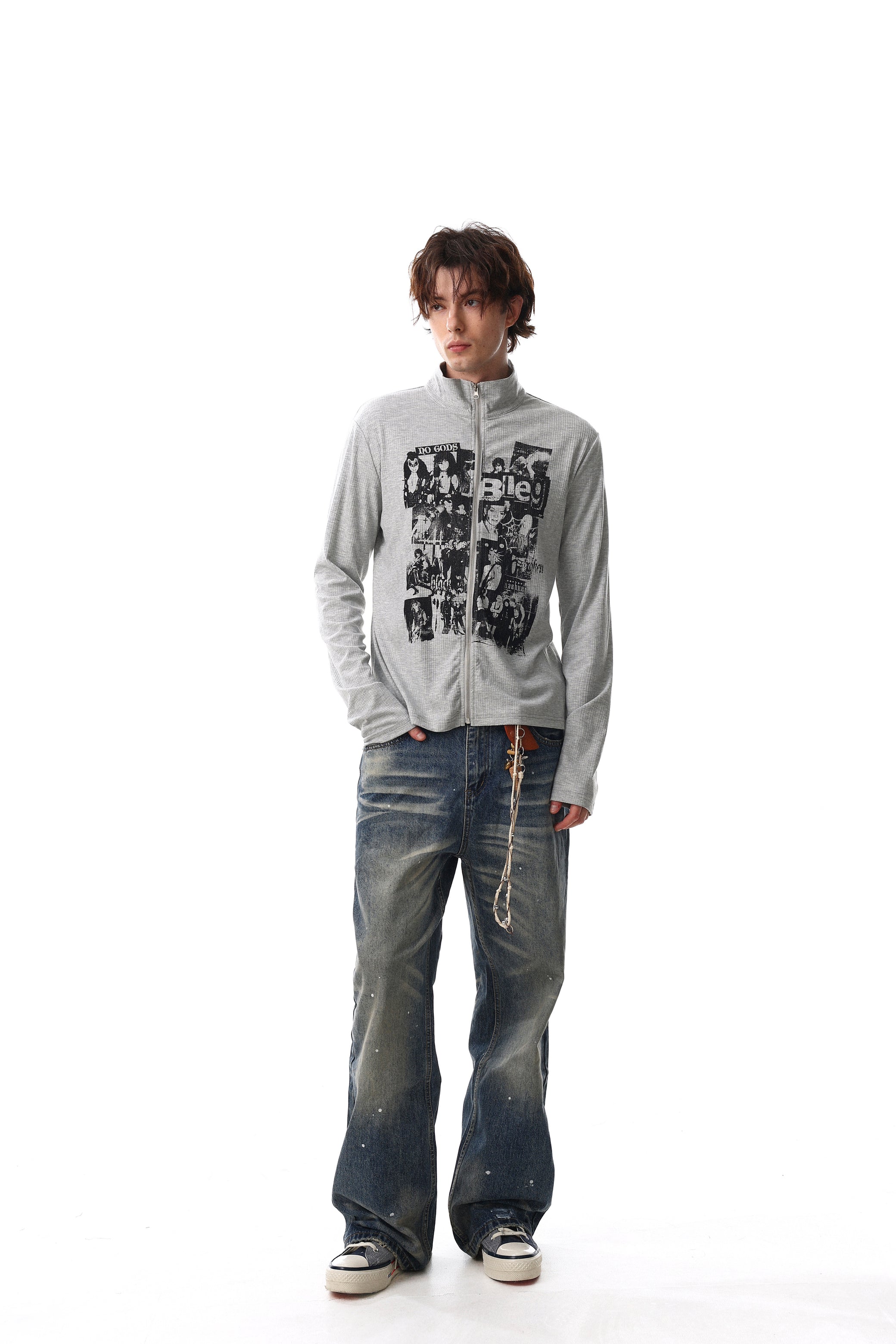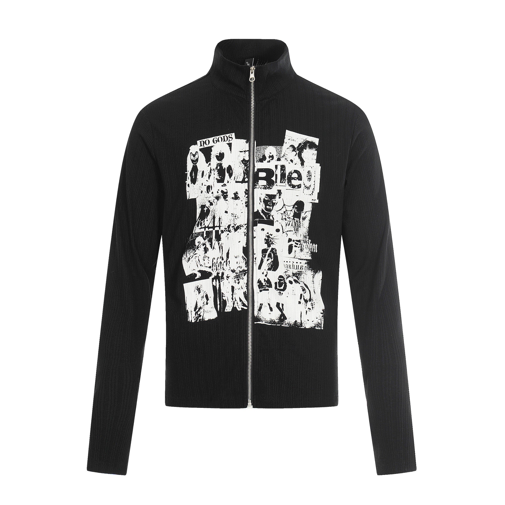 The Omirad Graphic Zip Track Jacket features a cotton-rich athletic blend with a full-zip front and bold collage-style graphic prints that bring a raw street energy to a clean, fitted silhouette. Designed for versatile wear, this piece blends lightweight comfort with a sharp, modern edge.
