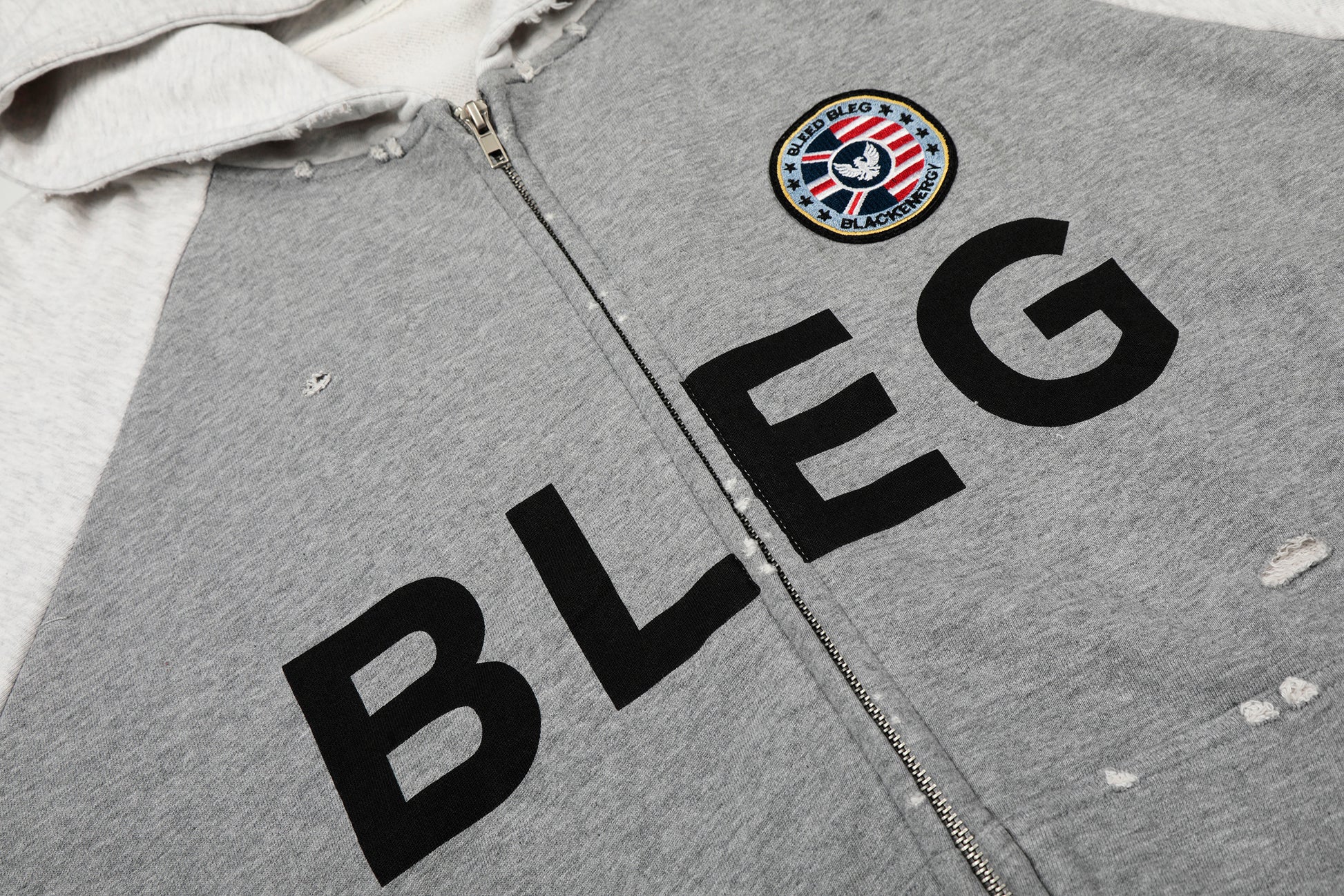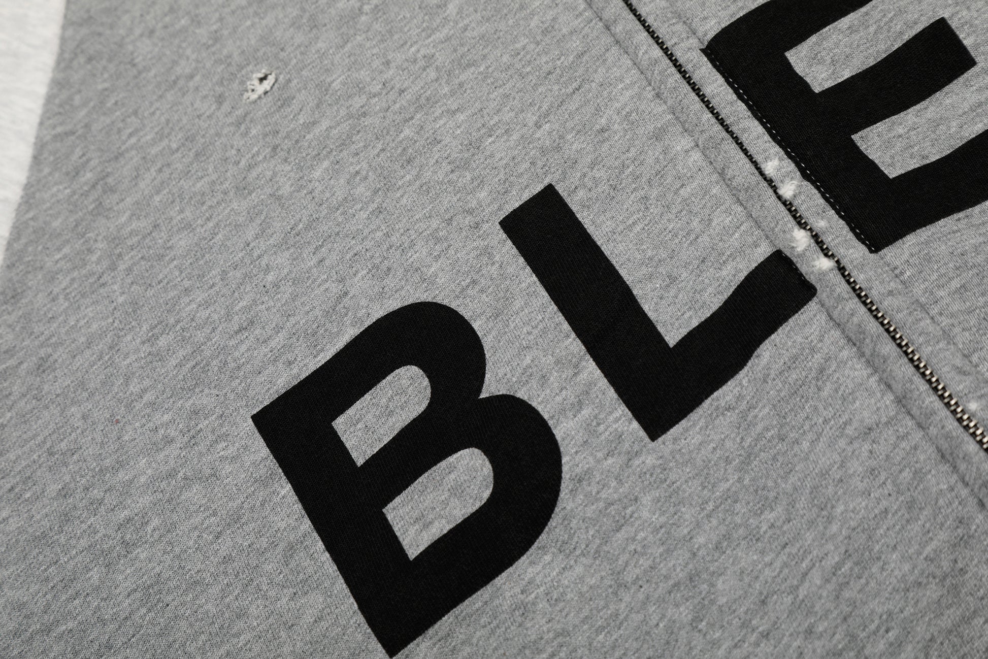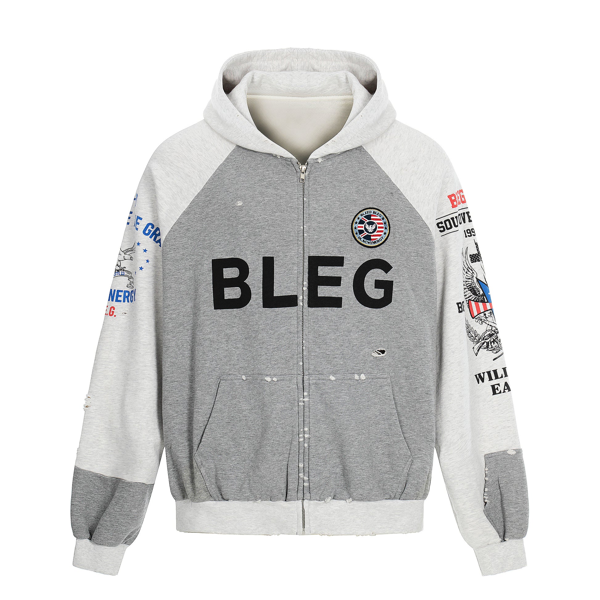 Clothing details: Full zip front closure, adjustable hood, front logo print, graphic sleeve detailing, ribbed cuffs and hem, side pockets, relaxed fit.