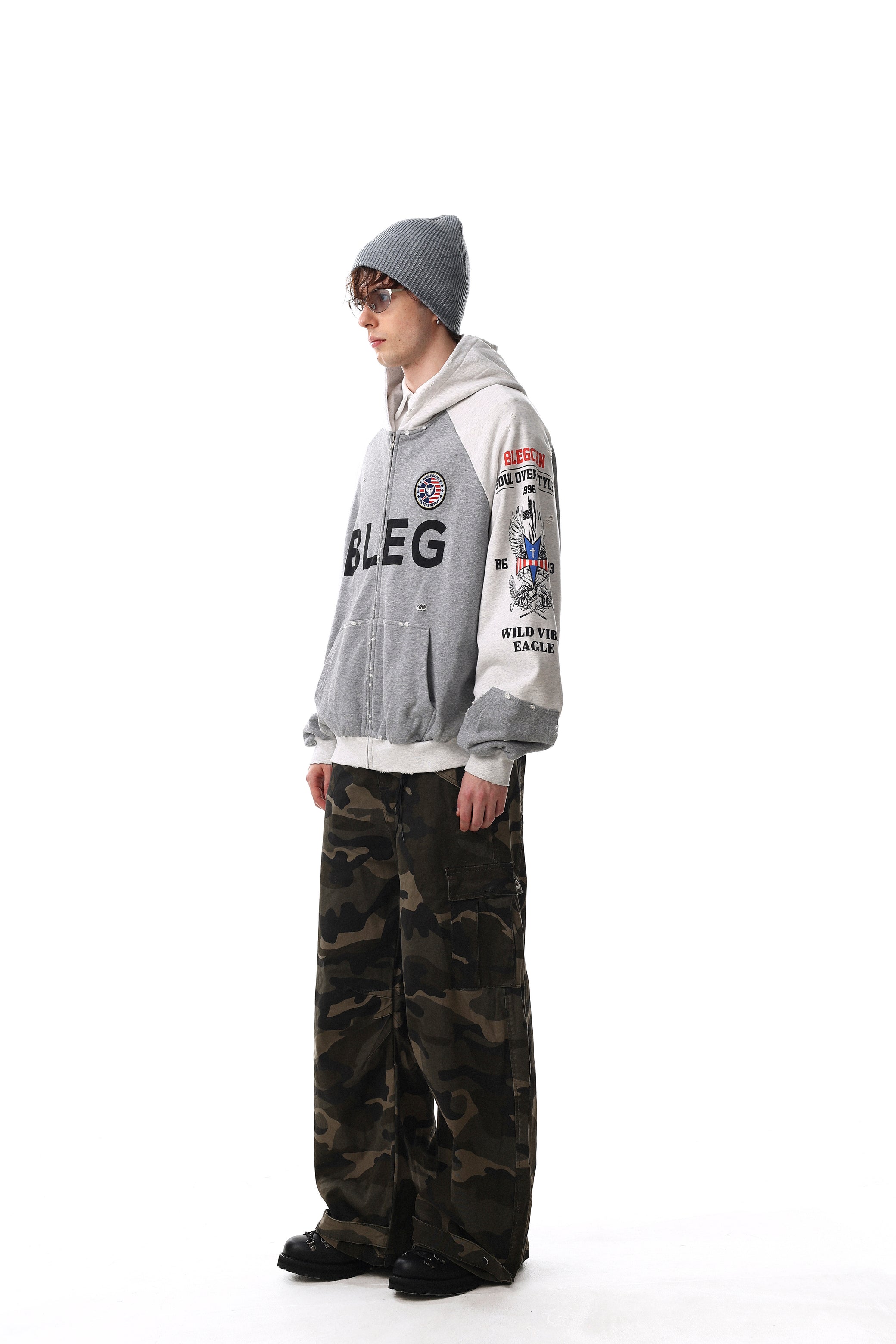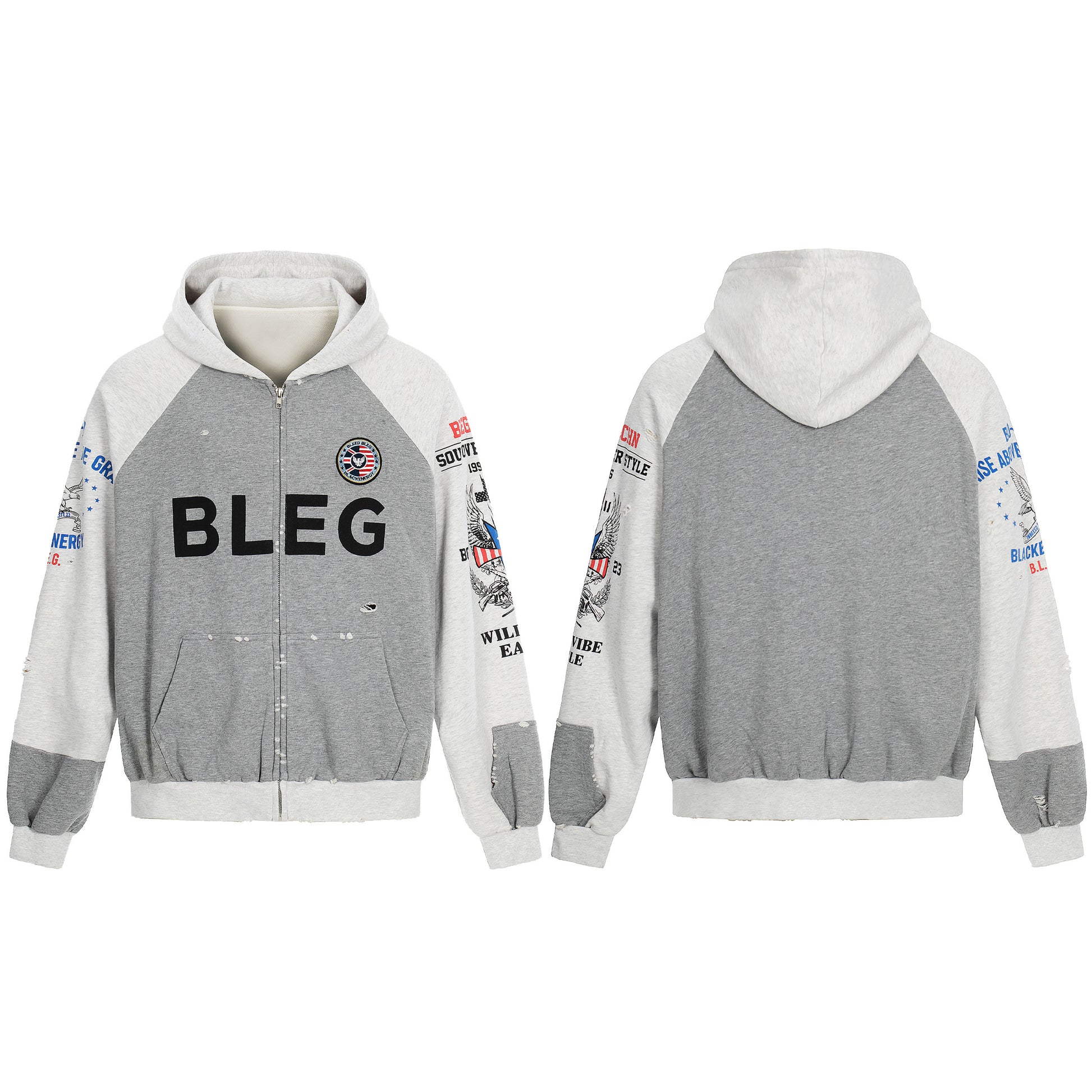 The Omirad Graphic Zip-Up Hoodie features a cotton construction with bold front lettering and multi-graphic sleeve details that bring a worn-in street aesthetic to a classic zip-up silhouette. Designed for everyday layering, this hoodie balances visual impact with relaxed comfort.
