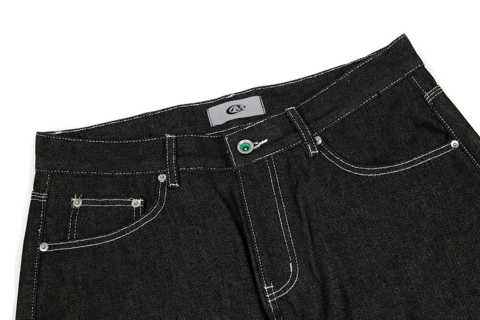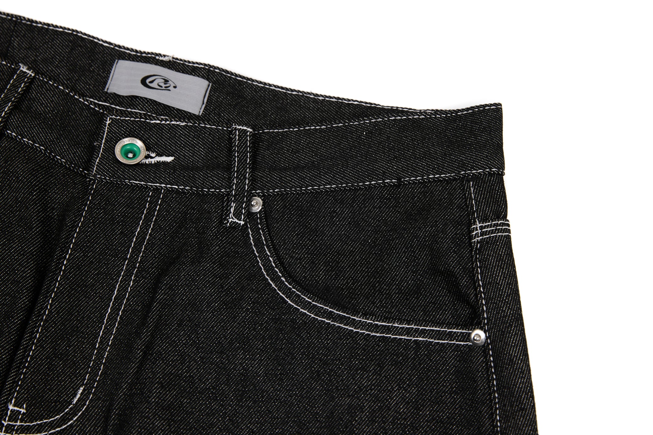 The Omirad Heavy Stitch Barrel Denim brings that low-key menace every real streetwear fit needs. The black denim hits hard with a wide, curved barrel silhouette that makes every step look intentional. Oversized front paneling gives it a custom cut-and-sew vibe, while the contrast stitching keeps the whole piece sharp and structured.