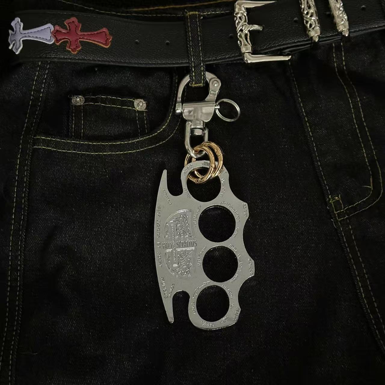 The Omirad “Knuckle” Keychain (Silver Edition) reimagines an iconic form into a collectible piece of street hardware. Crafted from solid zinc alloy with engraved gothic detailing, this piece carries a cold metallic finish that adds a raw industrial tone to your setup. Complete with a sturdy clasp and interlinked metal rings for easy attachment to bags, belt loops, or keychains.