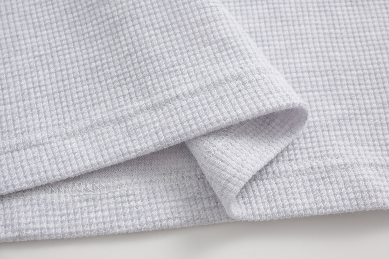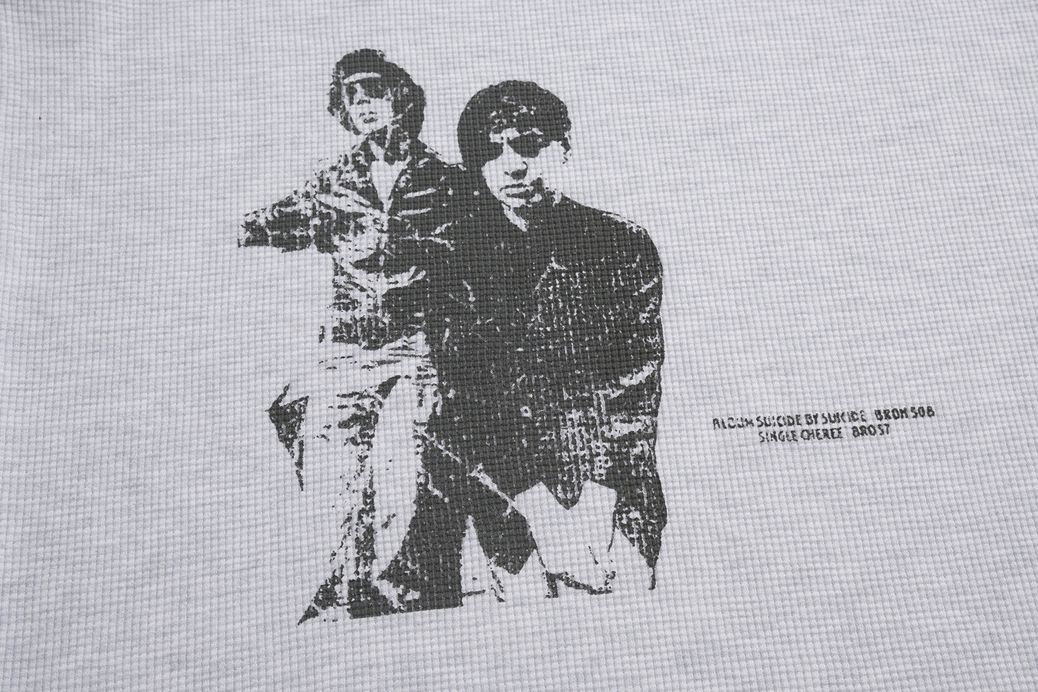 Clothing details: Double-layer design, photo and text print, textured waffle knit, relaxed fit