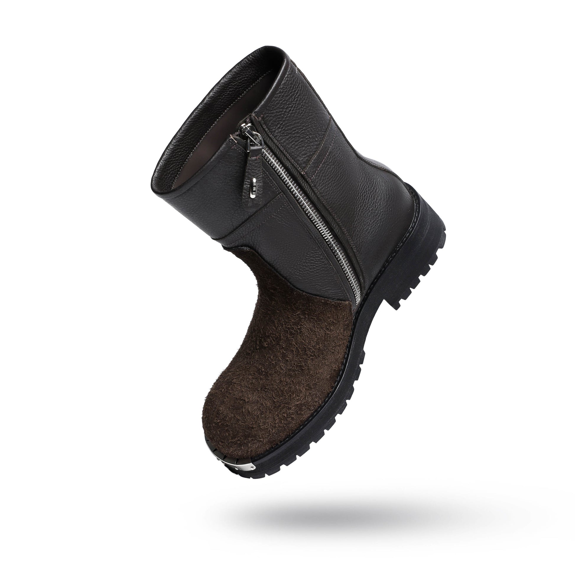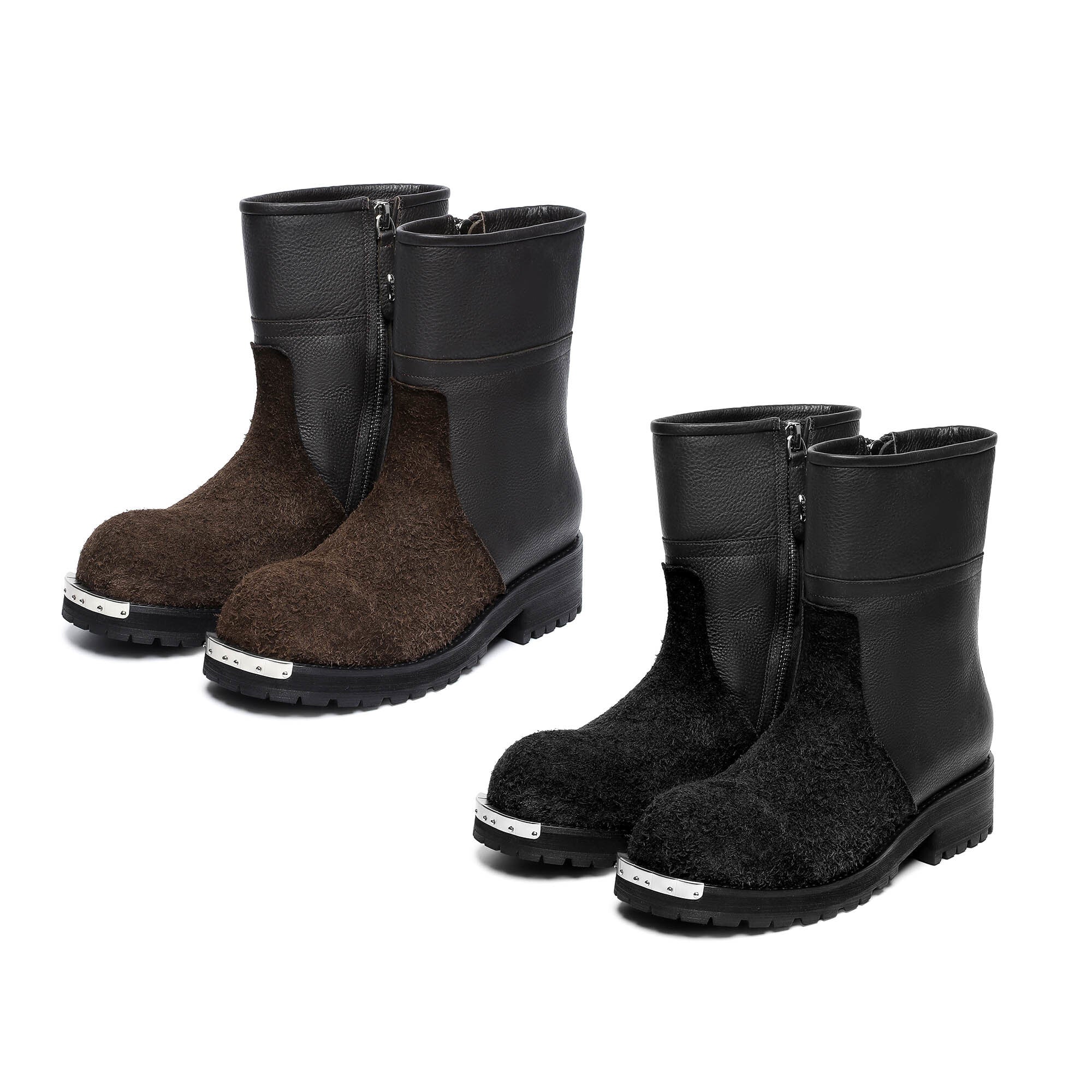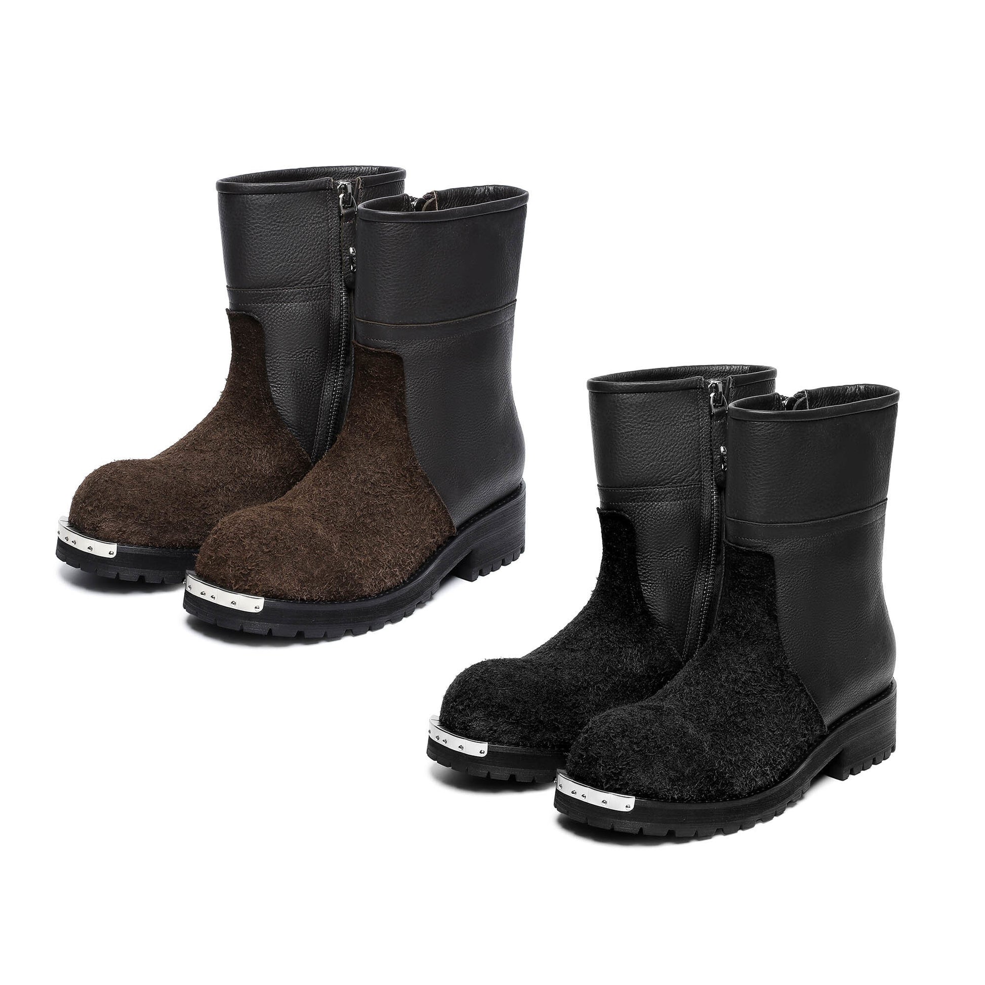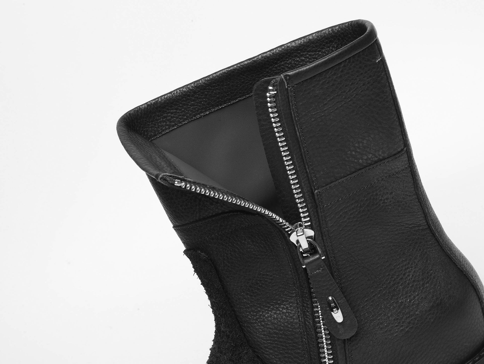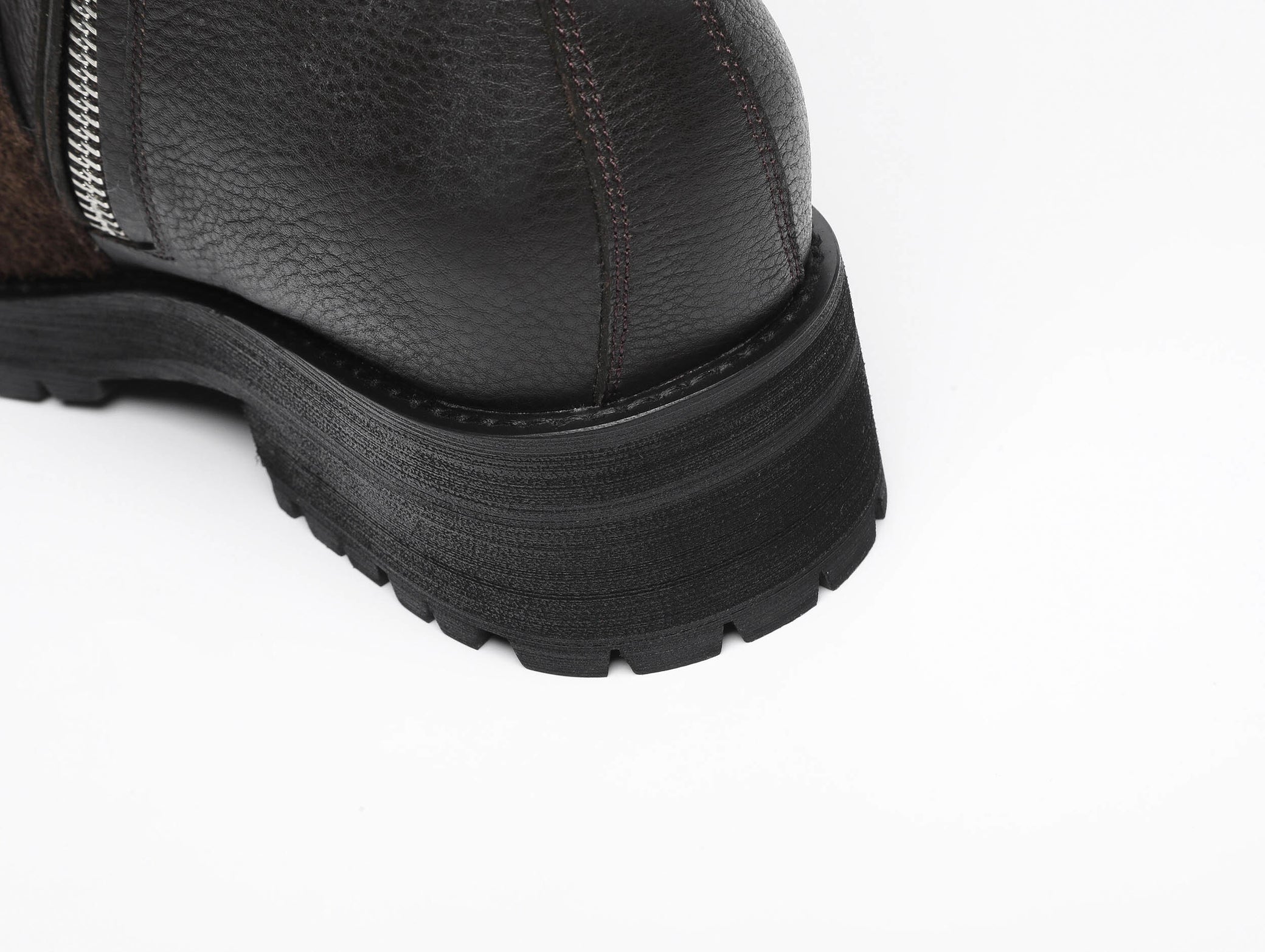 The Omirad Leather Panel Zip Boots feature a bold mixed-texture design with premium cowhide leather construction that brings a rugged luxury edge to modern street footwear. Built for durability and standout style, these boots combine a structured silhouette with raw material contrast for an unapologetic urban statement.