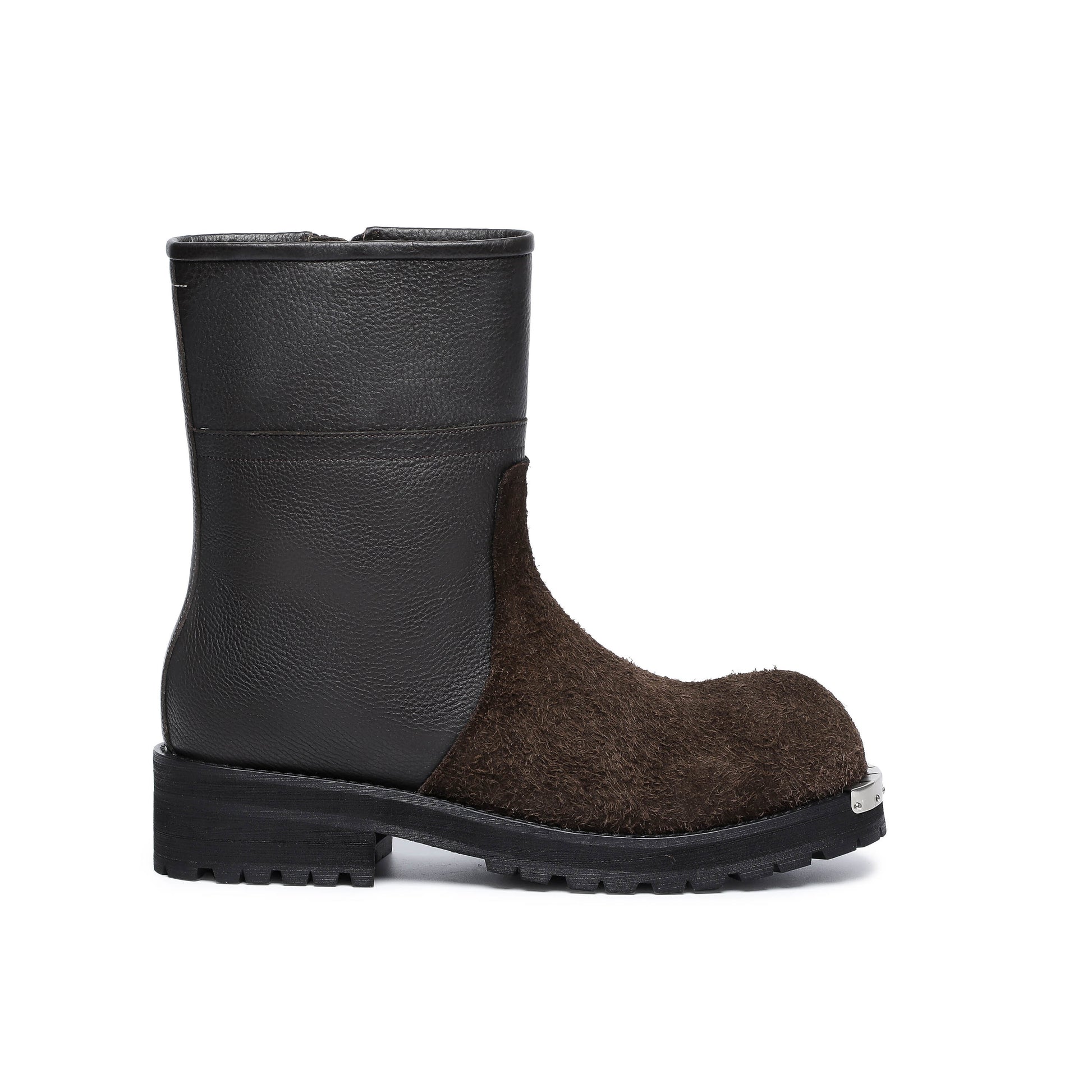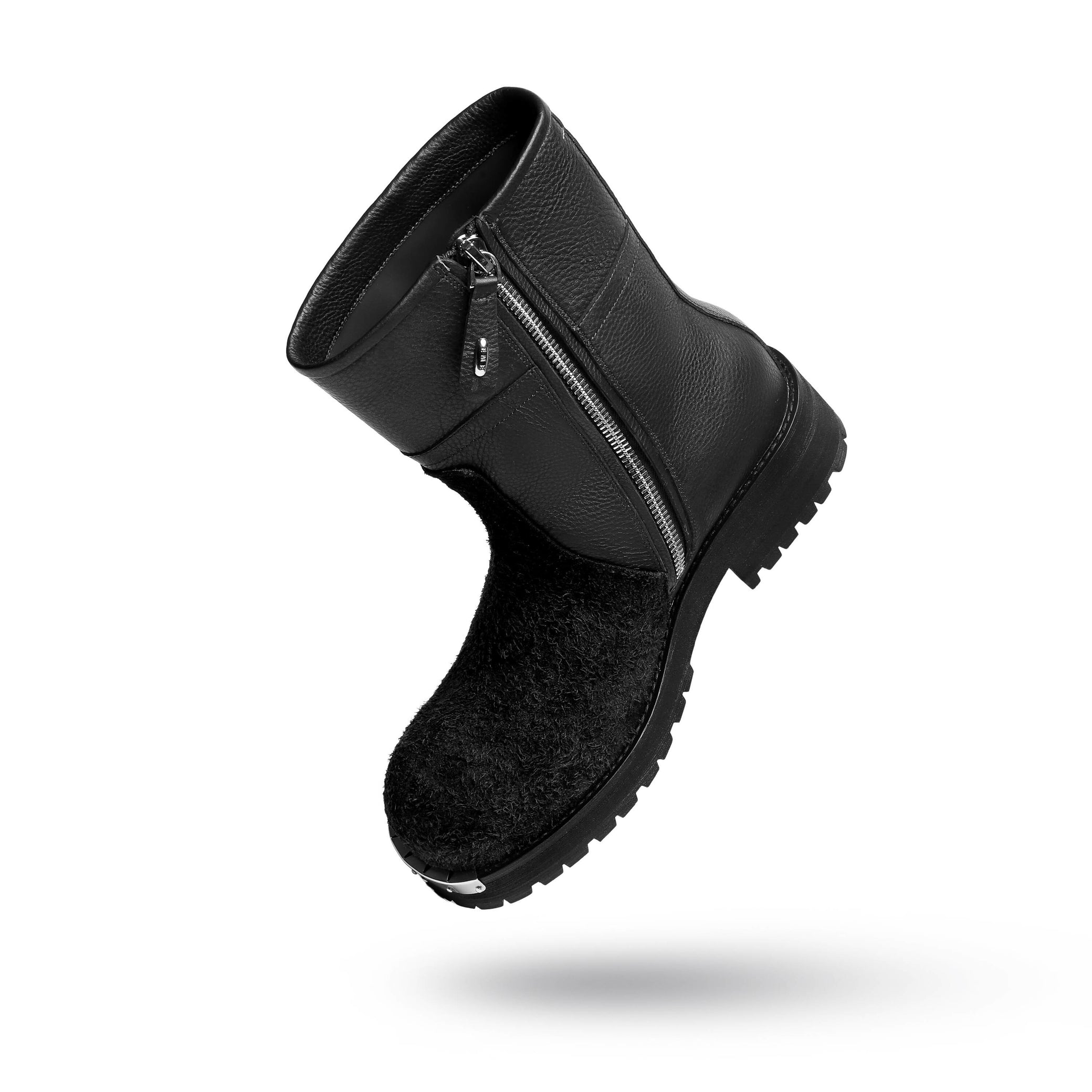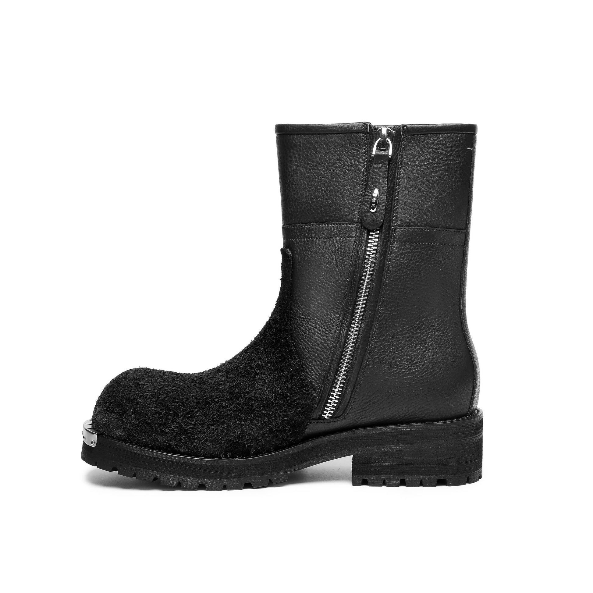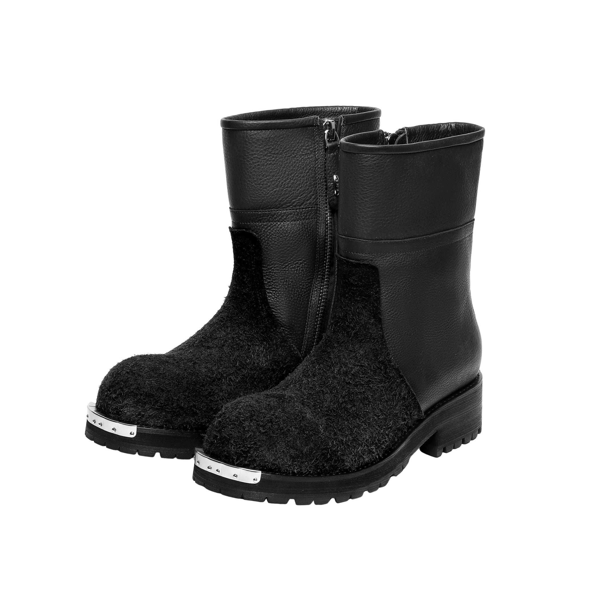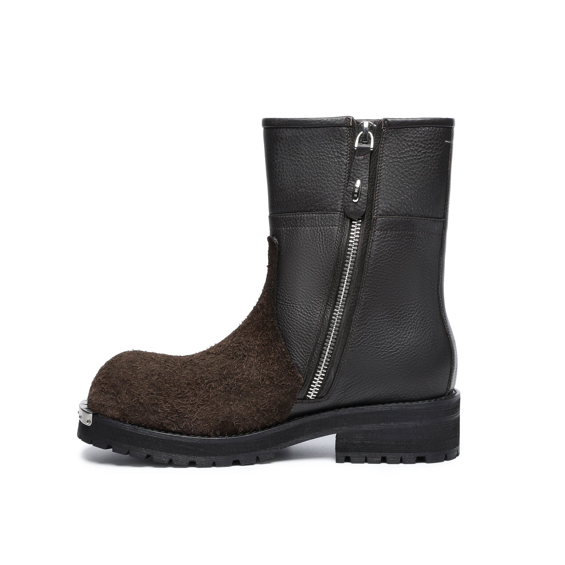 The Omirad Leather Panel Zip Boots feature a bold mixed-texture design with premium cowhide leather construction that brings a rugged luxury edge to modern street footwear. Built for durability and standout style, these boots combine a structured silhouette with raw material contrast for an unapologetic urban statement.