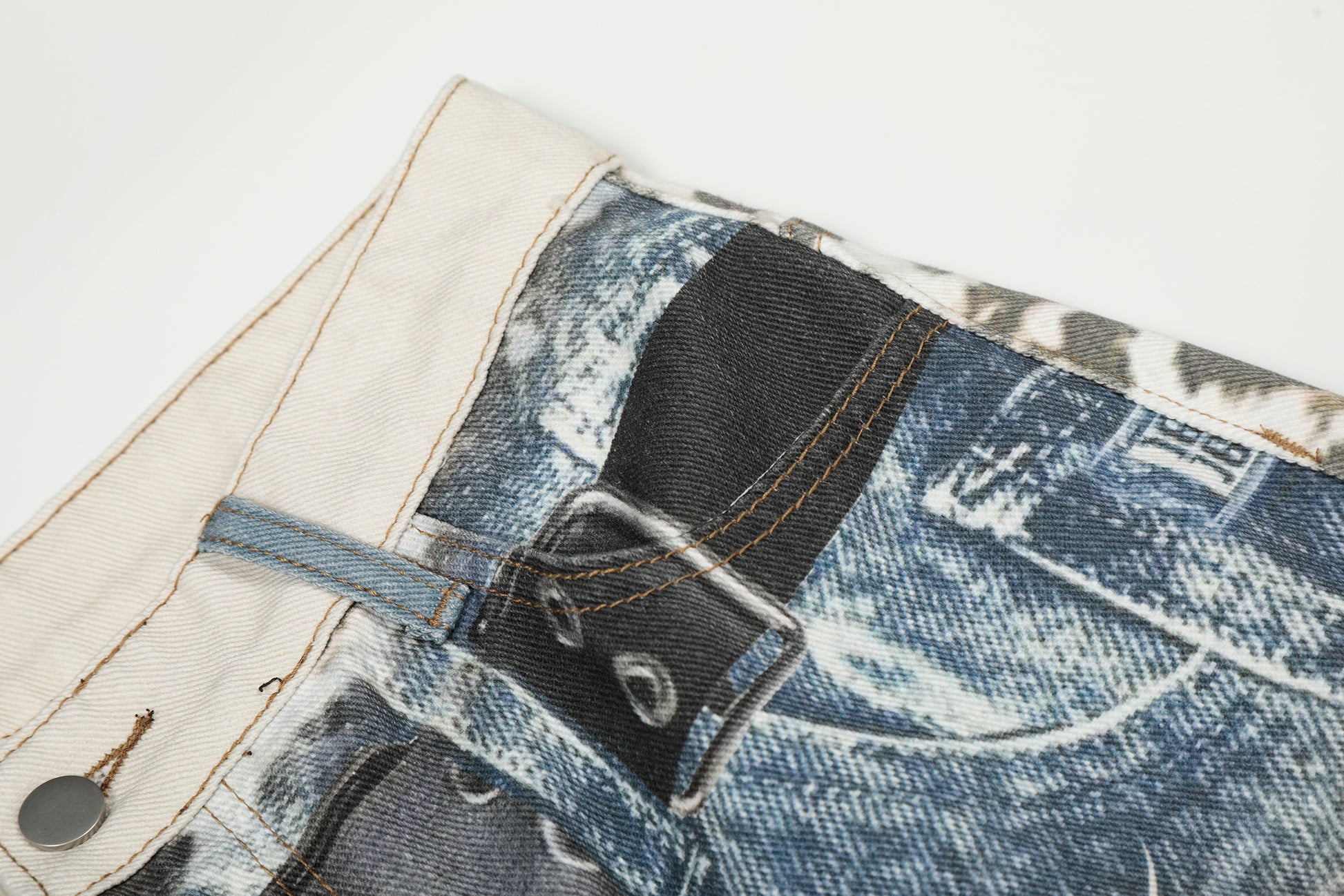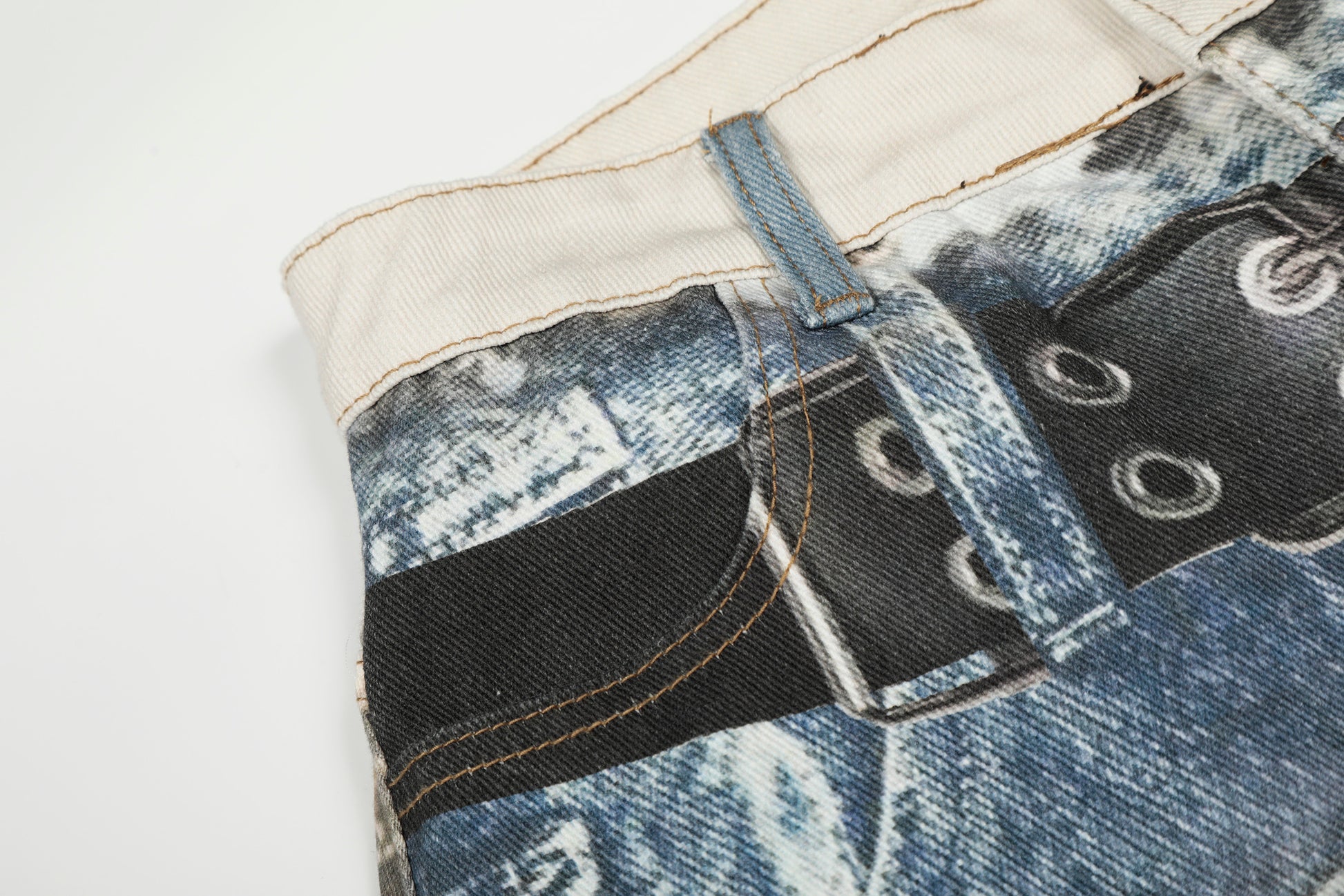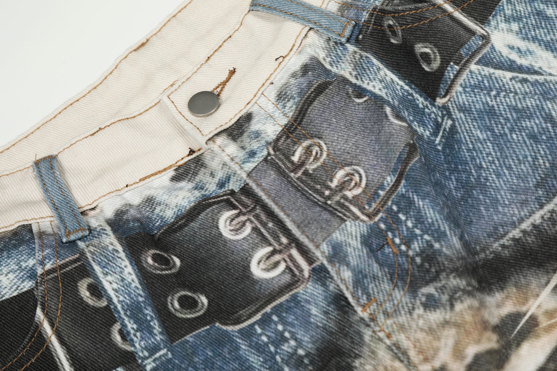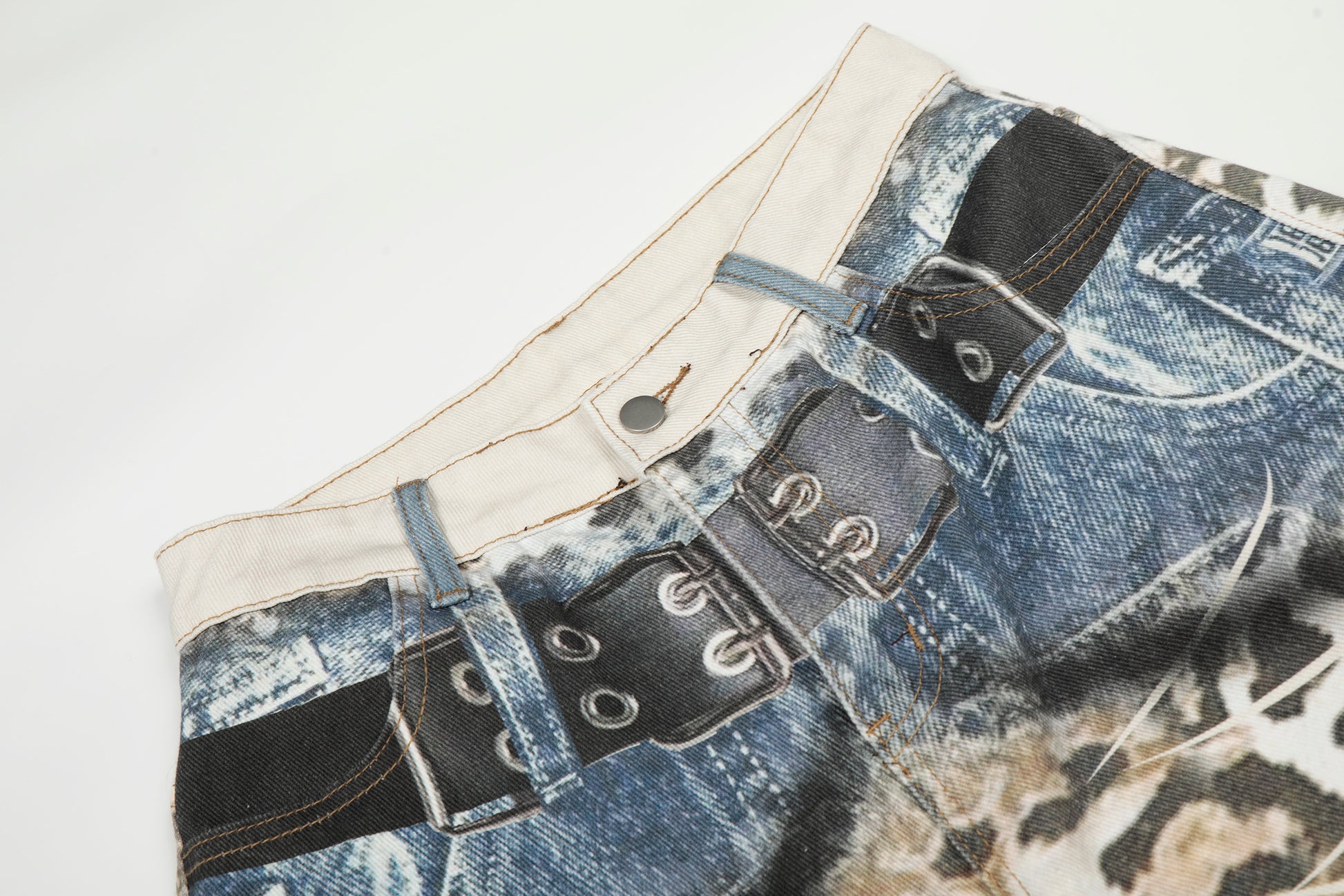 The Omirad Leopard-Print Belted Wide-Leg Jeans combine bold streetwear style with a playful Y2K attitude. Crafted from 100% cotton, these jeans feature a striking all-over leopard pattern, enhanced by contrasting denim patch details and a faux belt waistband design that adds dimension and attitude. The wide-leg silhouette gives a relaxed, baggy fit—perfect for styling with oversized tops or cropped hoodies for an effortless street vibe.