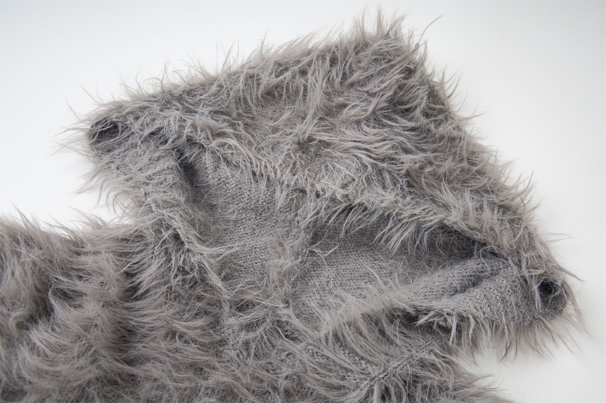 The Omirad Long-Fur Graphic Sweater brings avant-garde texture to everyday streetwear. Made from ultra-soft long-pile yarn, it features a shaggy, tactile surface that captures both warmth and attitude. The back showcases artistic patch graphics that give each piece a unique, handcrafted feel — where cozy comfort meets raw street expression.
