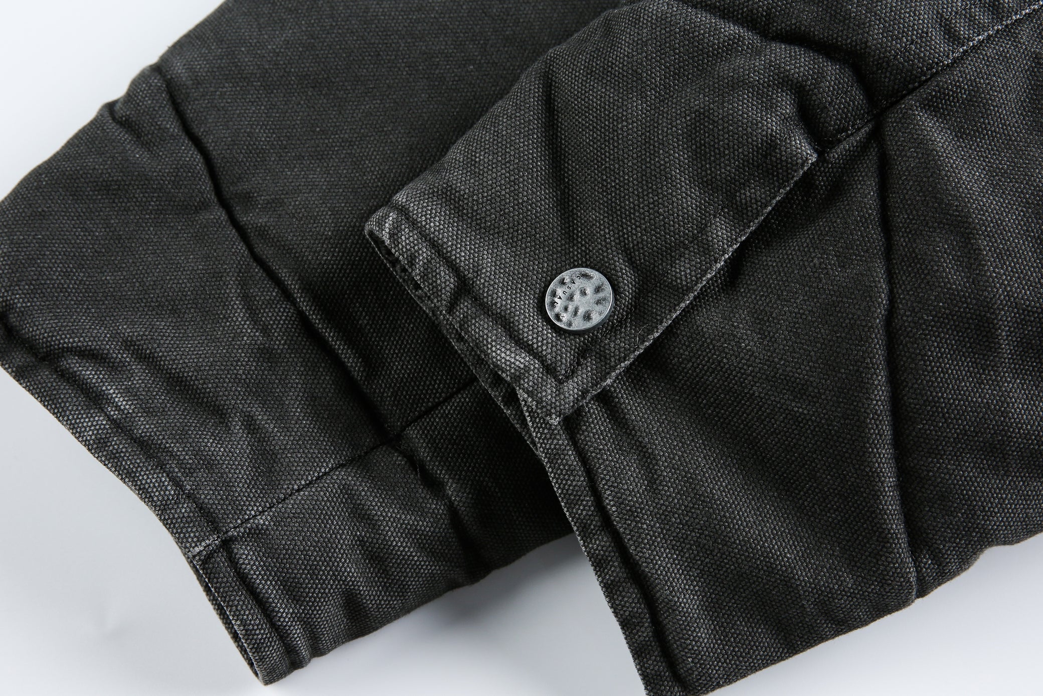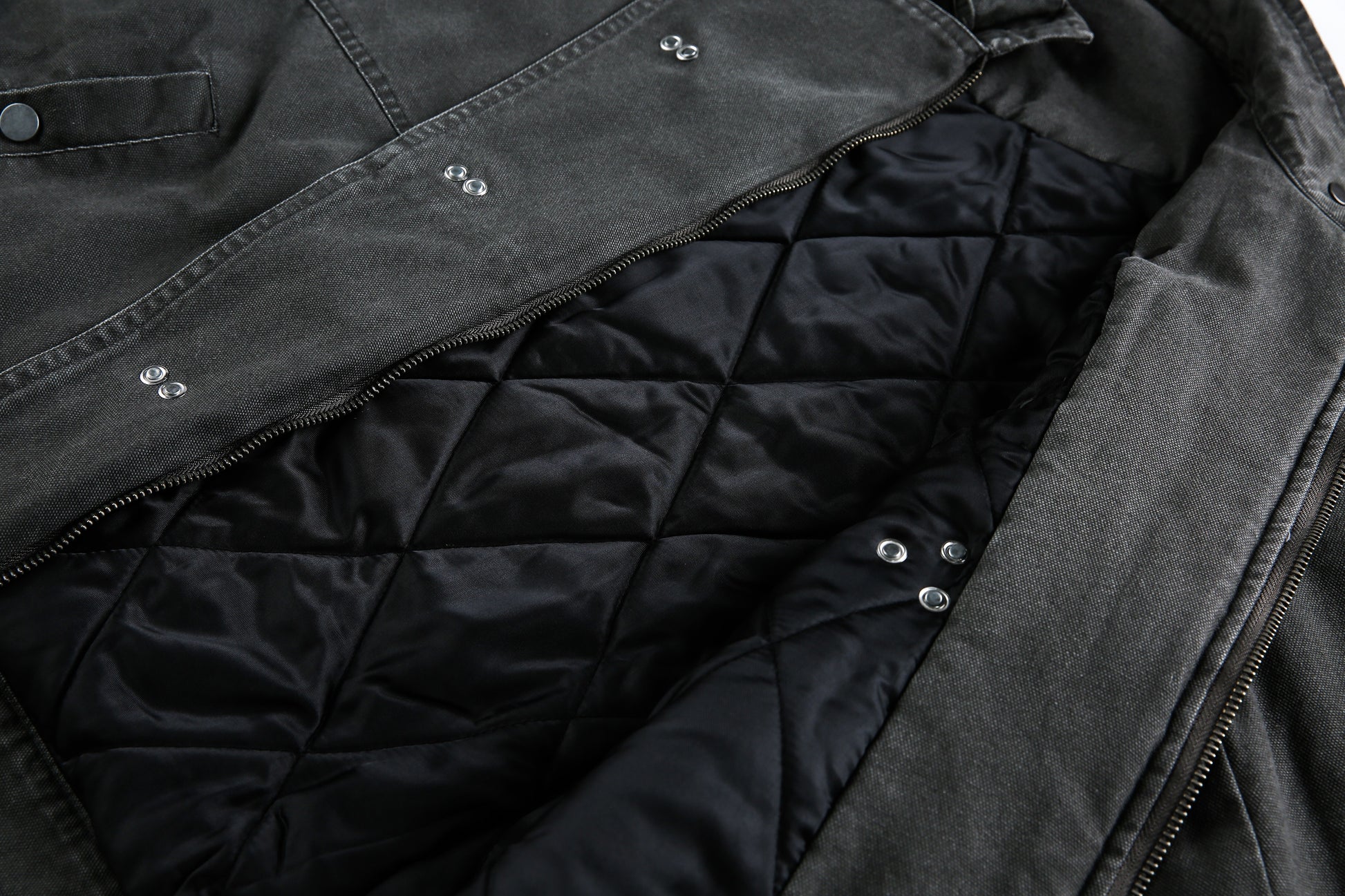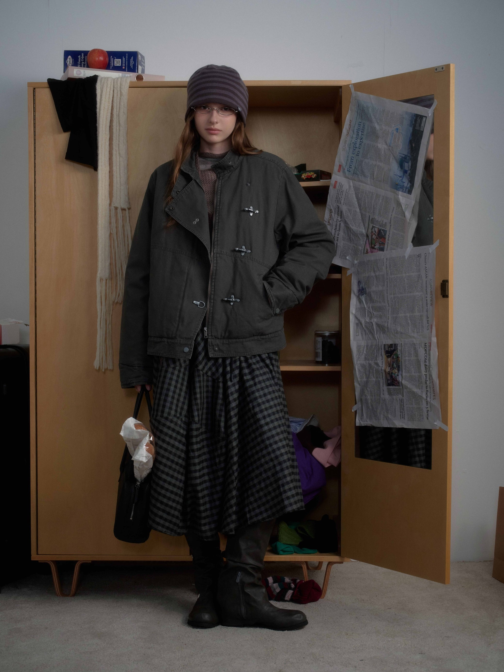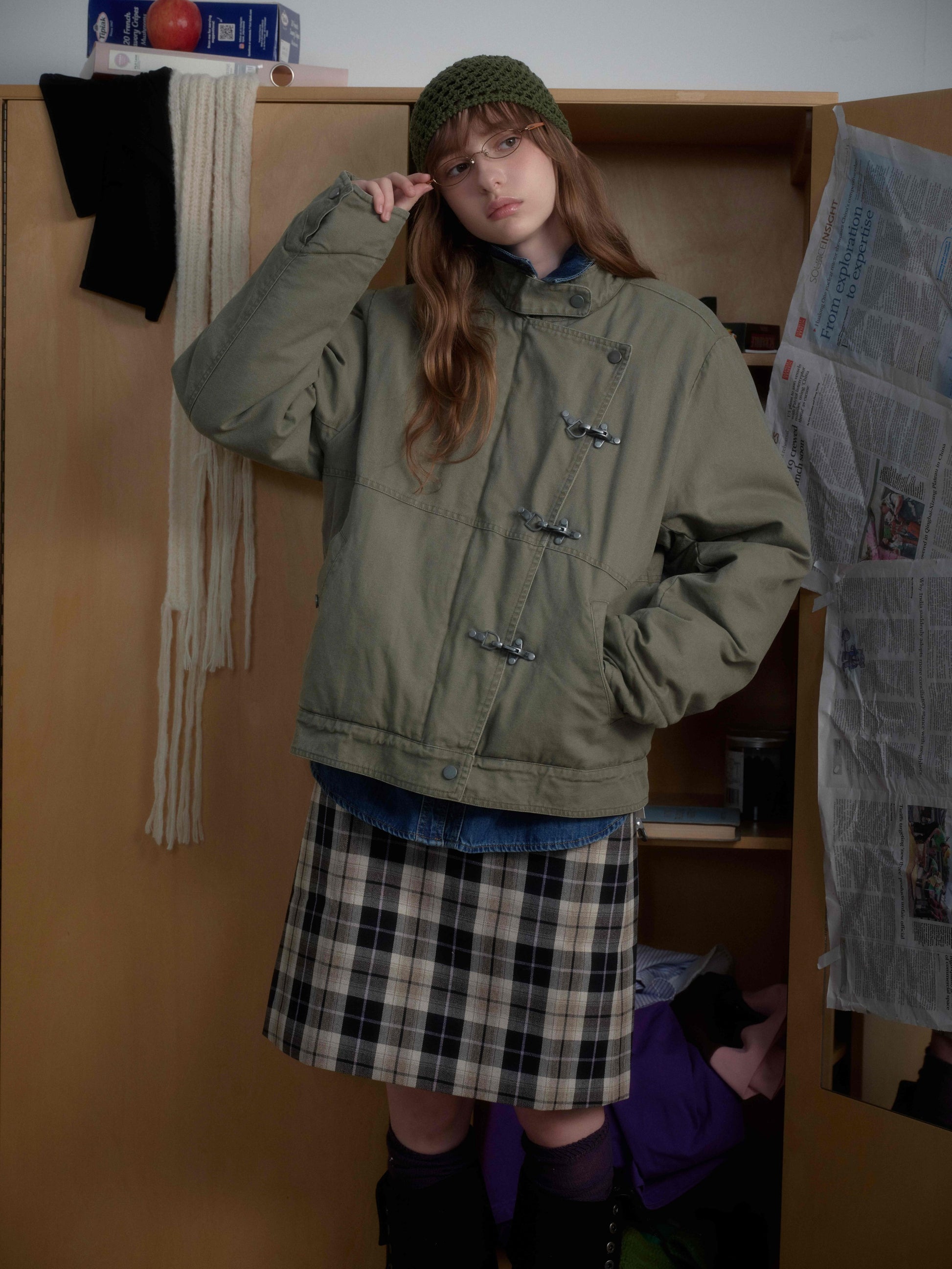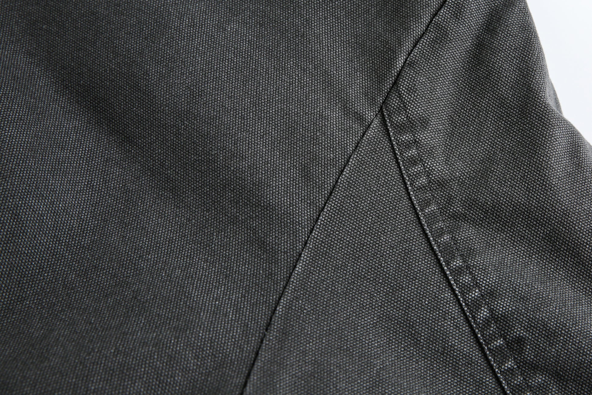 The Omirad Metal Clasp Utility Jacket reimagines military-inspired structure with a contemporary edge. Featuring asymmetrical metal clasp closures and a stand collar, this jacket combines utilitarian function with modern streetwear flair. Made from 100% cotton, it provides a firm texture with a comfortable hand feel, perfect for layering across seasons.