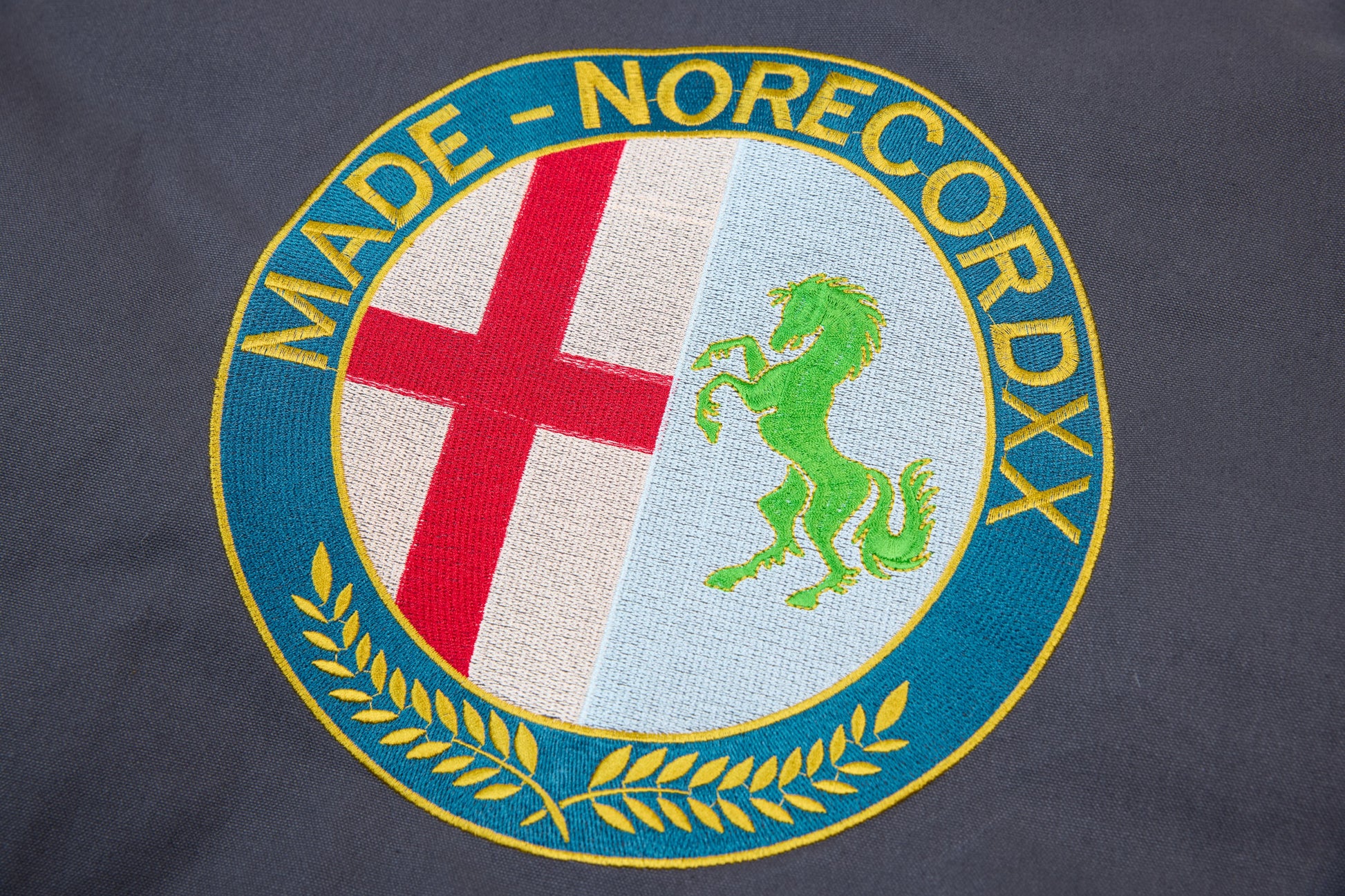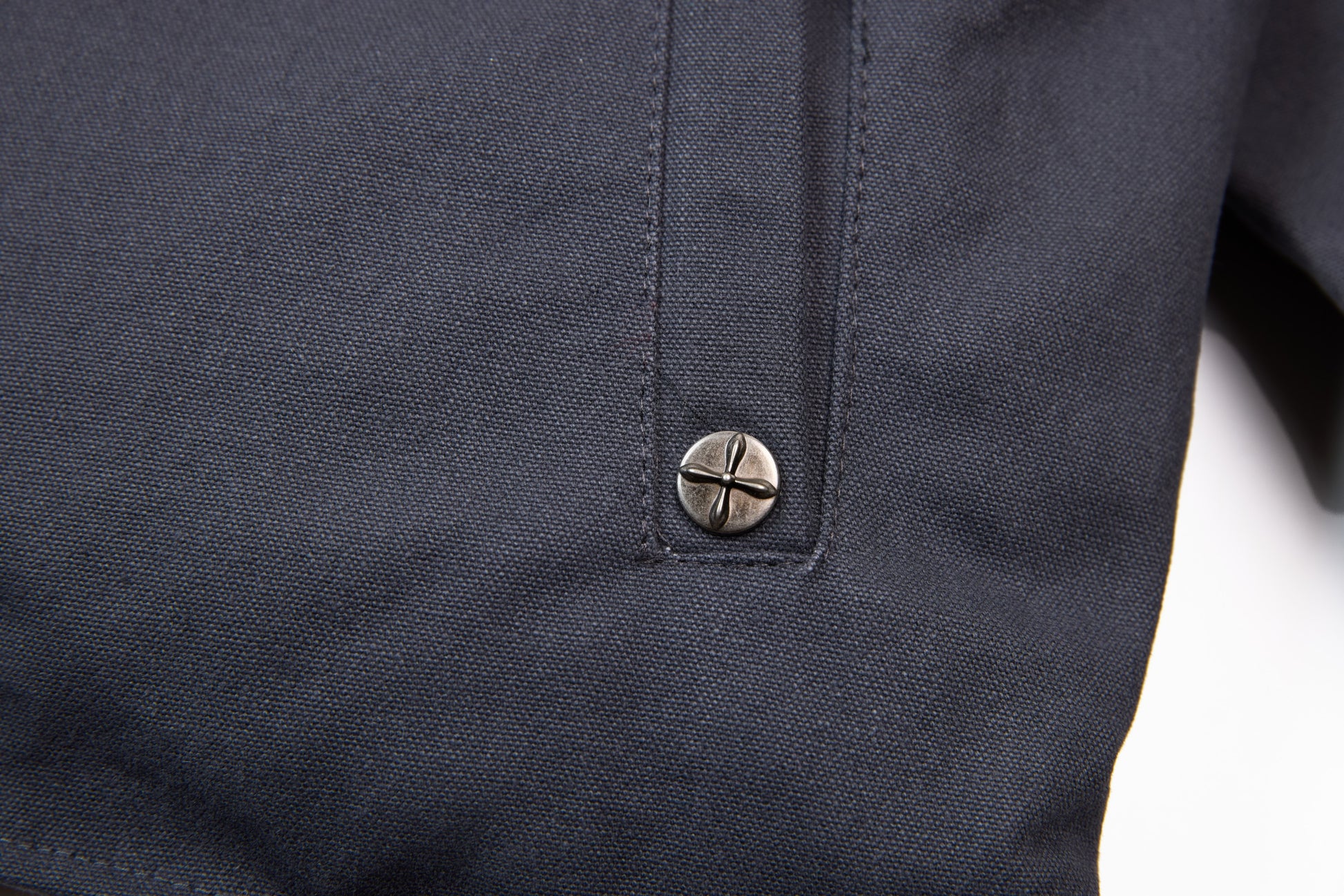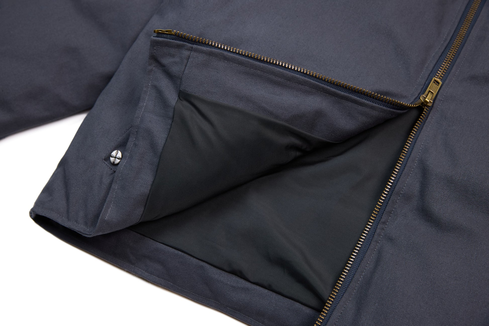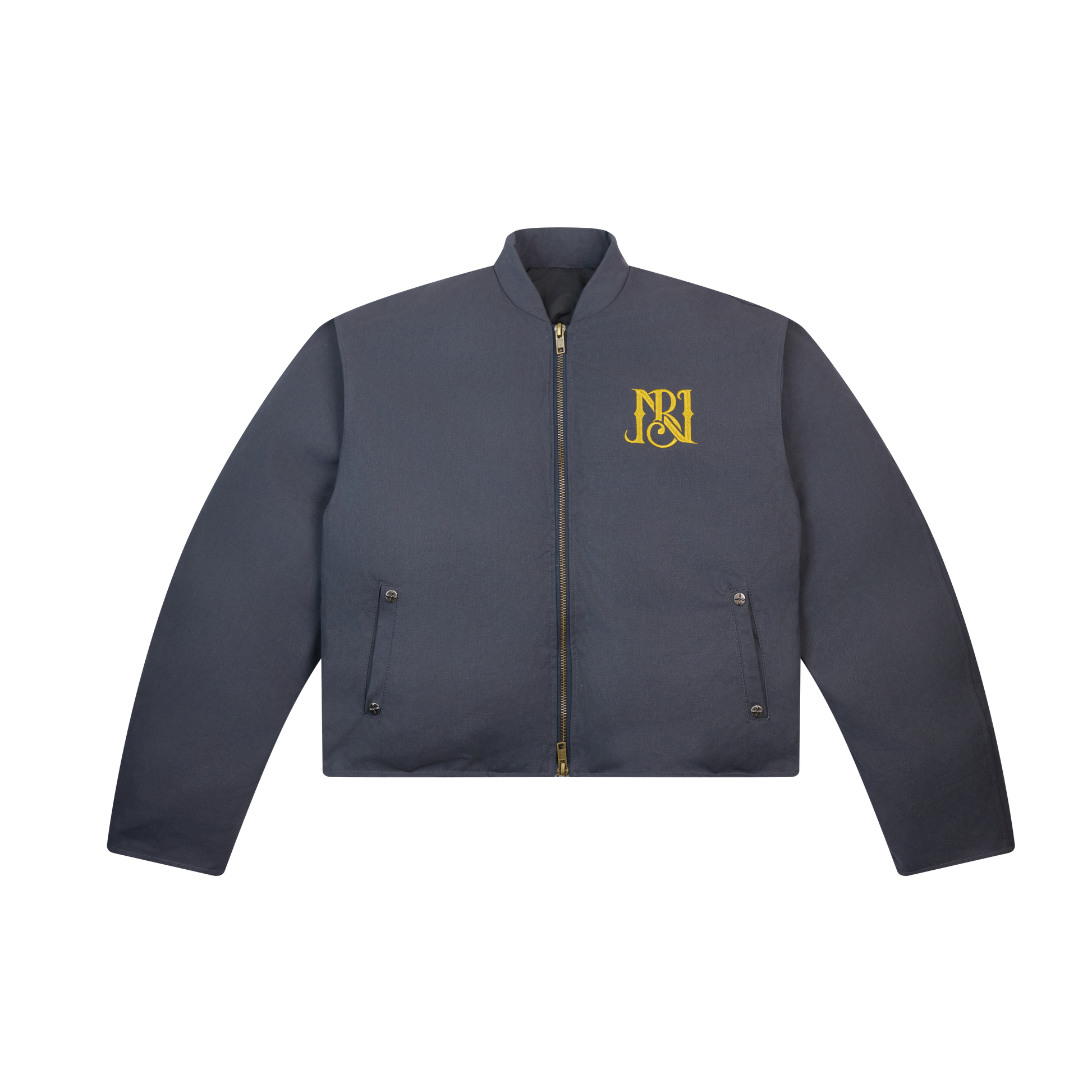 Clothing details: Chest embroidery, snap-button side pockets, metal front zipper