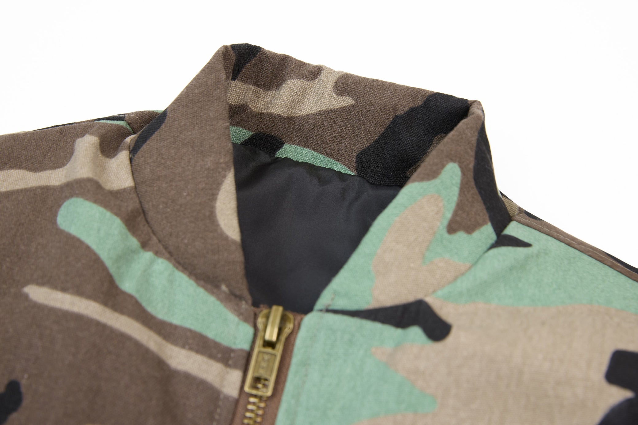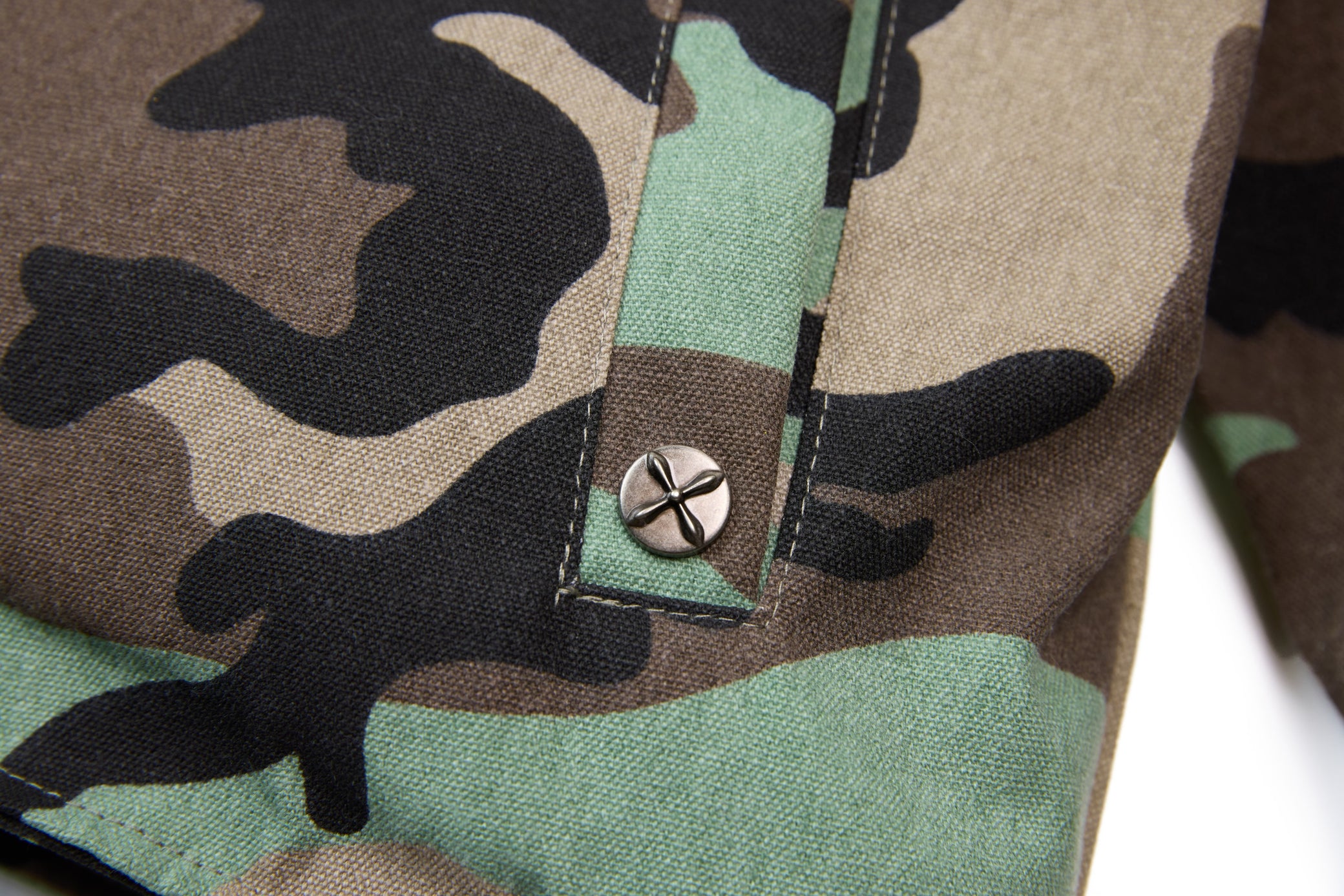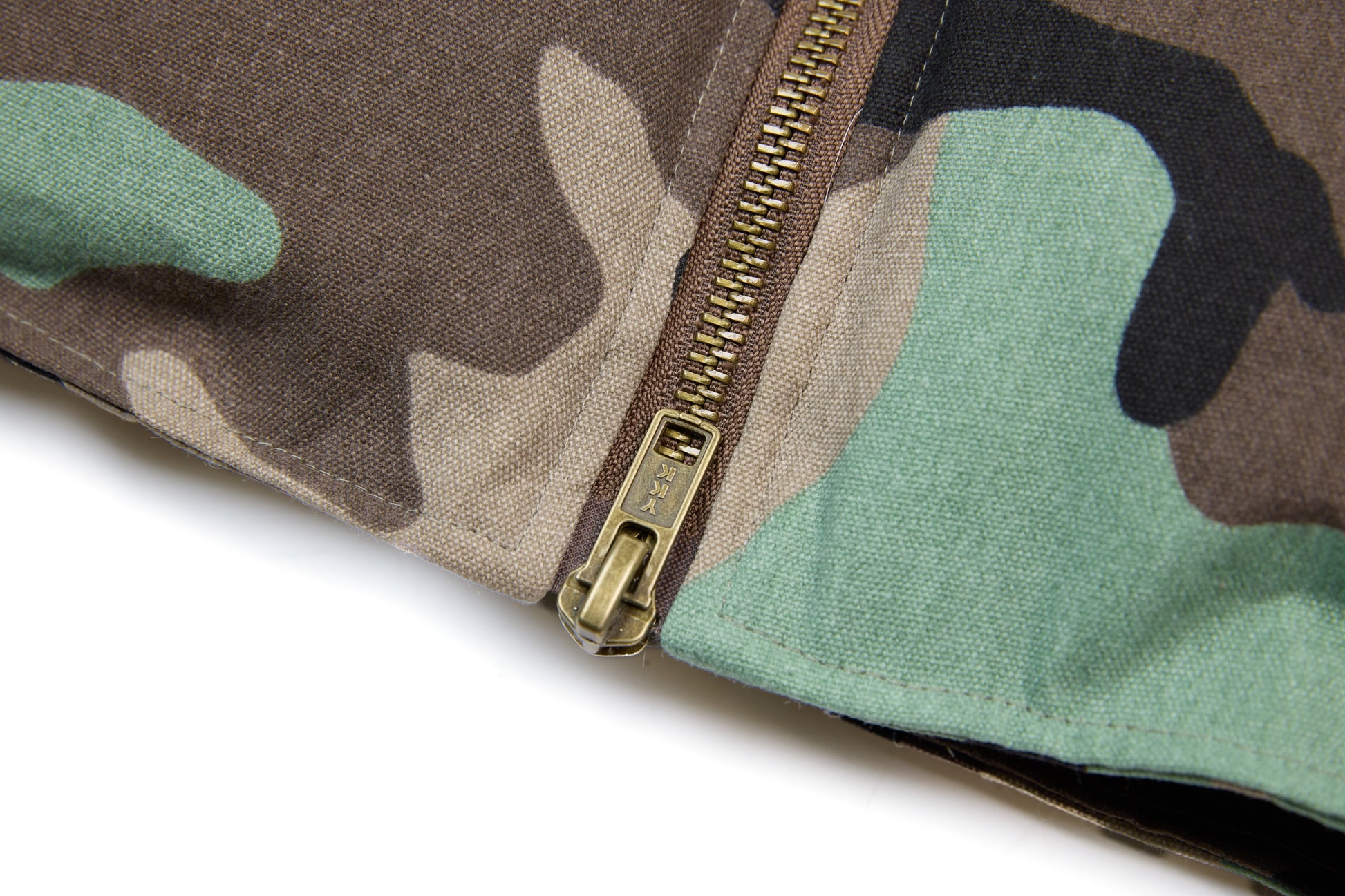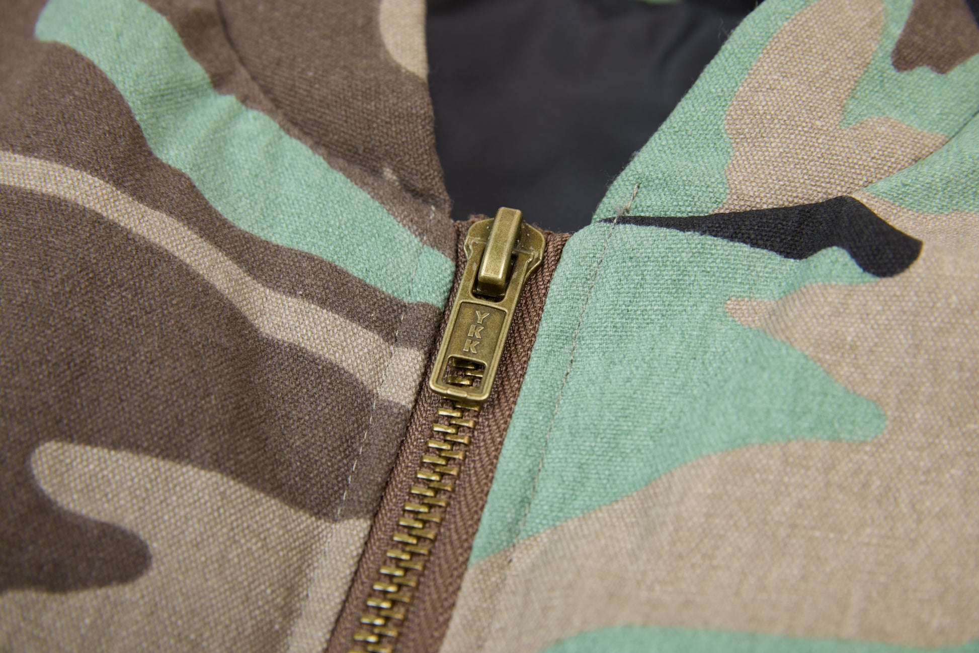 Clothing details: Chest embroidery, snap-button side pockets, metal front zipper