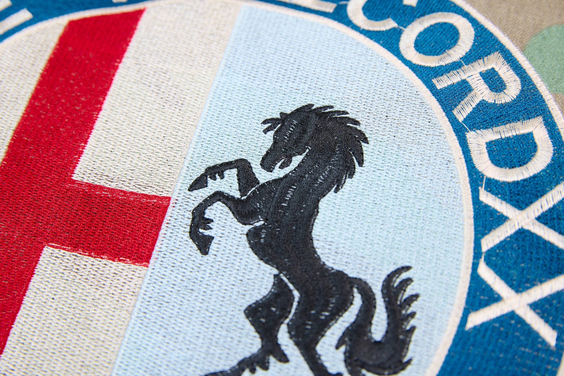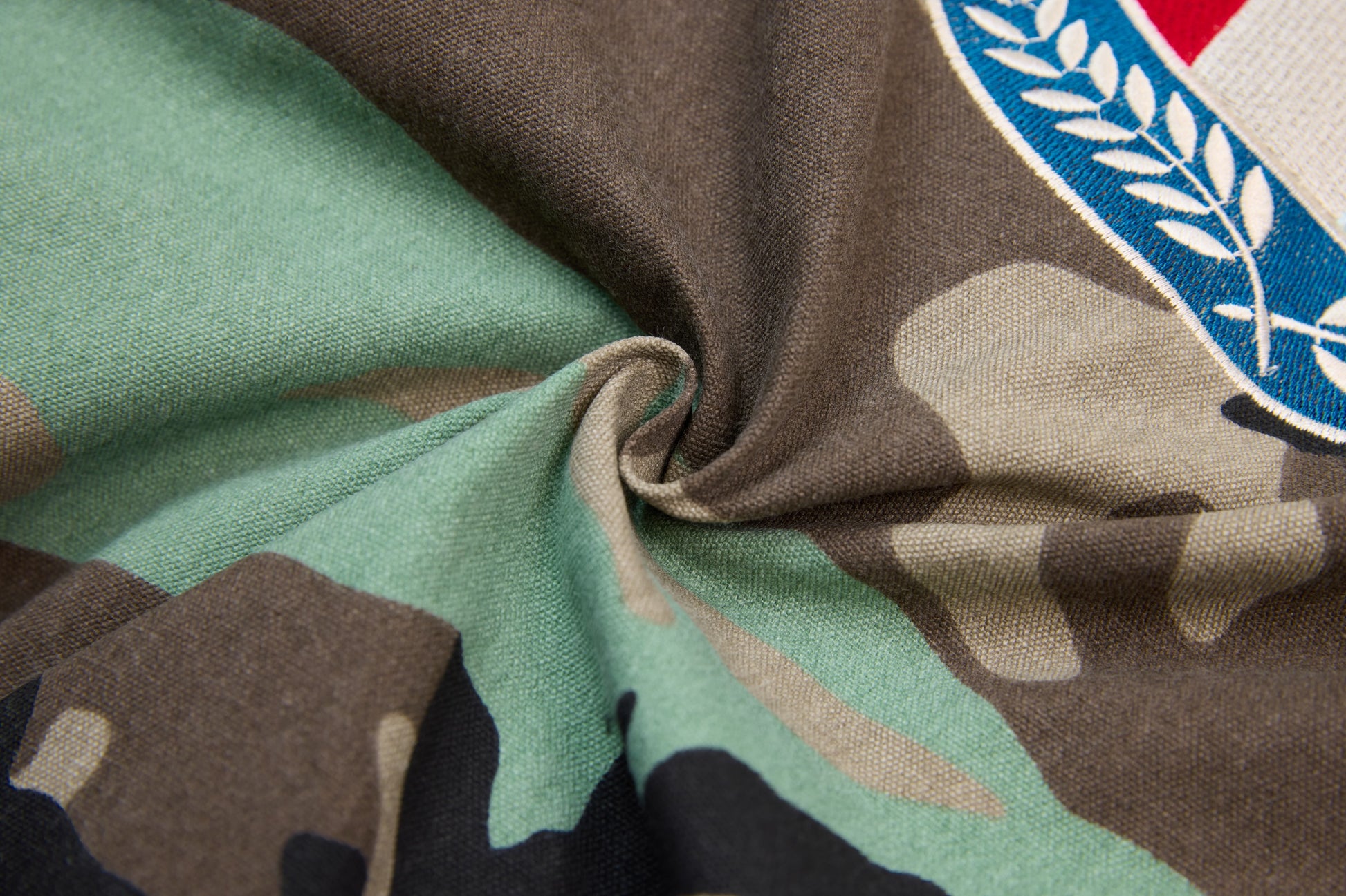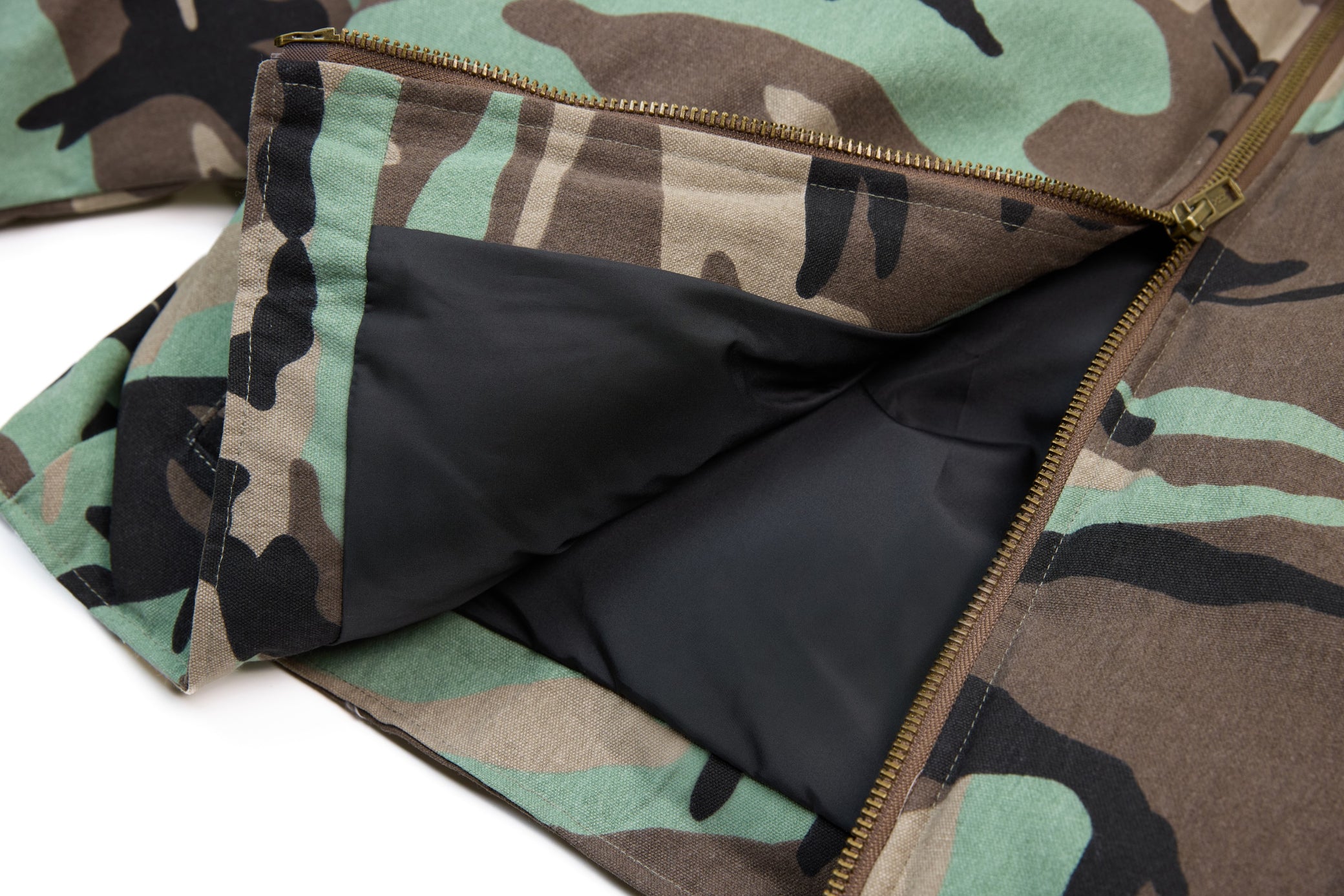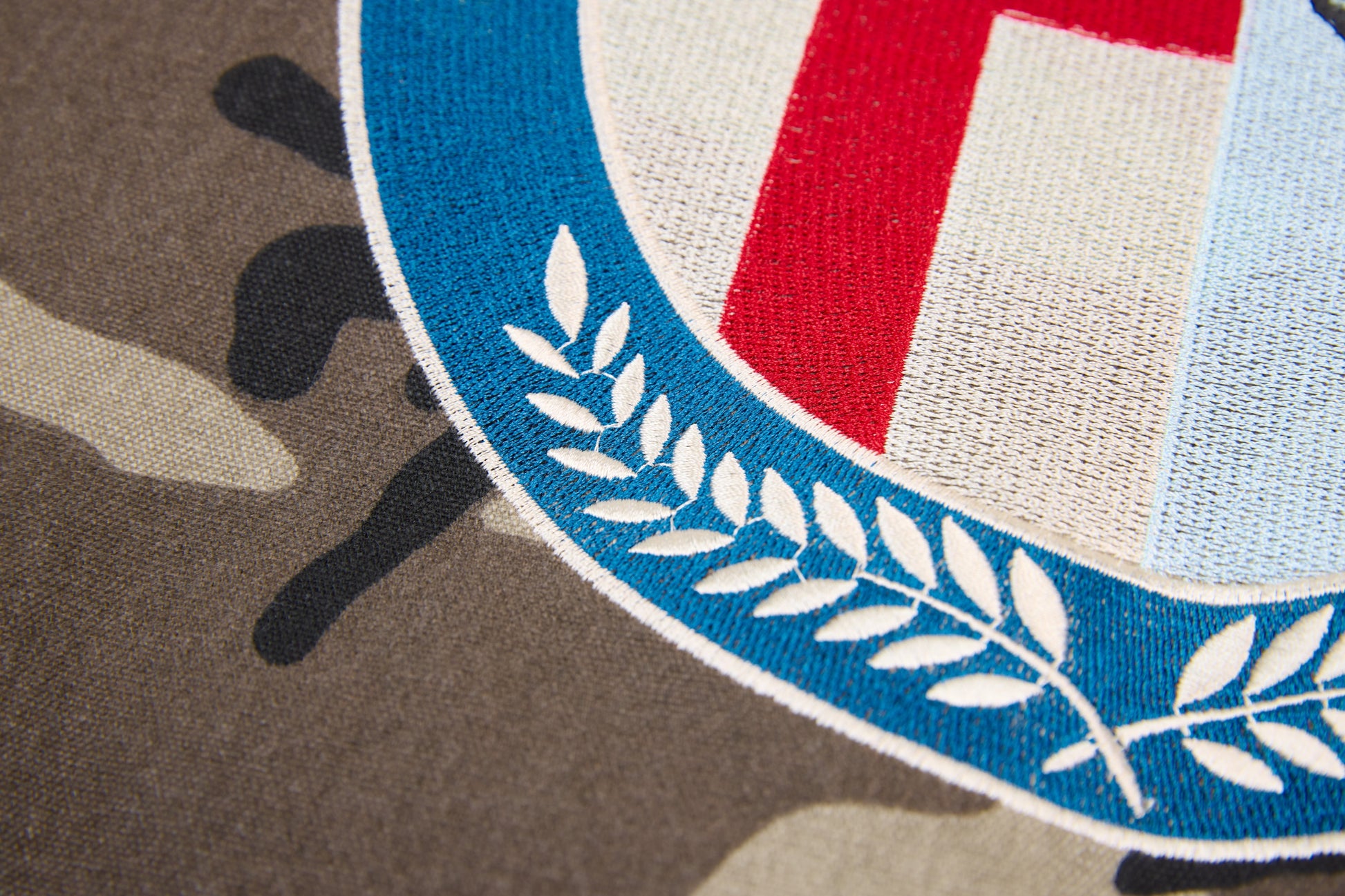 Clothing details: Chest embroidery, snap-button side pockets, metal front zipper