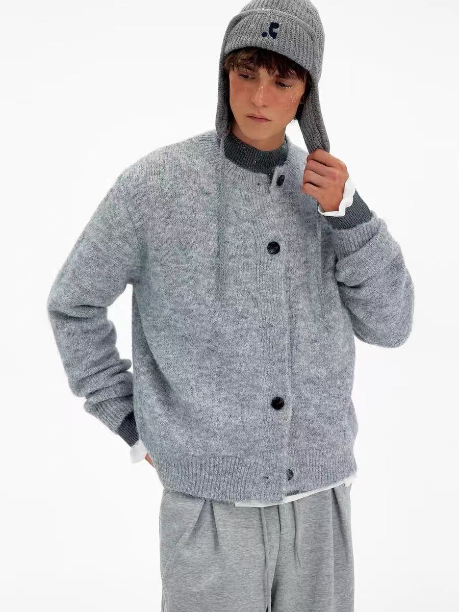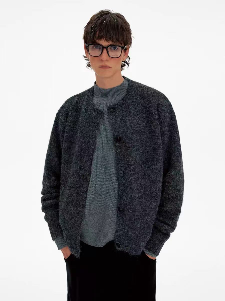 The Omirad Minimal Wool Blend Knit Cardigan delivers understated elegance with a streetwear sensibility. Designed with a clean crew-neck silhouette and oversized buttons, it’s a timeless layering piece that blends comfort and versatility. The premium wool-blend knit offers a soft yet structured hand feel, ideal for both daily styling and transitional weather. Available in heather grey and charcoal to match any minimal fit.