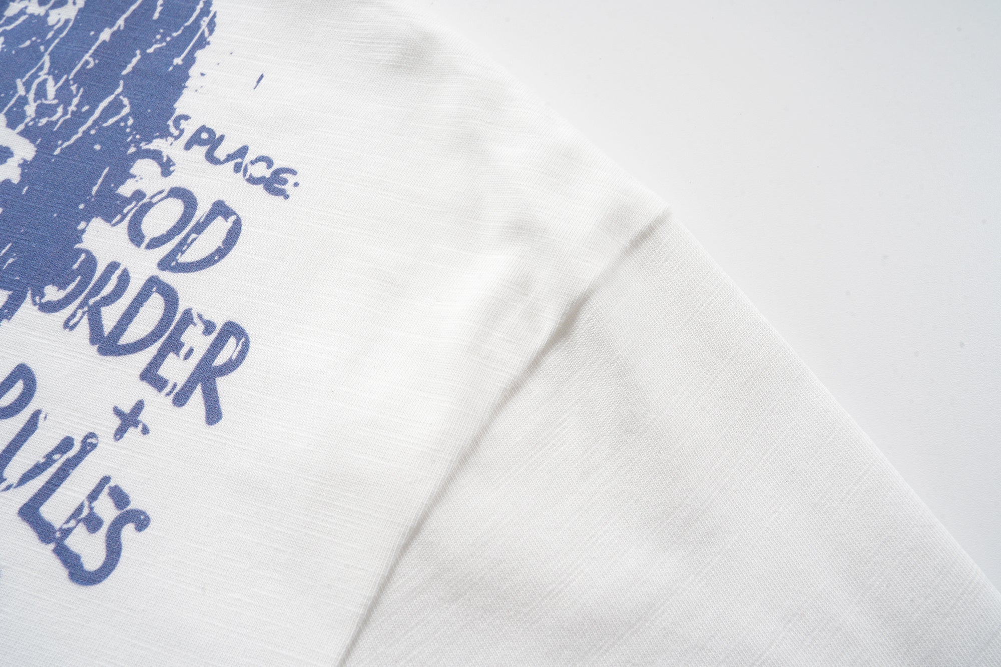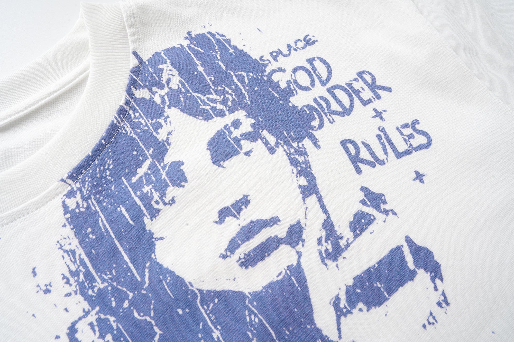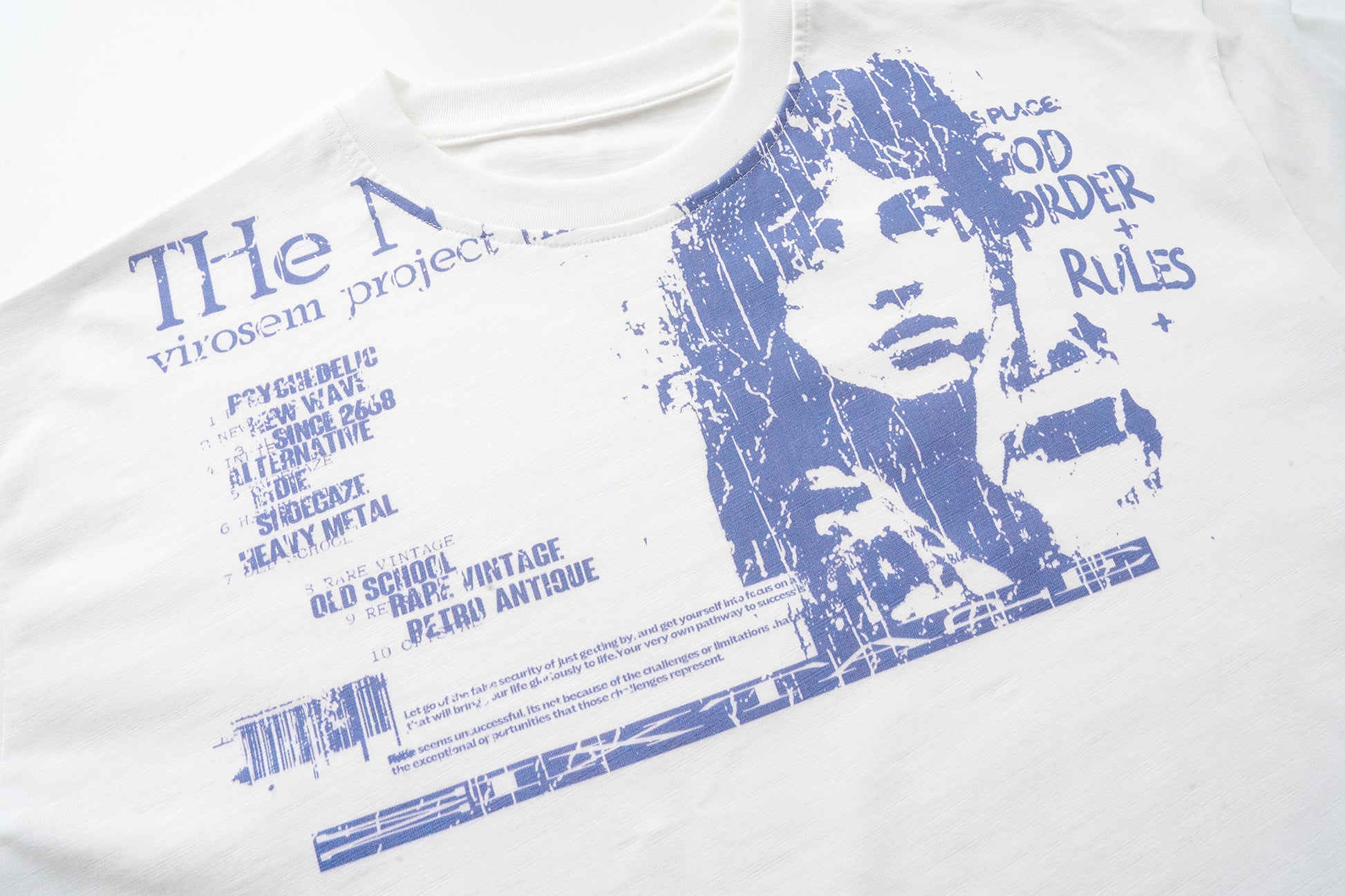 The Omirad “Neon Party” Graphic Long Sleeve Tee features layered vintage-style typography and distressed portrait graphics that channel an archive-inspired street aesthetic. Set on a clean off-white base, the design blends editorial text elements with worn-in visual textures for a subtle yet expressive statement. Designed for effortless layering or standalone wear, this tee delivers everyday comfort with elevated artistic edge.