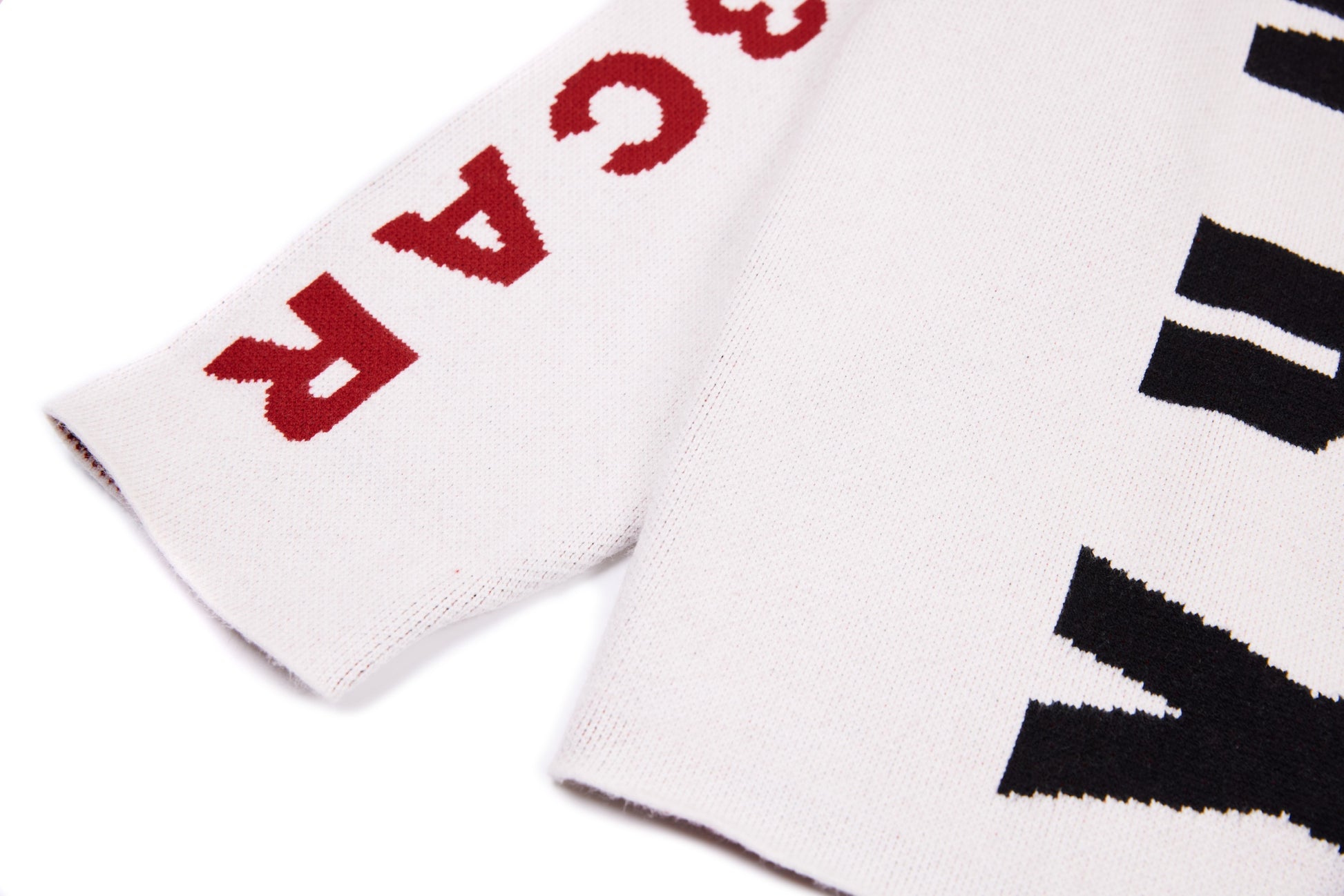 The Omirad NRX Split Racing Knit Jacket brings pure motorsport aggression straight into the streets — bold color blocking, oversized lettering, and sponsor-style hits that look ripped right off a race suit. The split red-and-white body sets the tone, while the massive NRX front graphic and GT3CAR / PITMAN sleeve text push the energy into overdrive. A sharp black collar and embroidered race patch finish it with that authentic pit-lane attitude. Made from heavyweight 100% cotton knit, it feels premium, structured, and built to stand out at full speed.