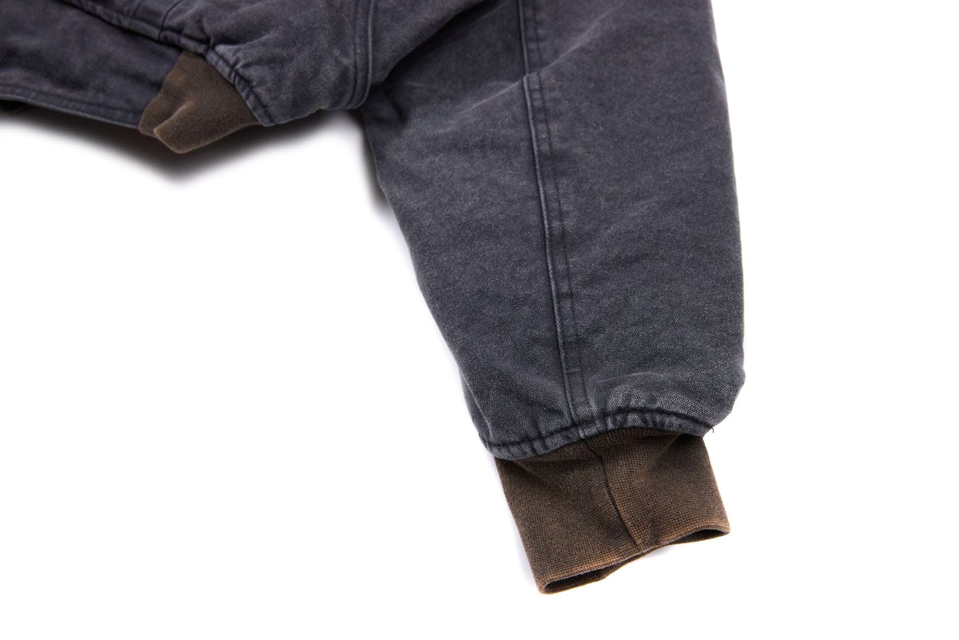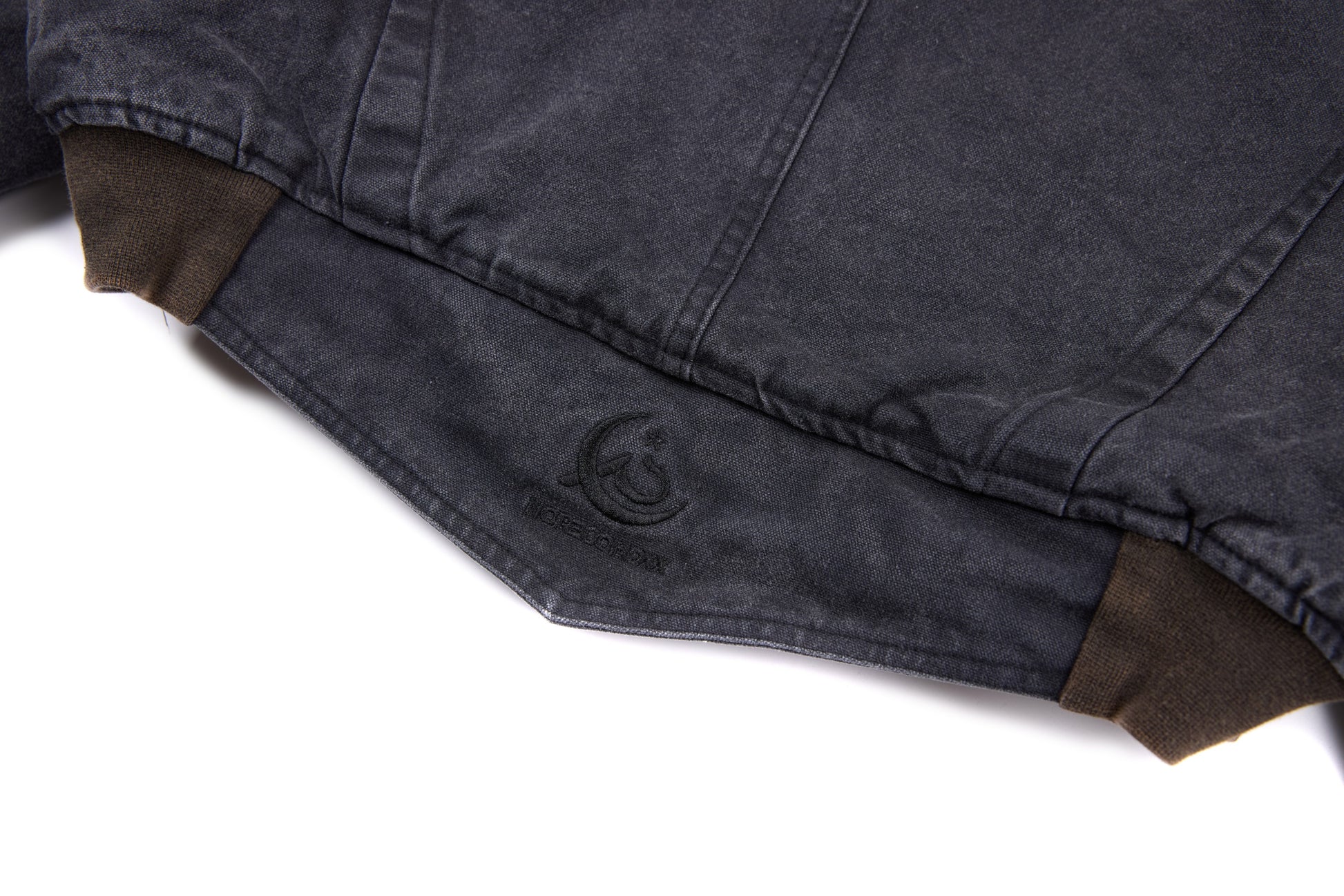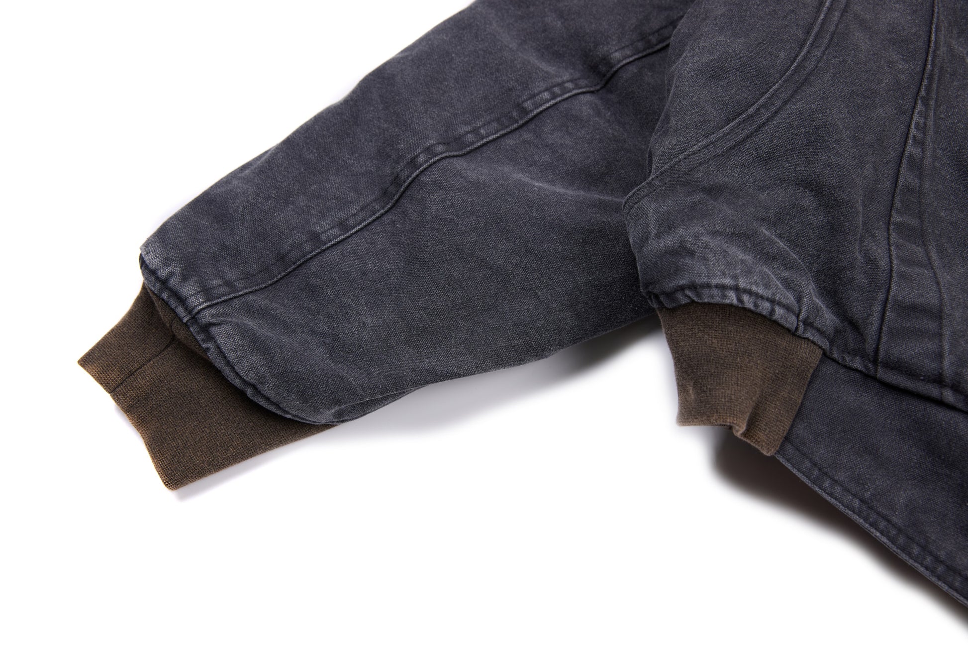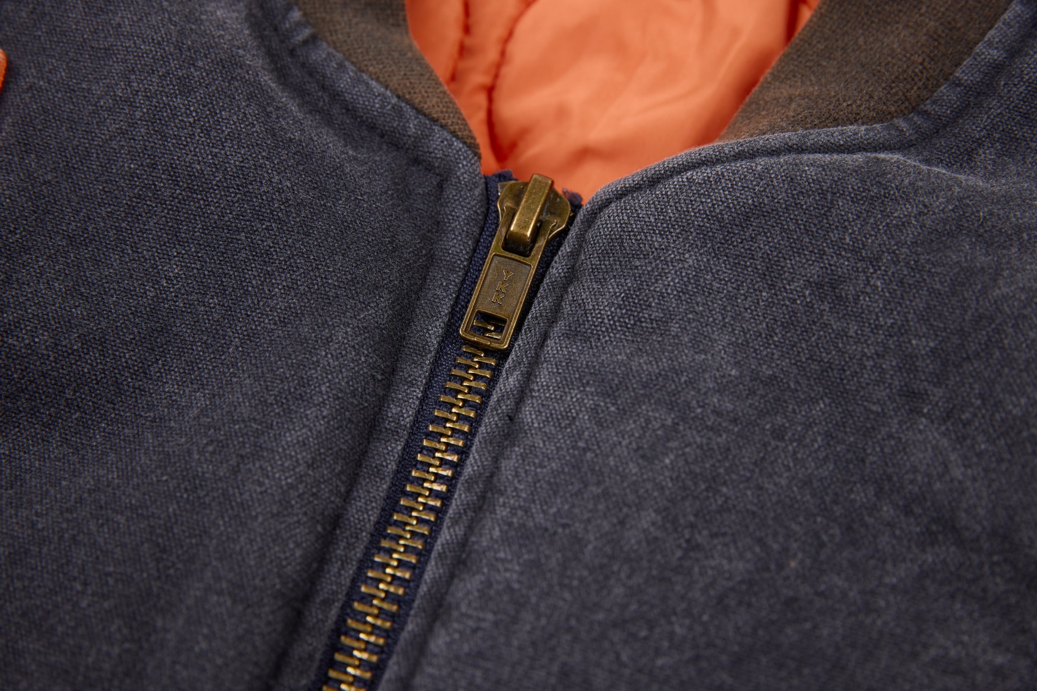 Clothing Details: Raw-edge patchwork, contrast color panels, cropped bomber fit, ribbed cuffs/hem, metal zip closure
