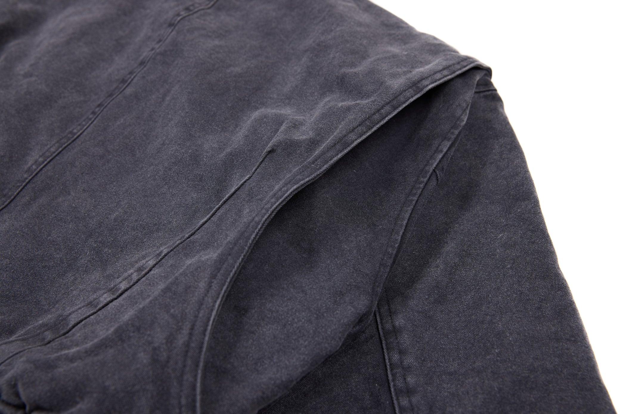A full-length metal zipper completes the look, making this jacket a statement layering piece for any season.