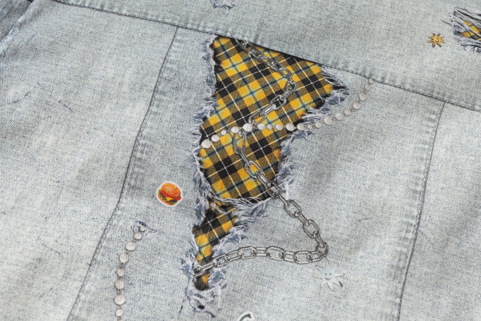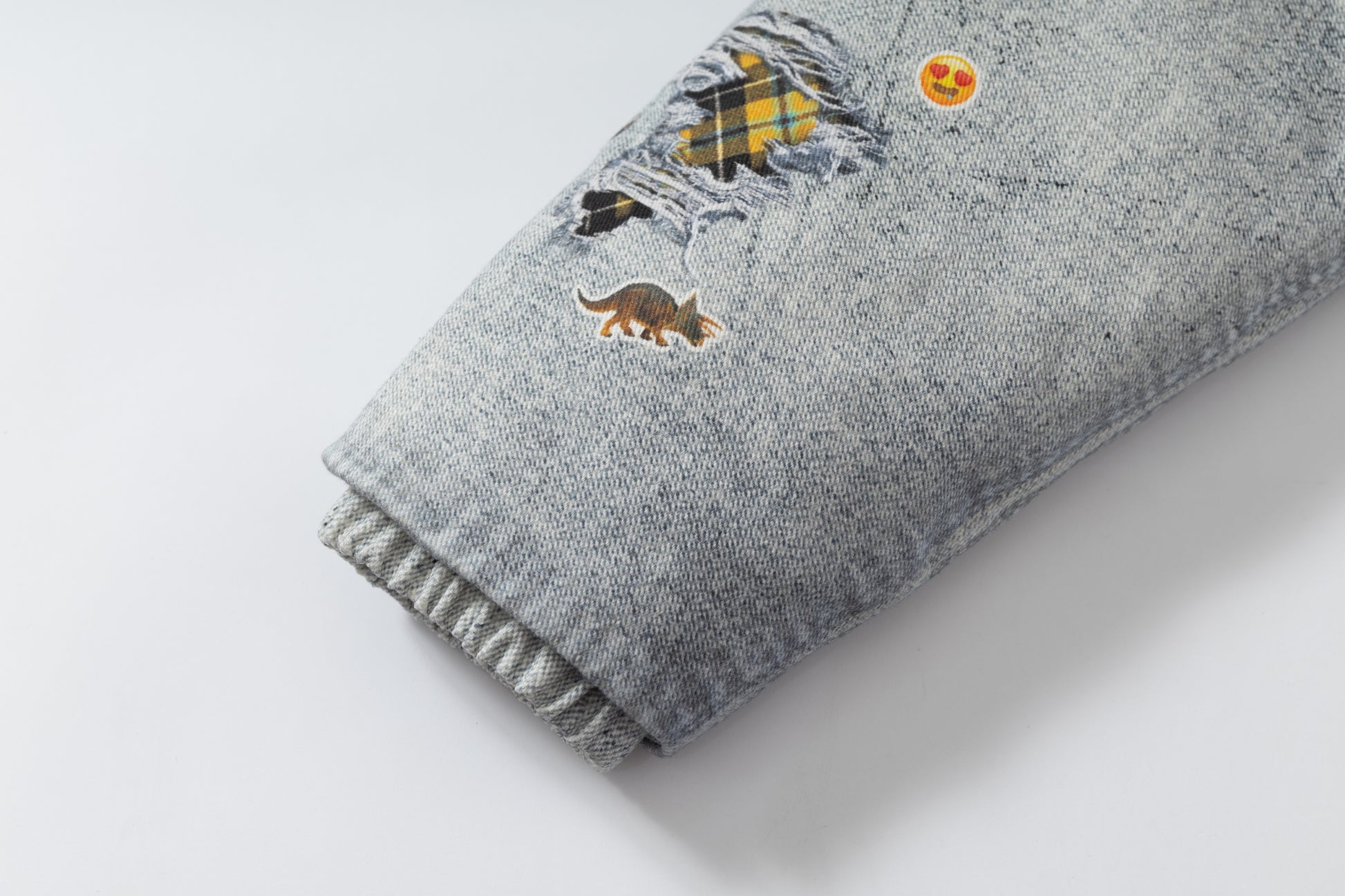 The Omirad Patchwork Distressed Denim Puffer Jacket fuses retro denim texture with modern street attitude. Featuring contrast plaid patchwork, playful embroidered details, and subtle distressing, this piece transforms classic blue denim into a statement winter fit. The padded interior keeps it warm and structured, while the relaxed silhouette adds that effortless Omirad edge.