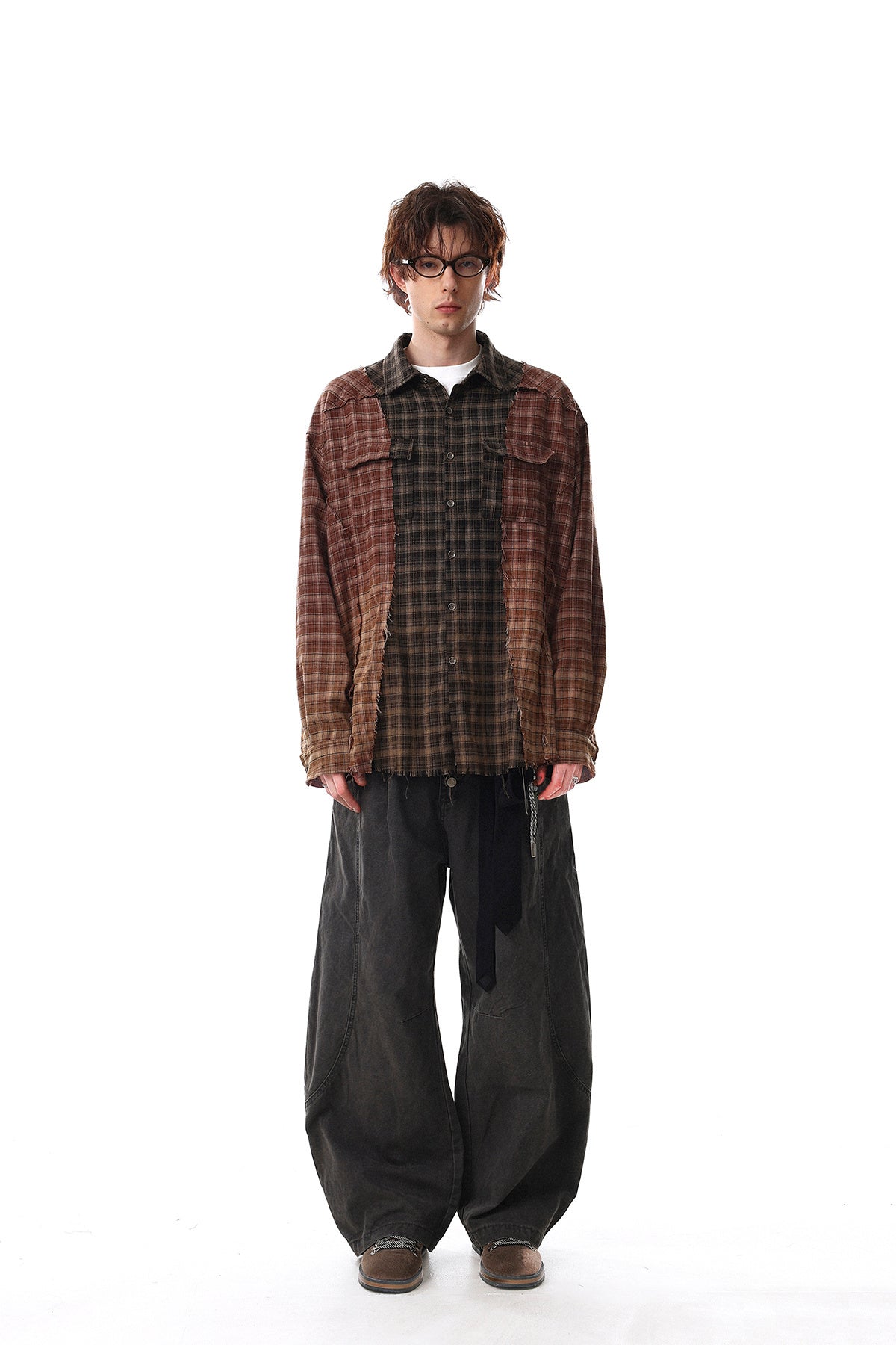 The Omirad Patchwork Distressed Plaid Button-Up Shirt features a rugged multi-panel plaid construction that brings raw street attitude to a classic silhouette. Designed with contrasting check patterns and intentional distressed edges, this piece delivers a worn-in, rebellious aesthetic rooted in underground and workwear influences.