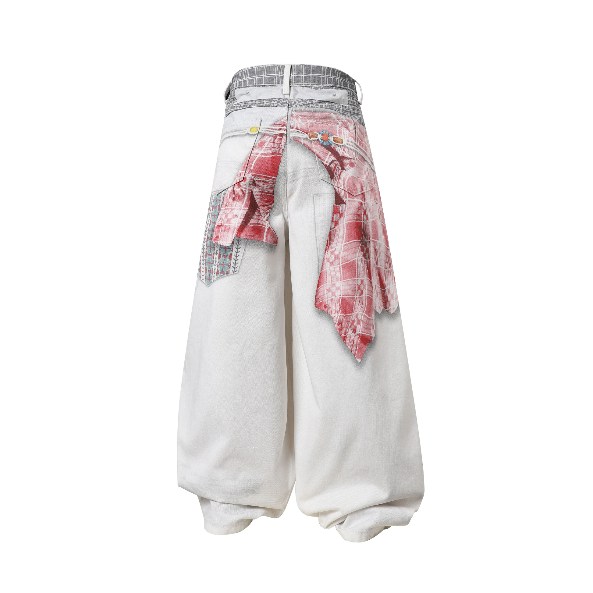 The Omirad Patchwork Double-Waist Denim Pants push the limits of streetwear design with a layered double-waist structure and plaid shirt patchwork detail. The draped flannel accent around the waist brings a raw, deconstructed vibe, while the wide curved-leg silhouette delivers Omirad’s signature flow. Built for those who blur the line between art and rebellion.