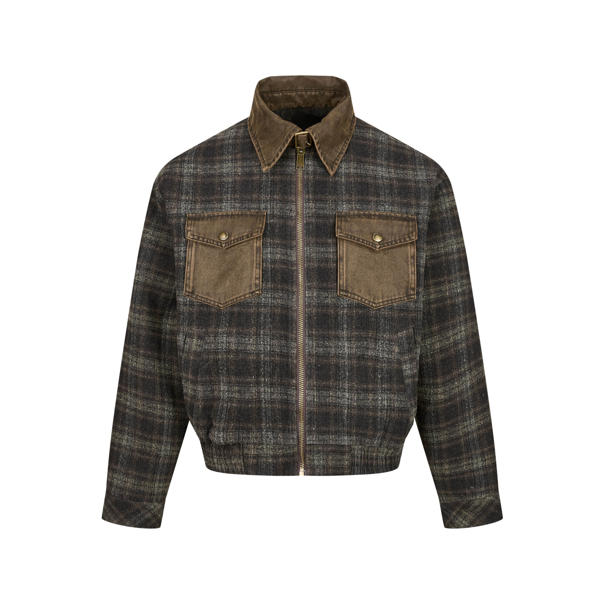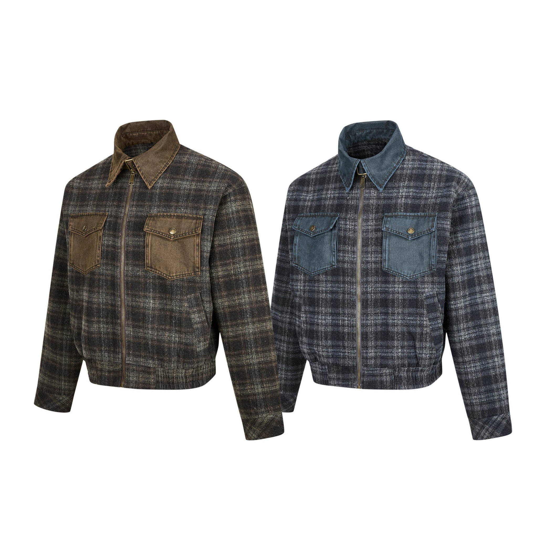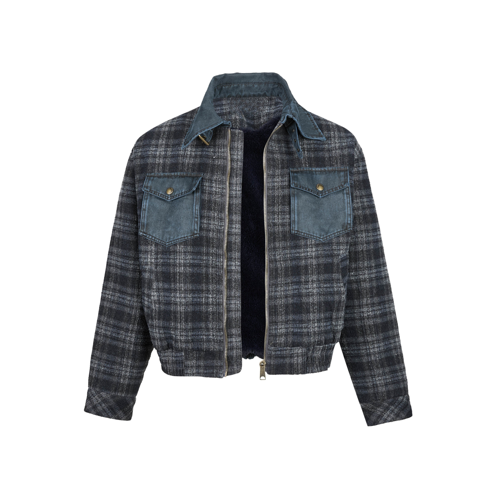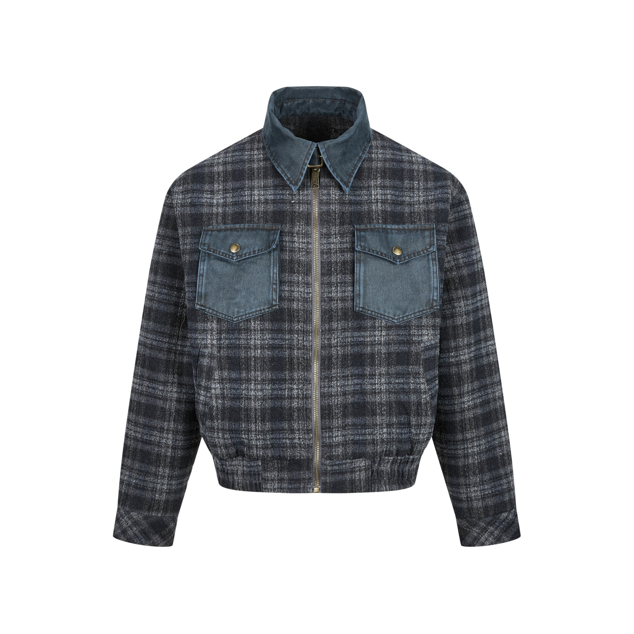 The Omirad Plaid Denim-Pocket Zip Jacket features a vintage plaid body paired with contrast denim chest pockets, bringing a bold workwear-meets-street aesthetic to a cropped silhouette. Designed for everyday versatility, this jacket blends classic patterning with modern structure for a standout yet wearable urban look.