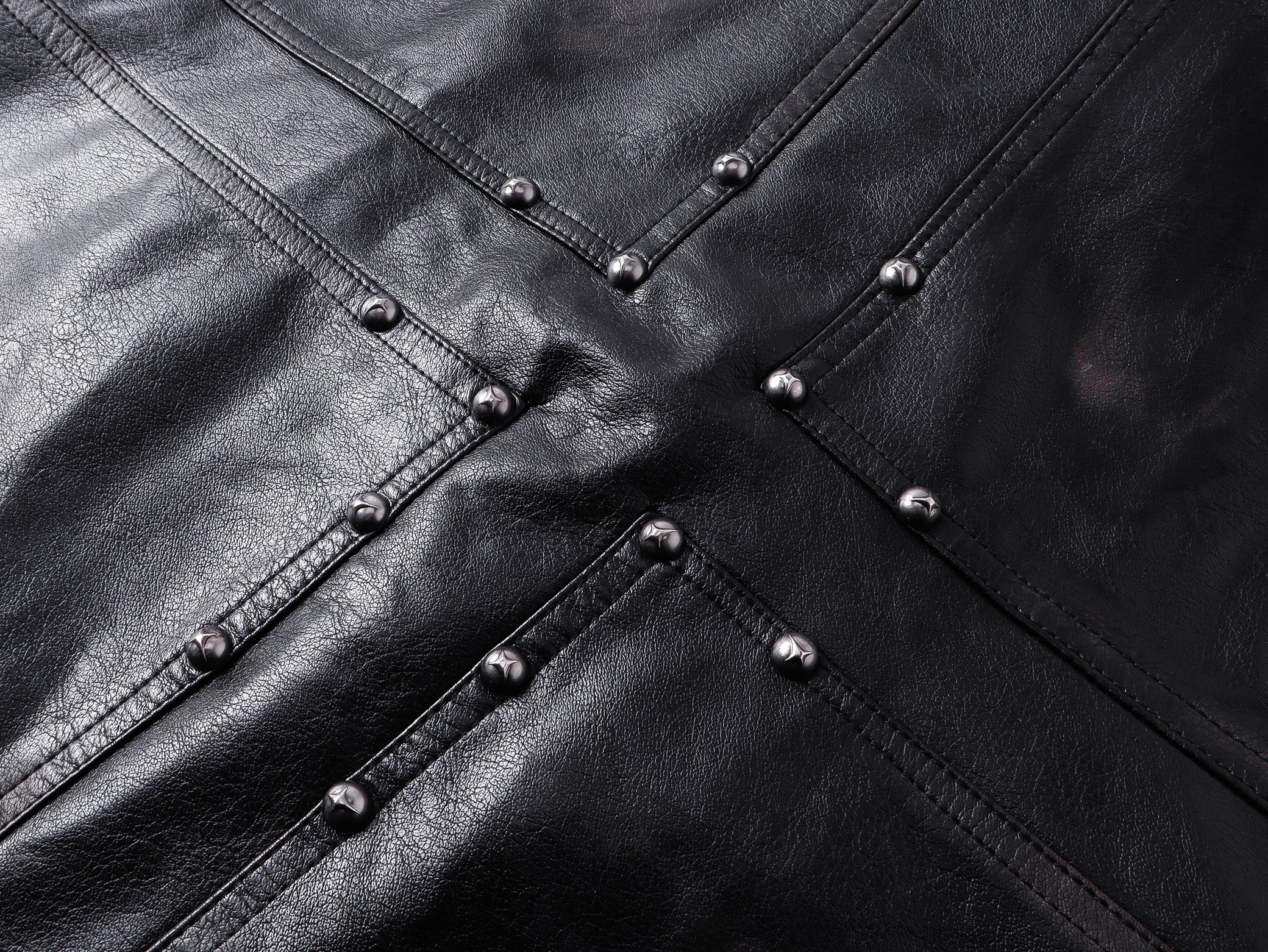 Clothing details: Stand collar, full-zip closure, dual chest zip pockets, side pockets, zip cuffs, panel stitching, rivet detailing on back.