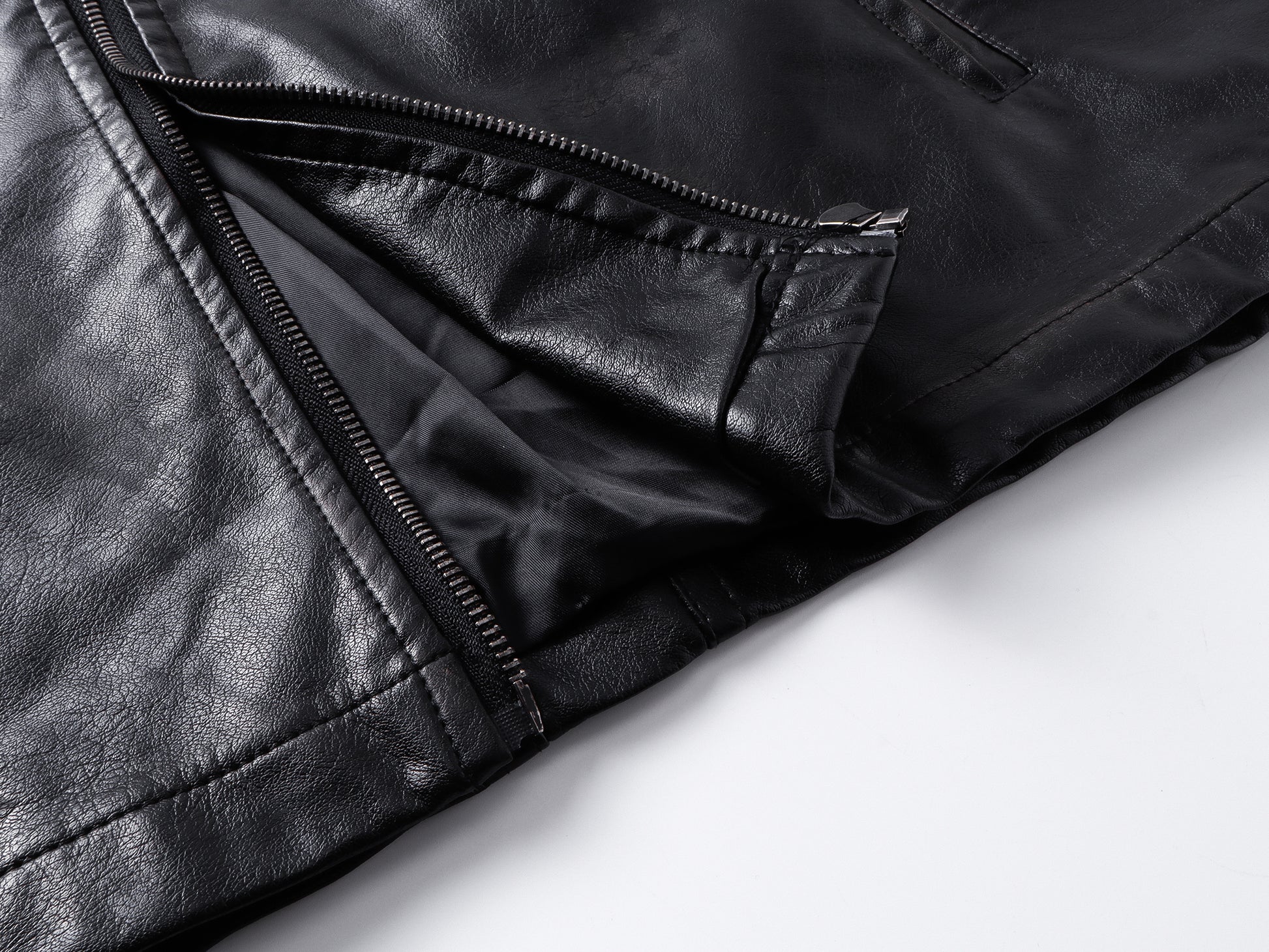 Omirad PU Leather Zip Jacket features a sleek faux-leather finish with a clean stand collar and sharp zip hardware for an instant street-ready look. Designed to level up your everyday fits, it blends a structured silhouette with functional pocketing and cuff zippers for extra edge.