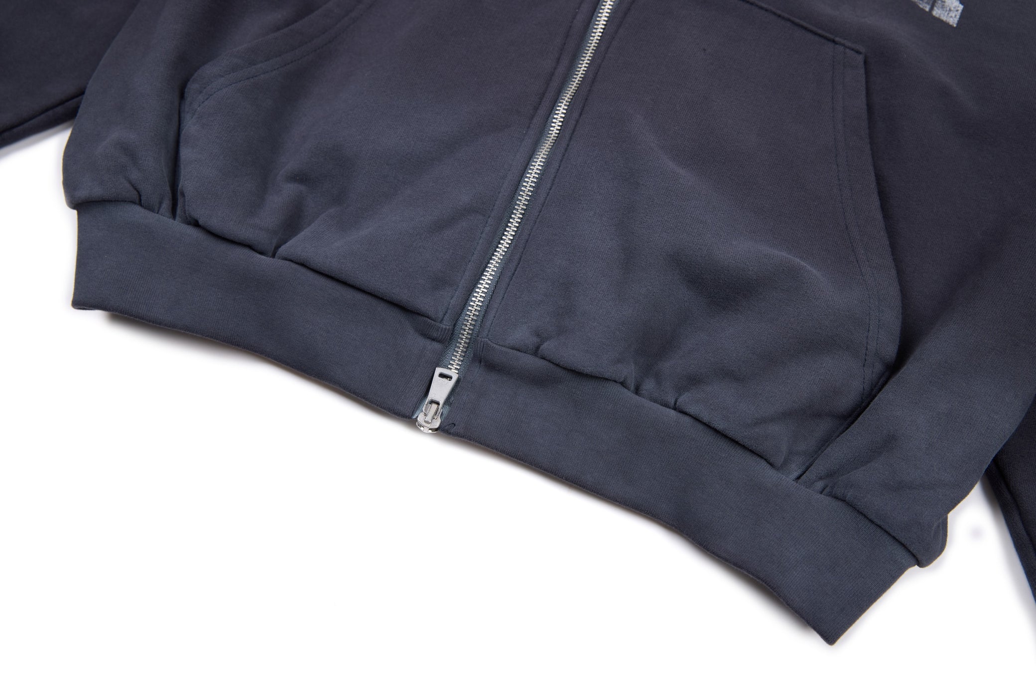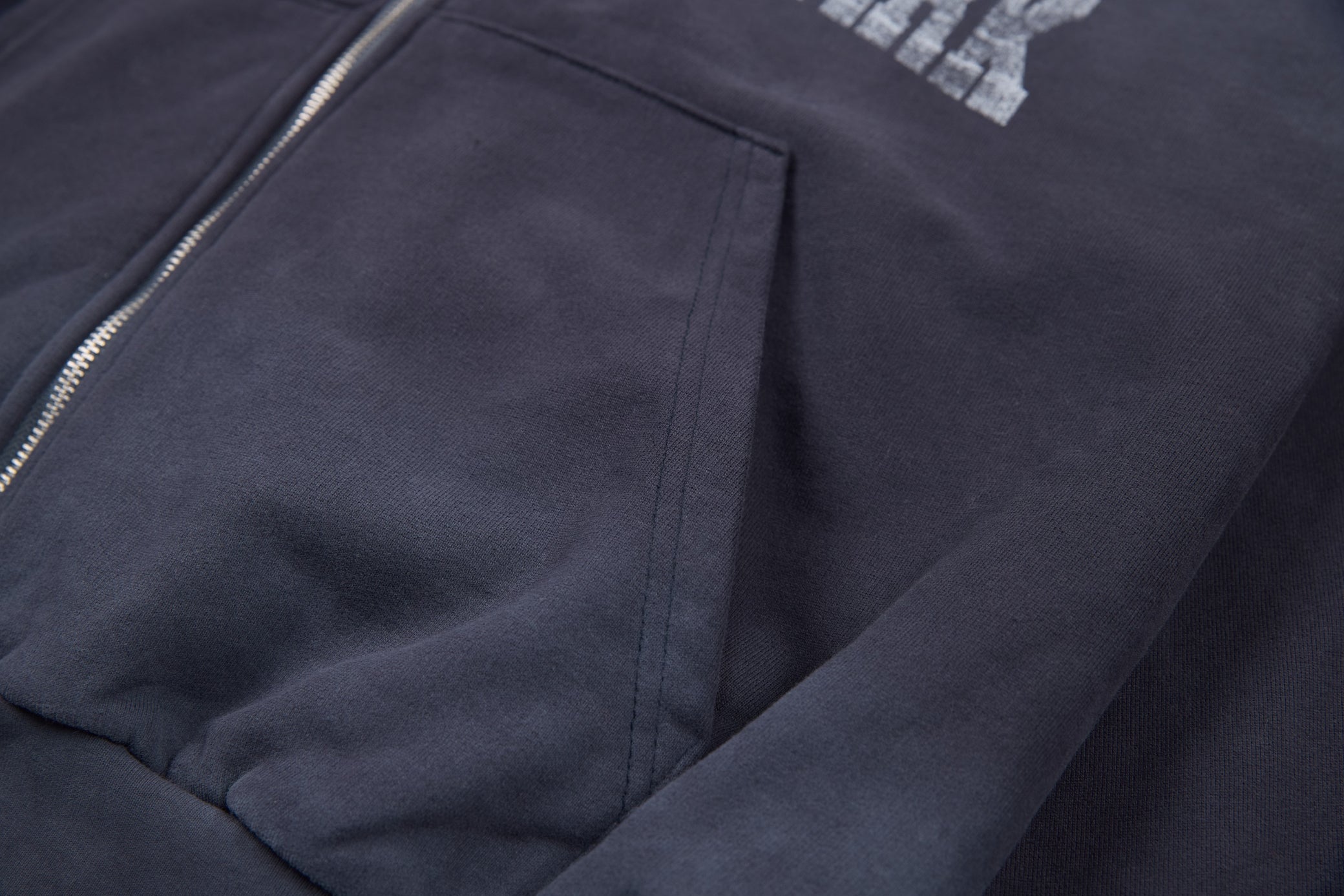 The Omirad “Questionmark” Vintage Patch Zip Hoodie combines a worn-in graphic look with a comfortable, everyday silhouette. Crafted from 100% cotton, the hoodie features a washed charcoal finish for a naturally faded effect.