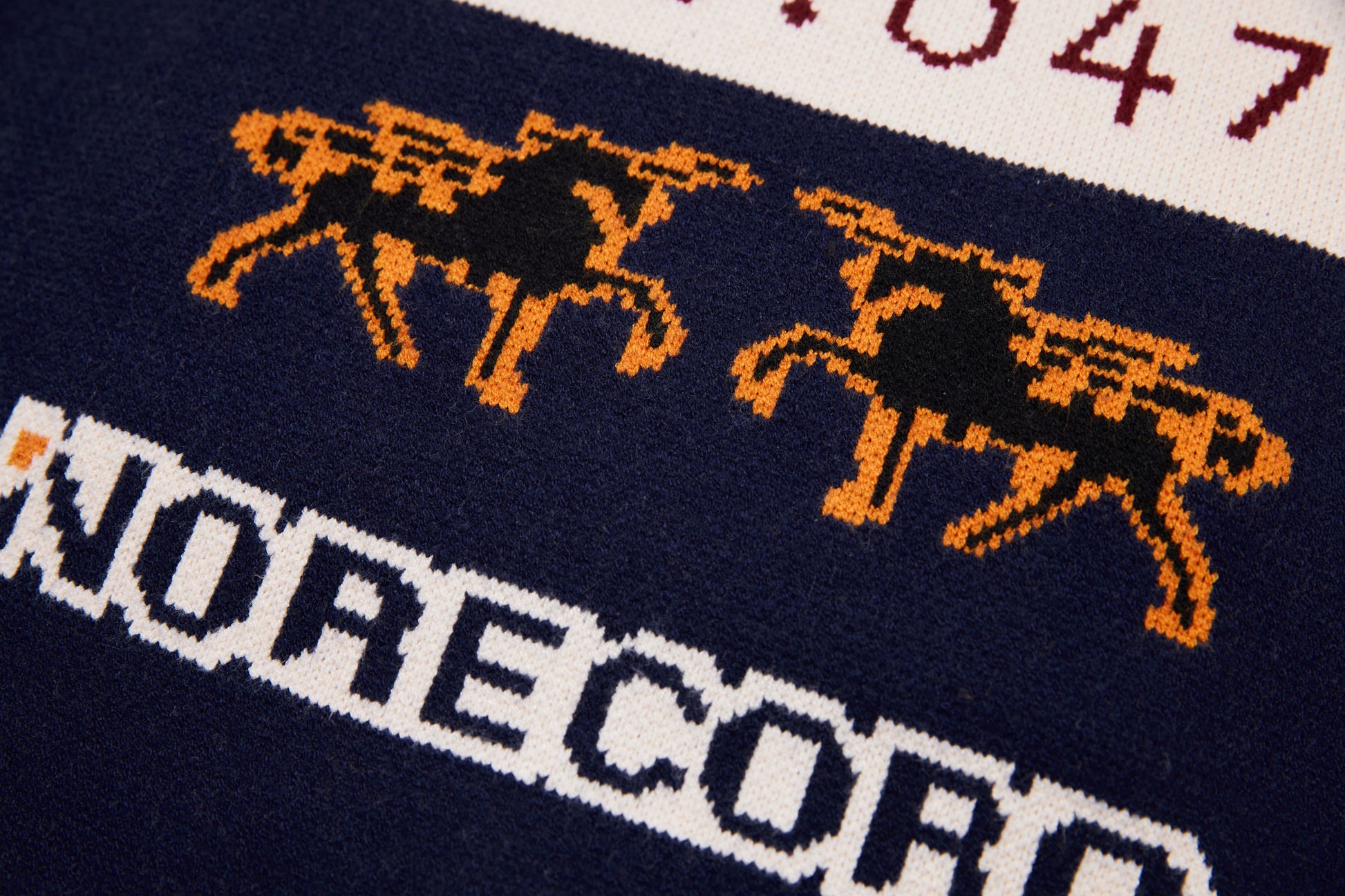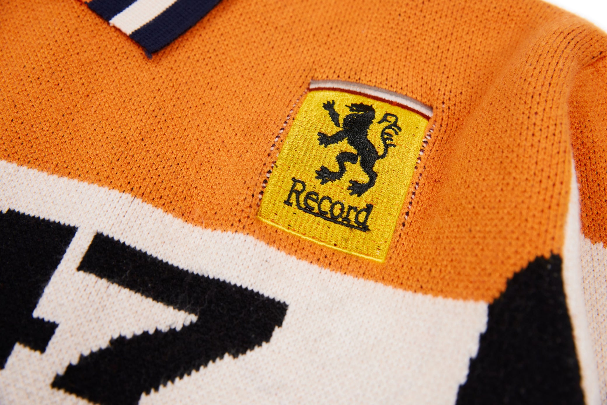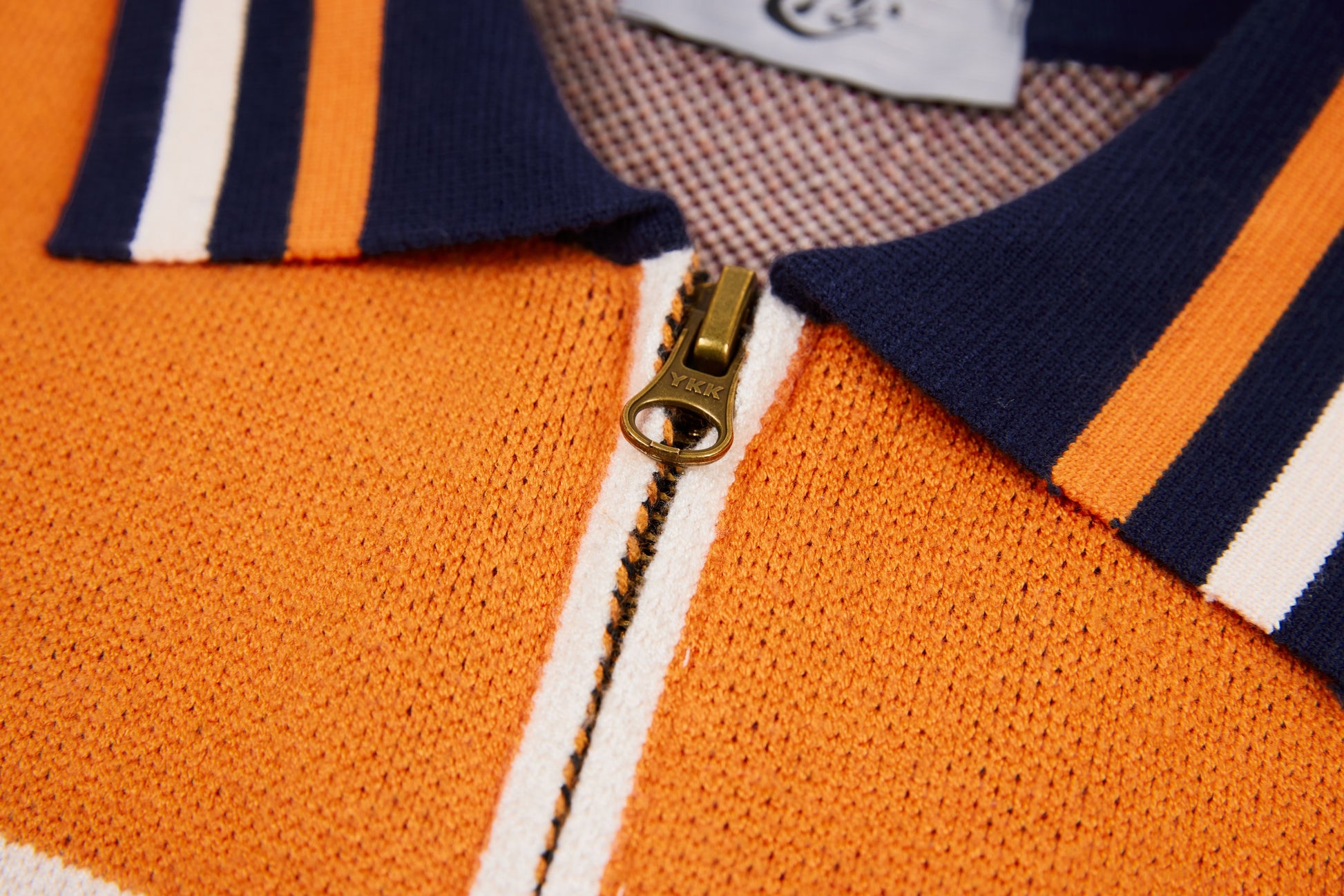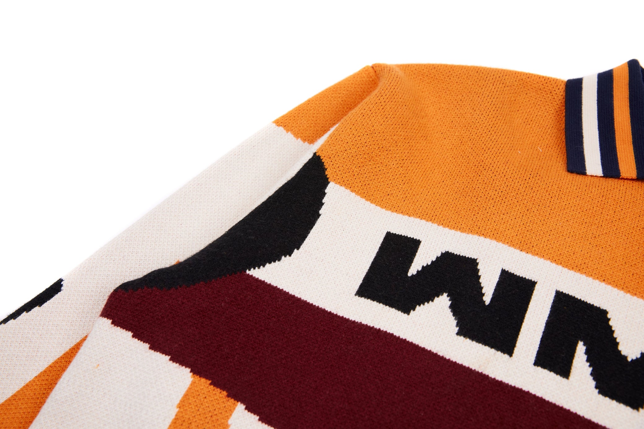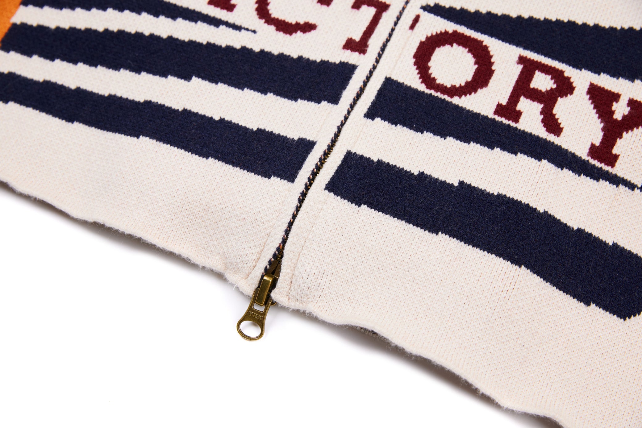 Clothing details: Knitted racing graphics, varsity collar, full zip closure, woven chest patch