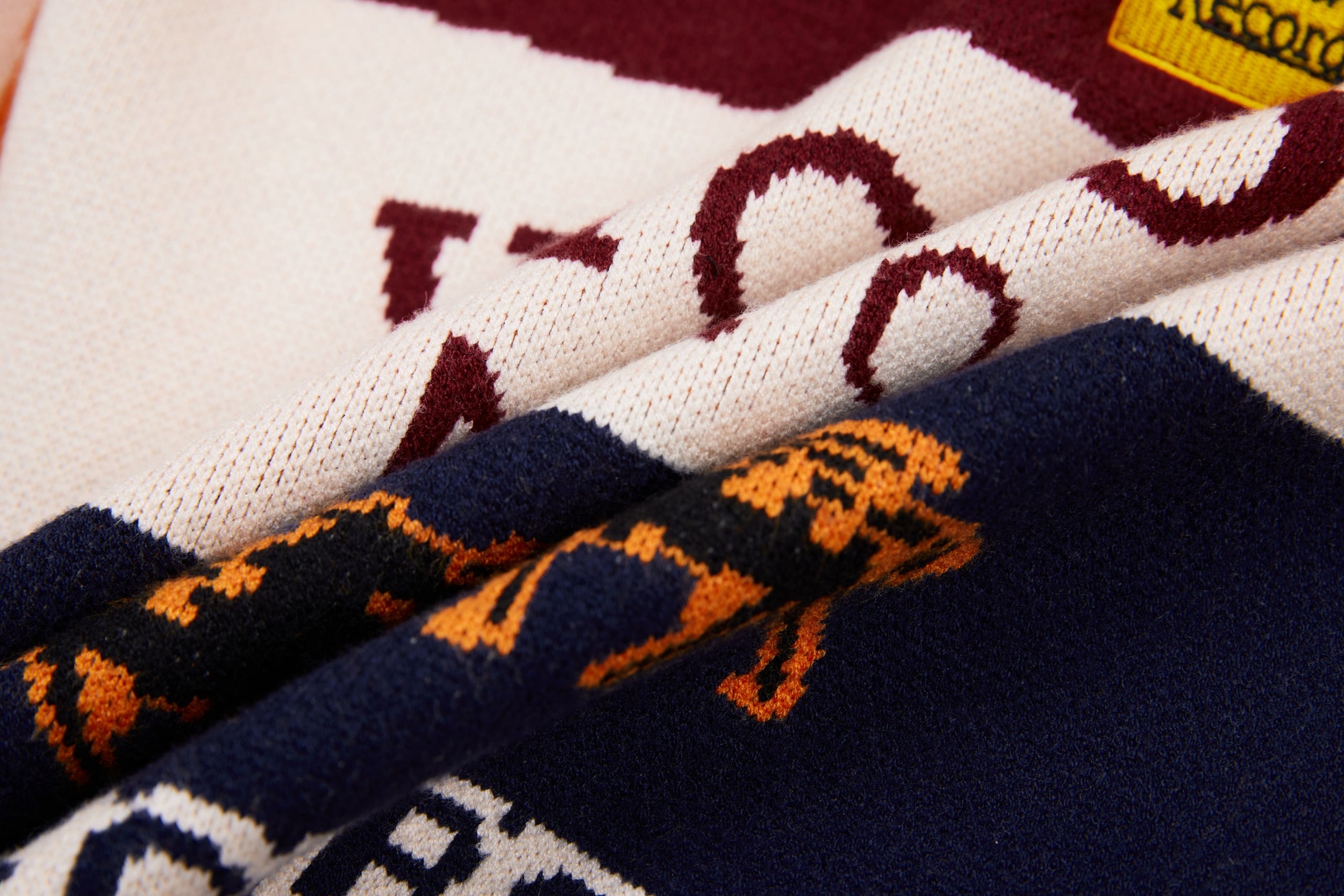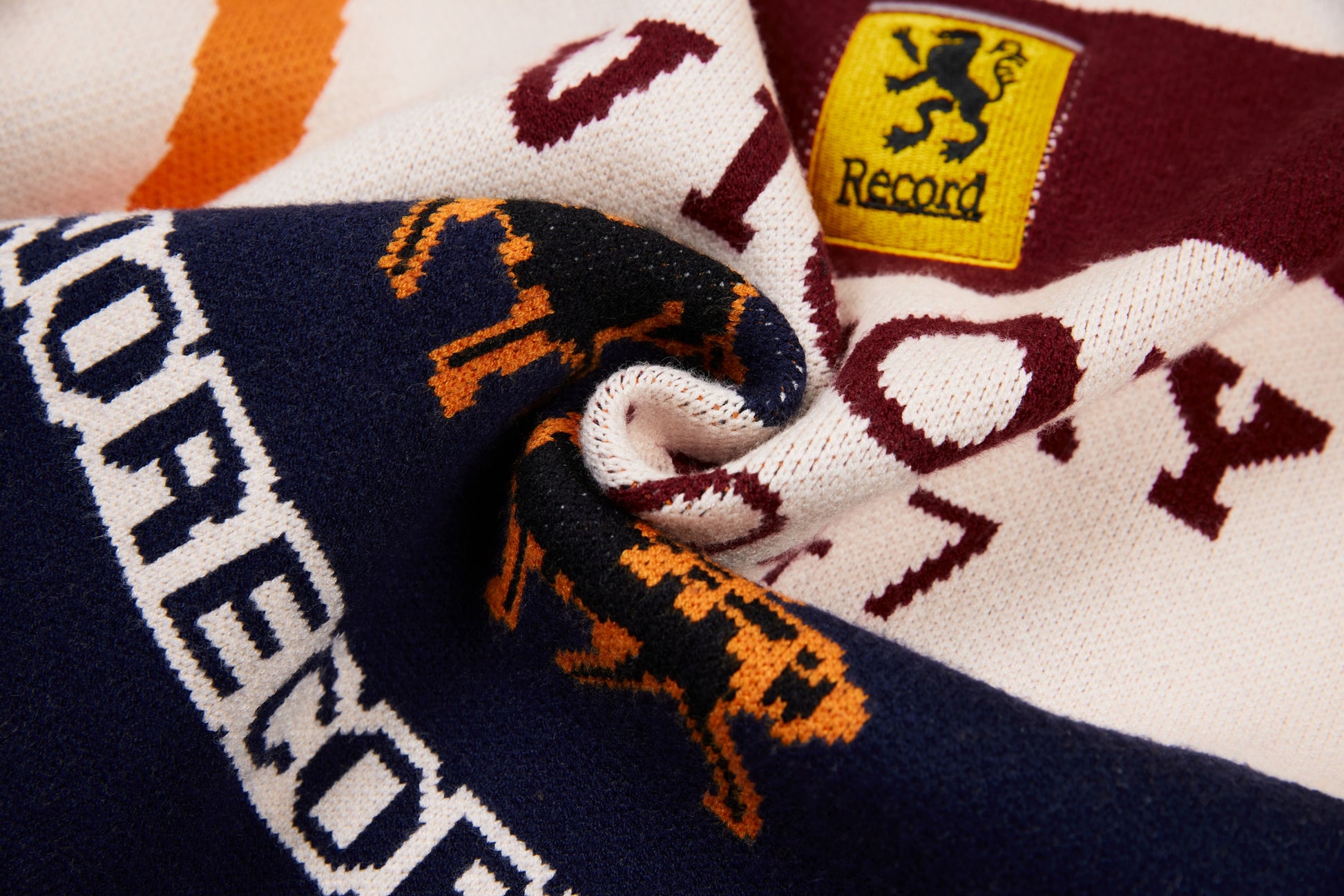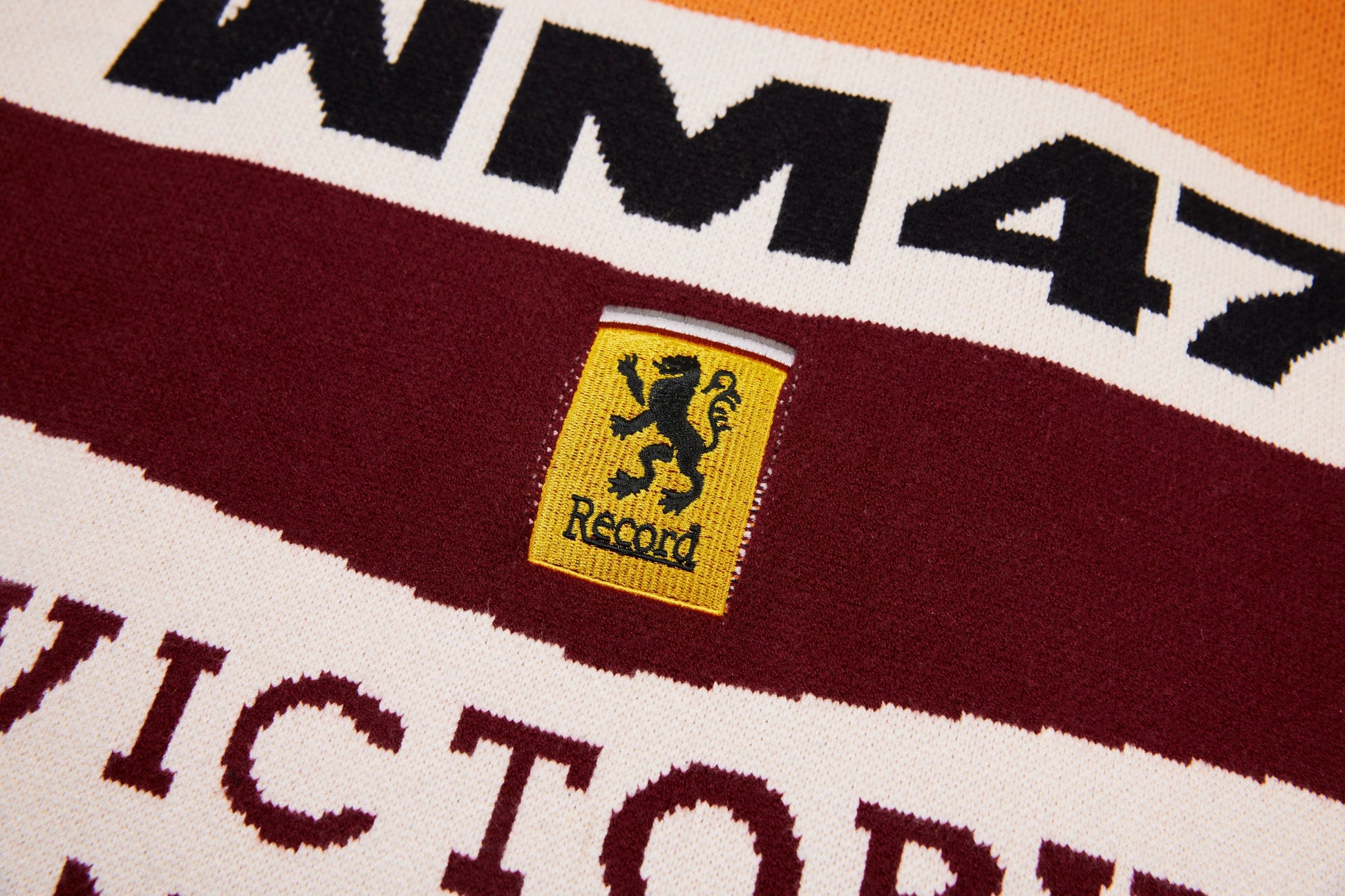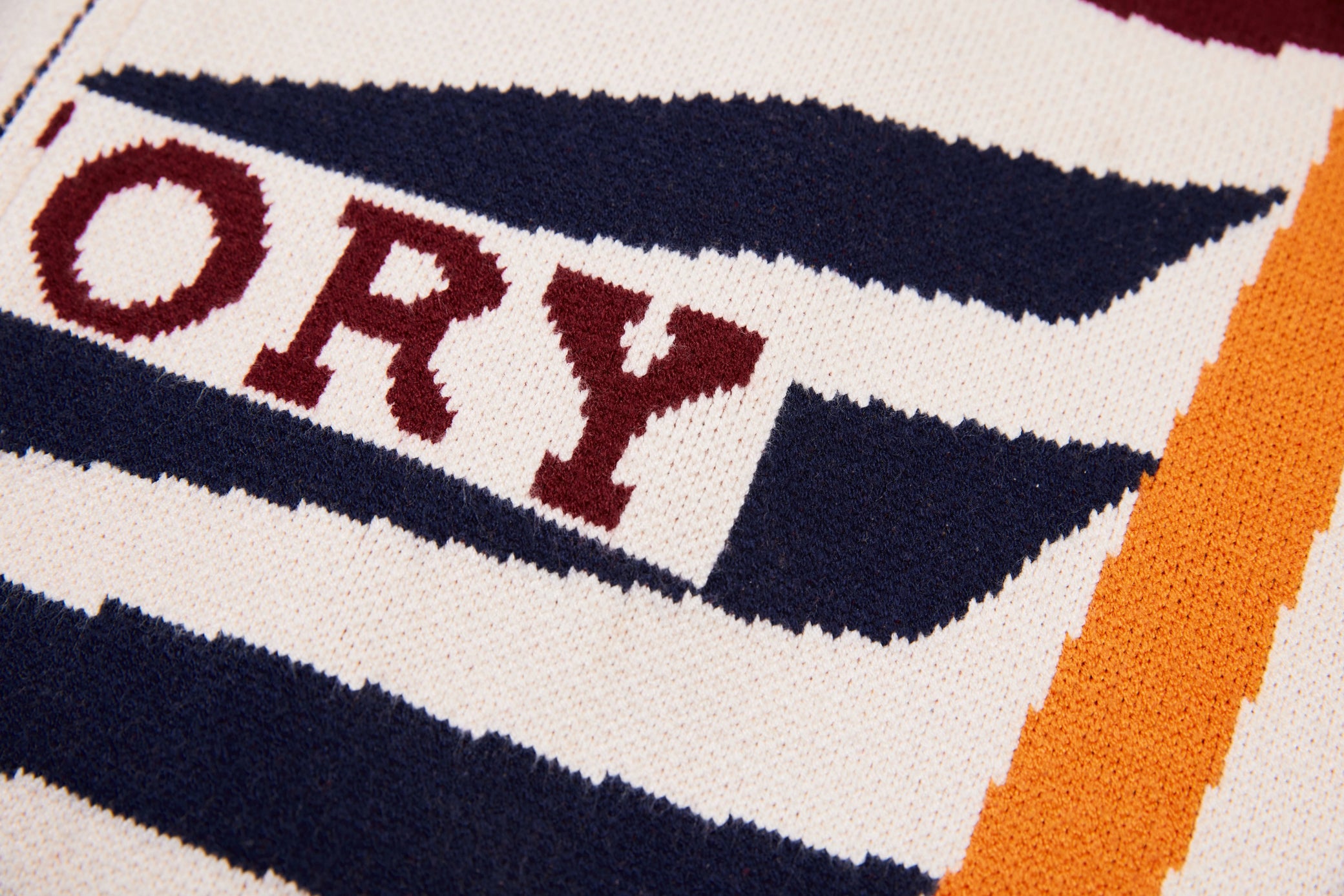 Clothing details: Knitted racing graphics, varsity collar, full zip closure, woven chest patch