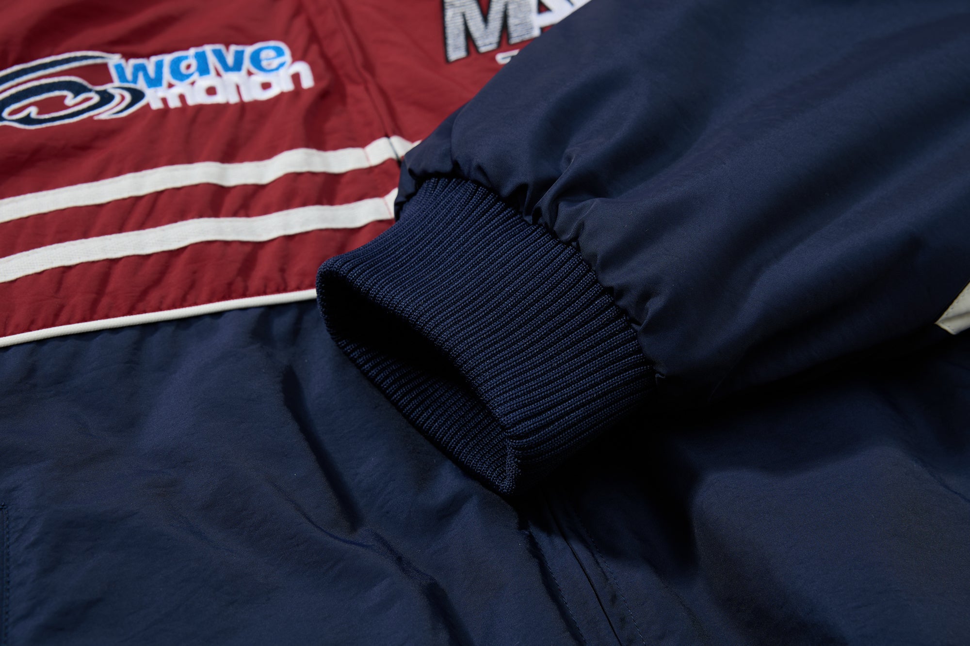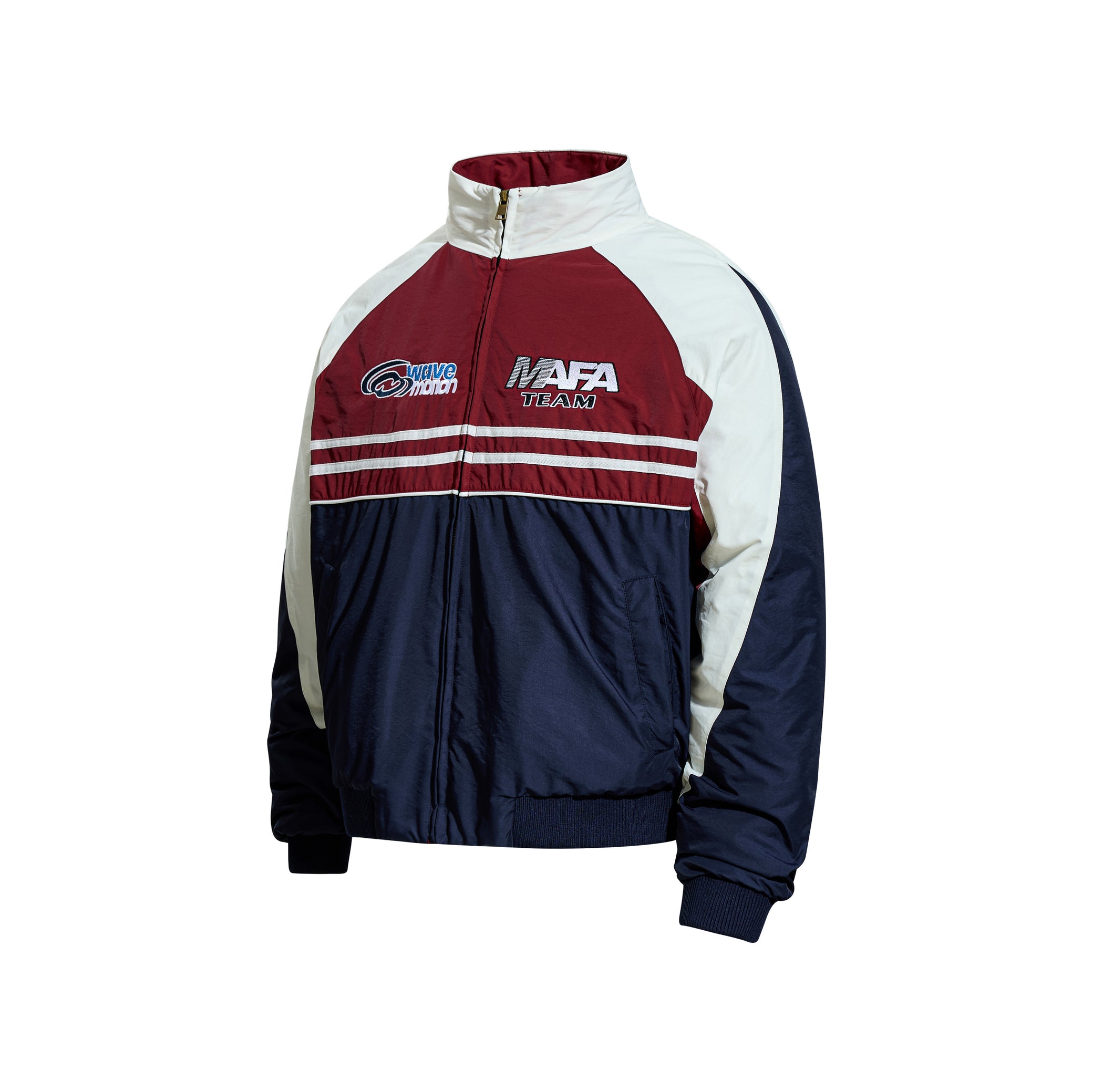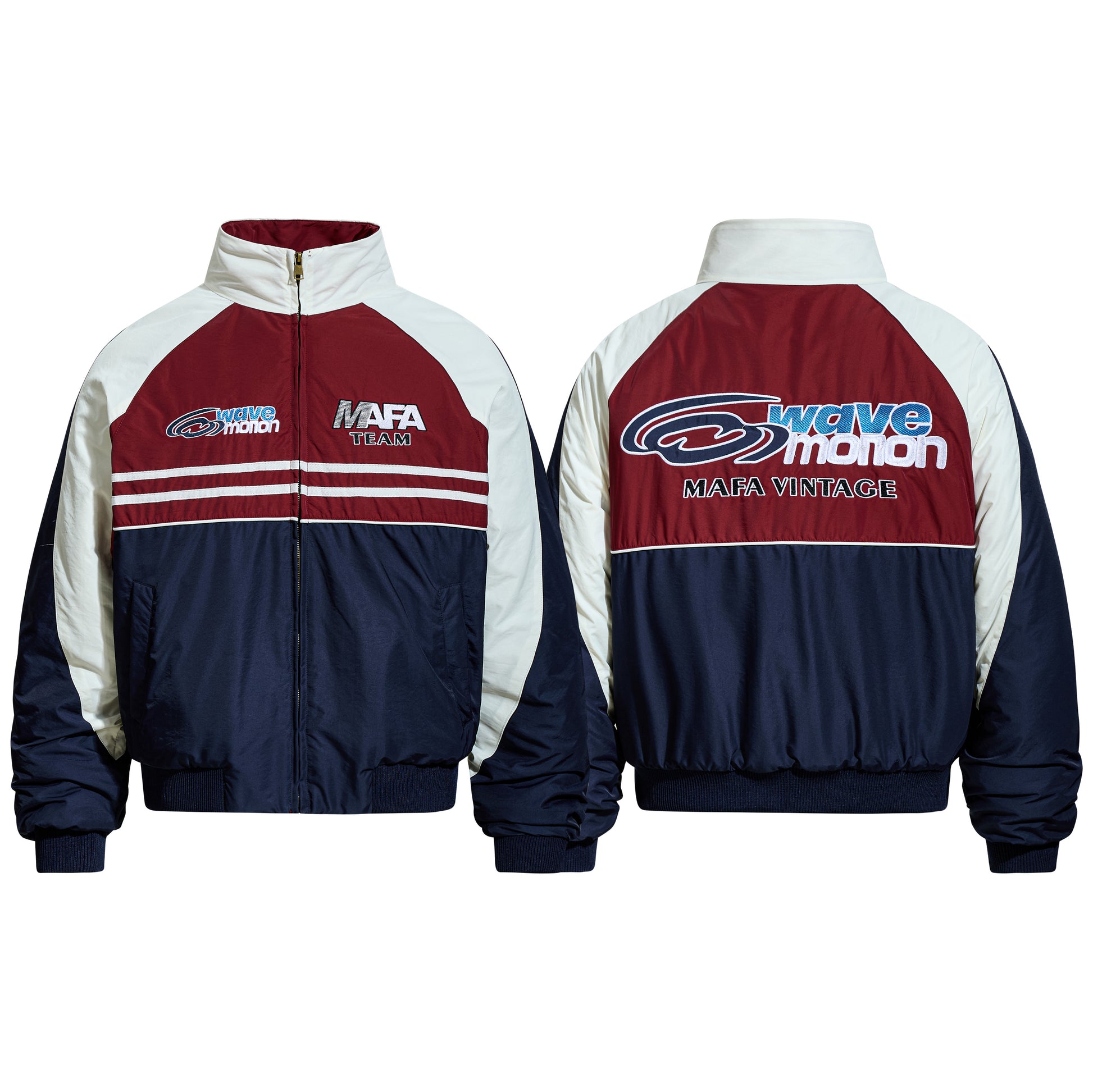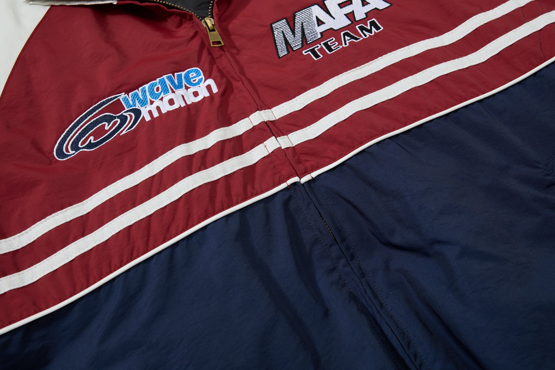 The Omirad Retro Racing Colorblock Jacket channels early 2000s motorsport aesthetics through bold color blocking and embroidered detailing. Made from a 55% nylon, 45% polyester blend, it delivers a lightweight yet durable shell that resists wind while maintaining comfort. The high stand collar, elastic cuffs, and hemline enhance its structured silhouette. The front features racing-inspired logo embroidery, complemented by bold MAFA TEAM and Wave Motion branding across the back — creating a nostalgic, high-energy streetwear statement.