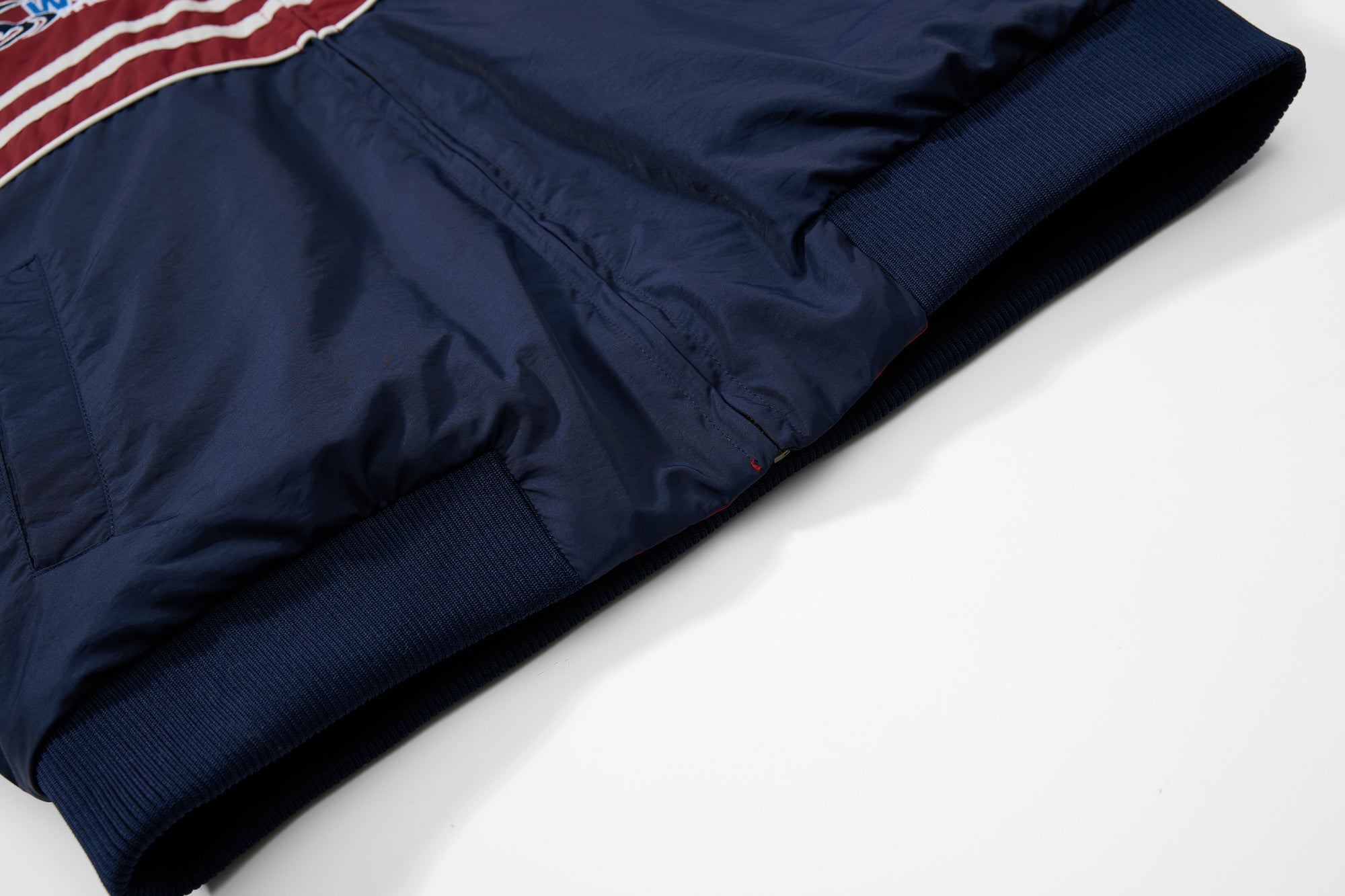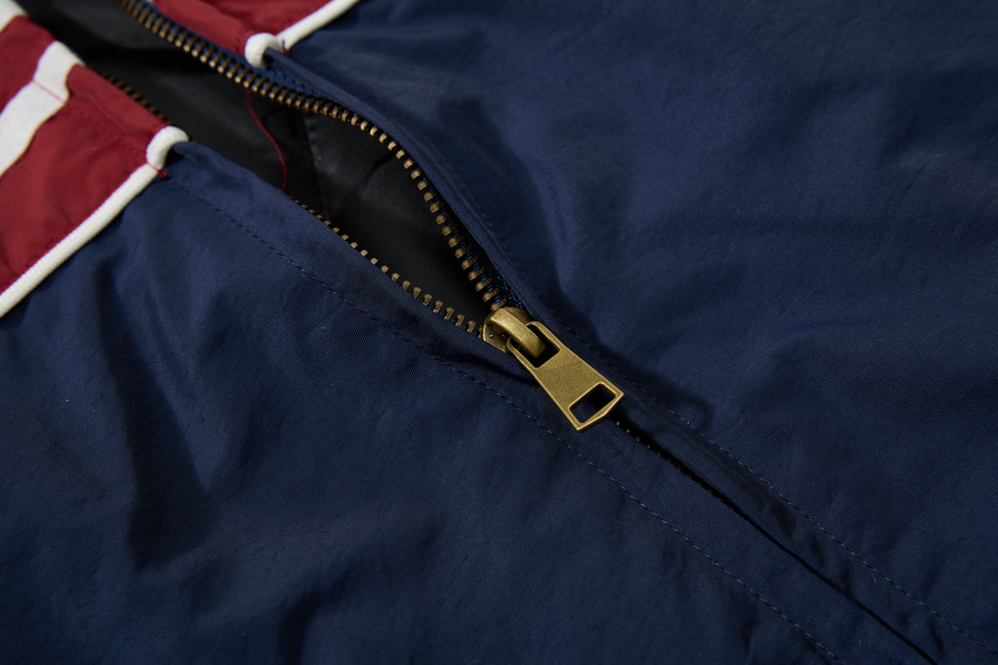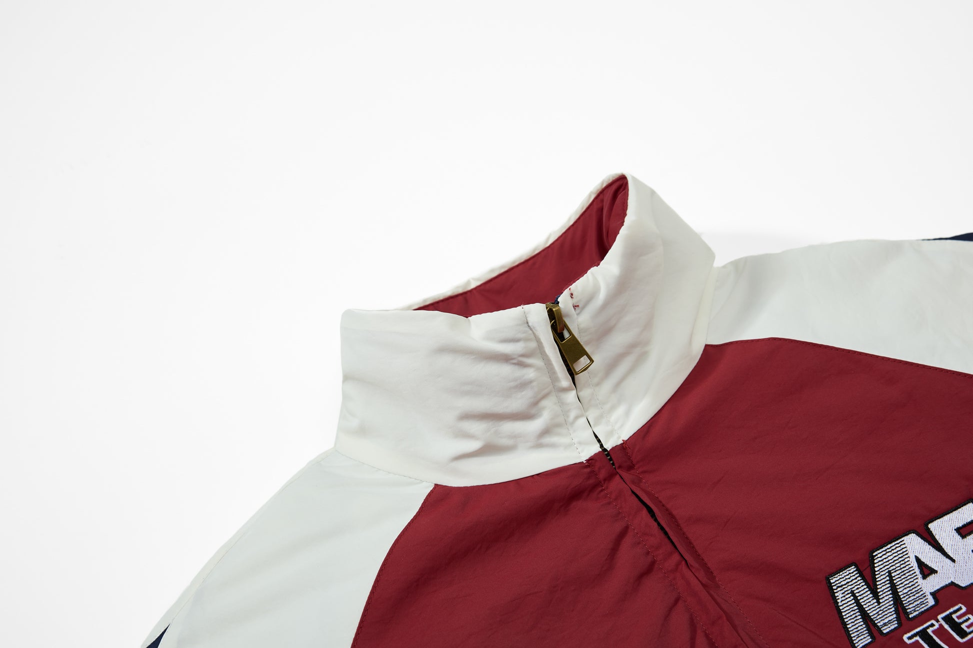 Clothing Details: Colorblock racing design, front and back embroidery, full-zip closure, stand collar, elastic cuffs and hem, relaxed fit