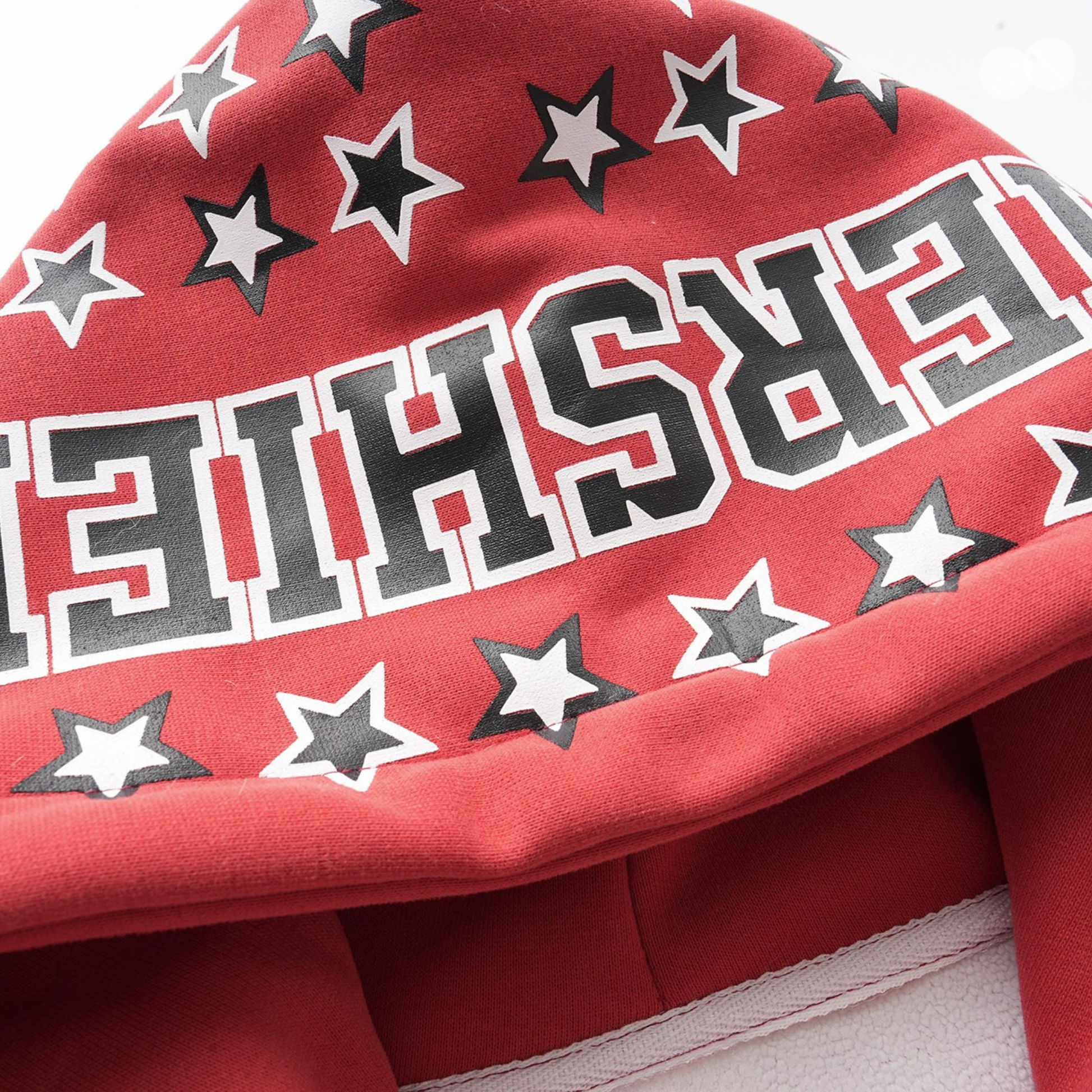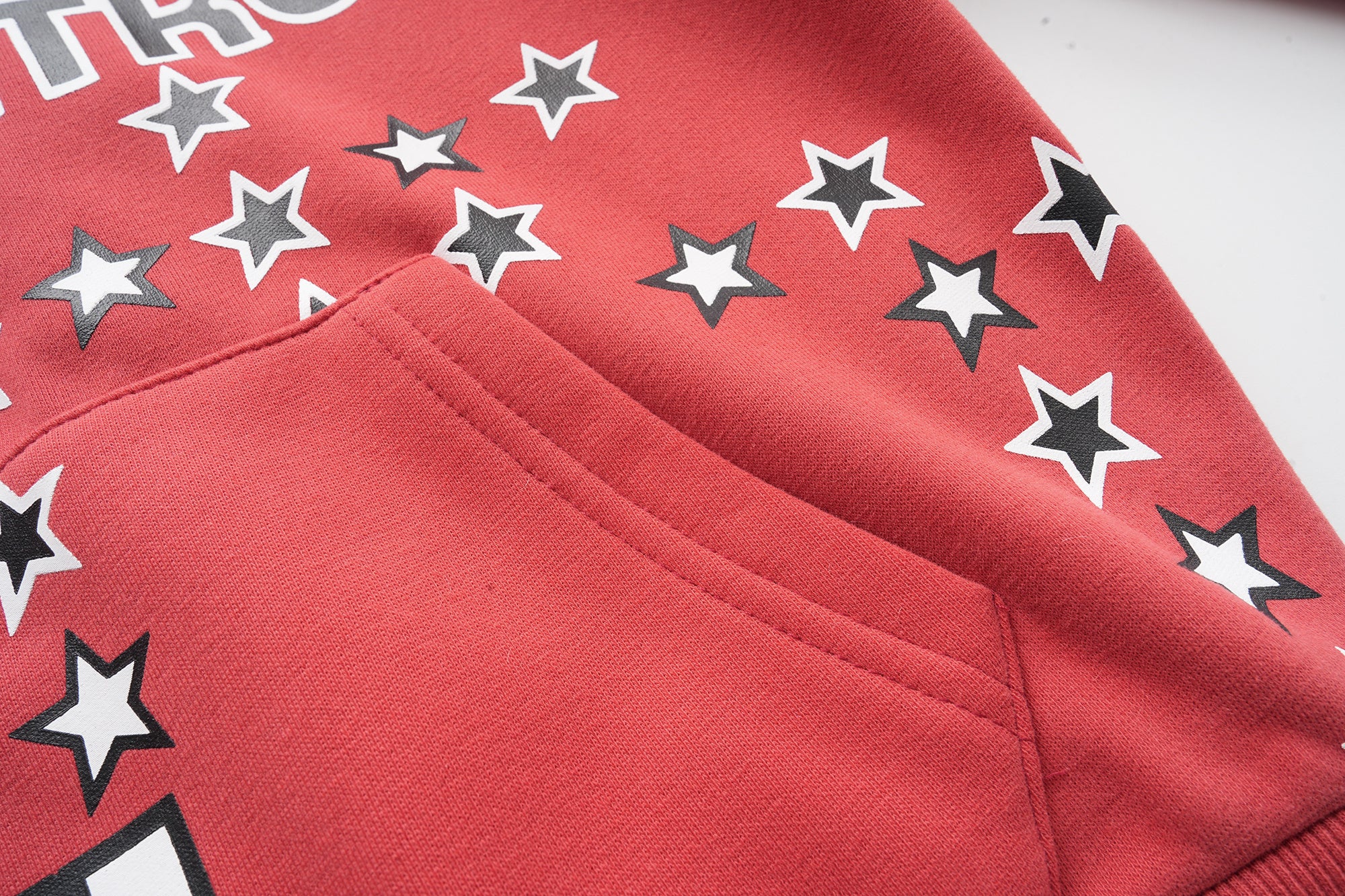 Clothing details: Oversized varsity lettering, full-zip front, adjustable hood, star graphic prints, ribbed cuffs and hem, soft fleece lining