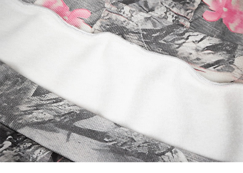 The Omirad Sakura Camo Graphic Hoodie features an all-over woodland camo base layered with soft pink sakura florals and bold gothic-style graphics, creating a striking contrast between dark street aesthetics and delicate seasonal elements. Designed for warmth and statement styling, this hoodie delivers a bold visual presence with everyday comfort.
