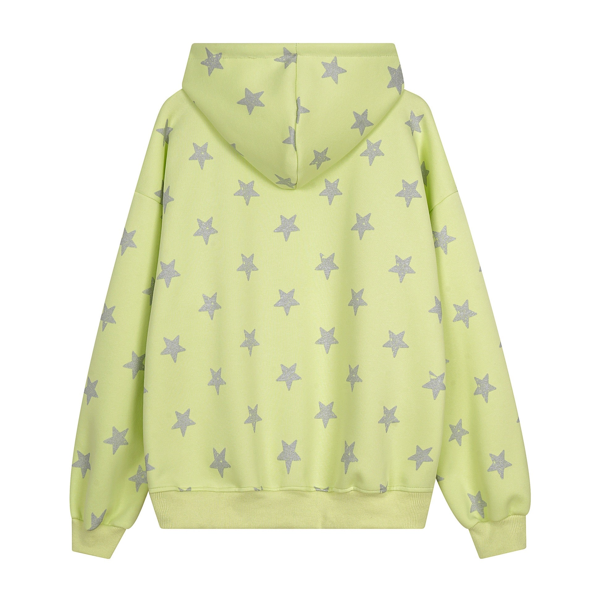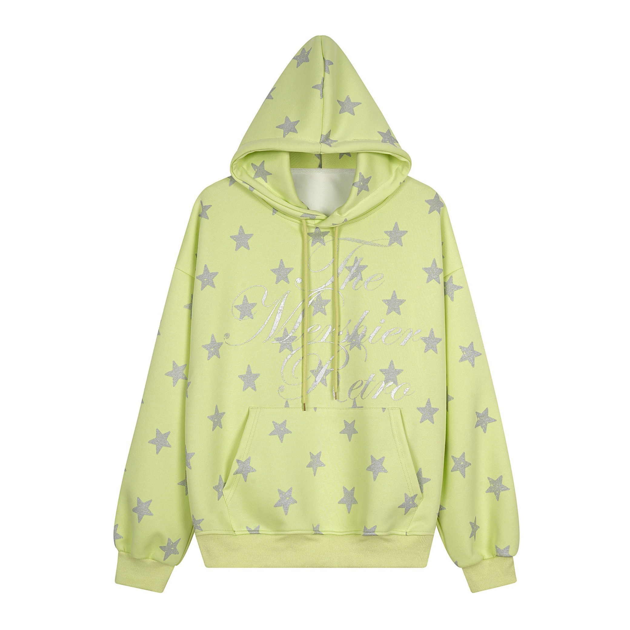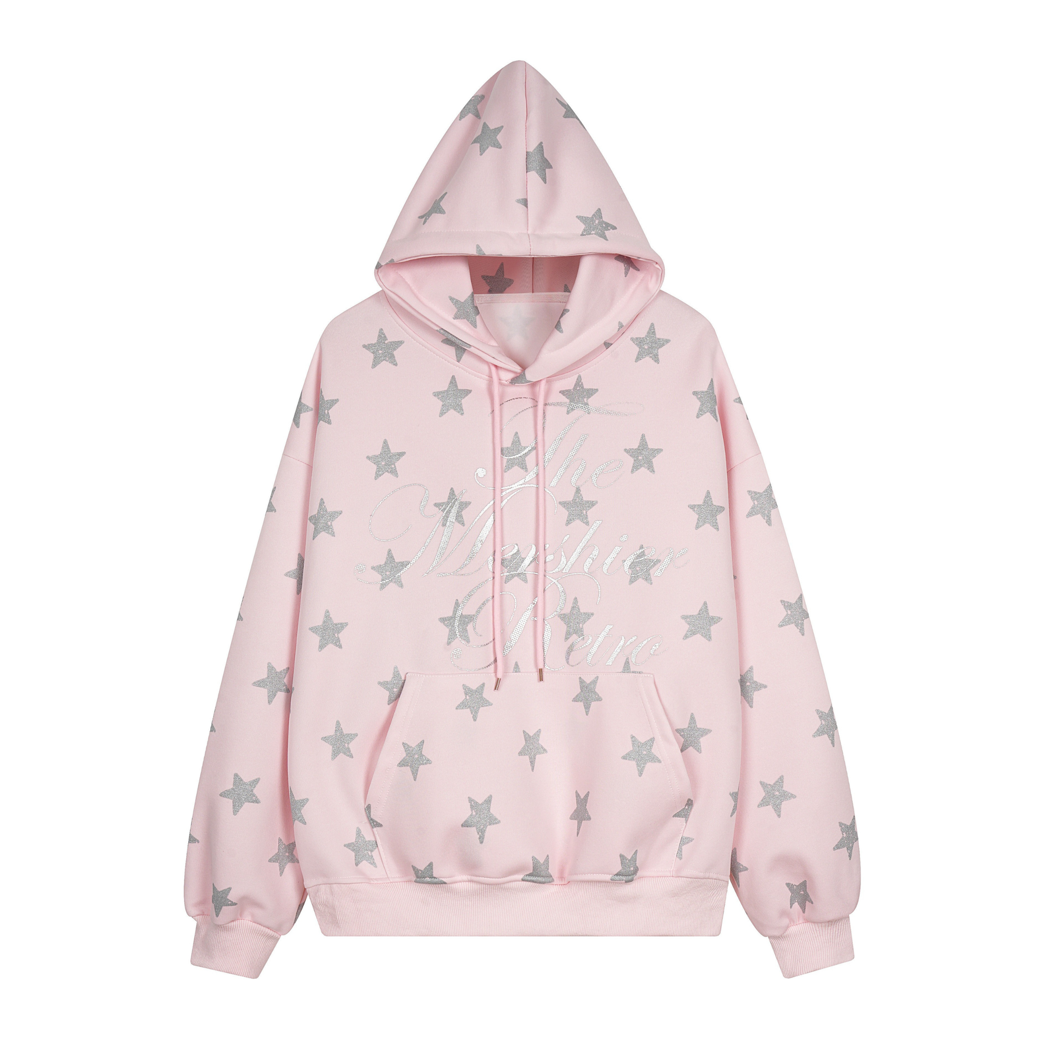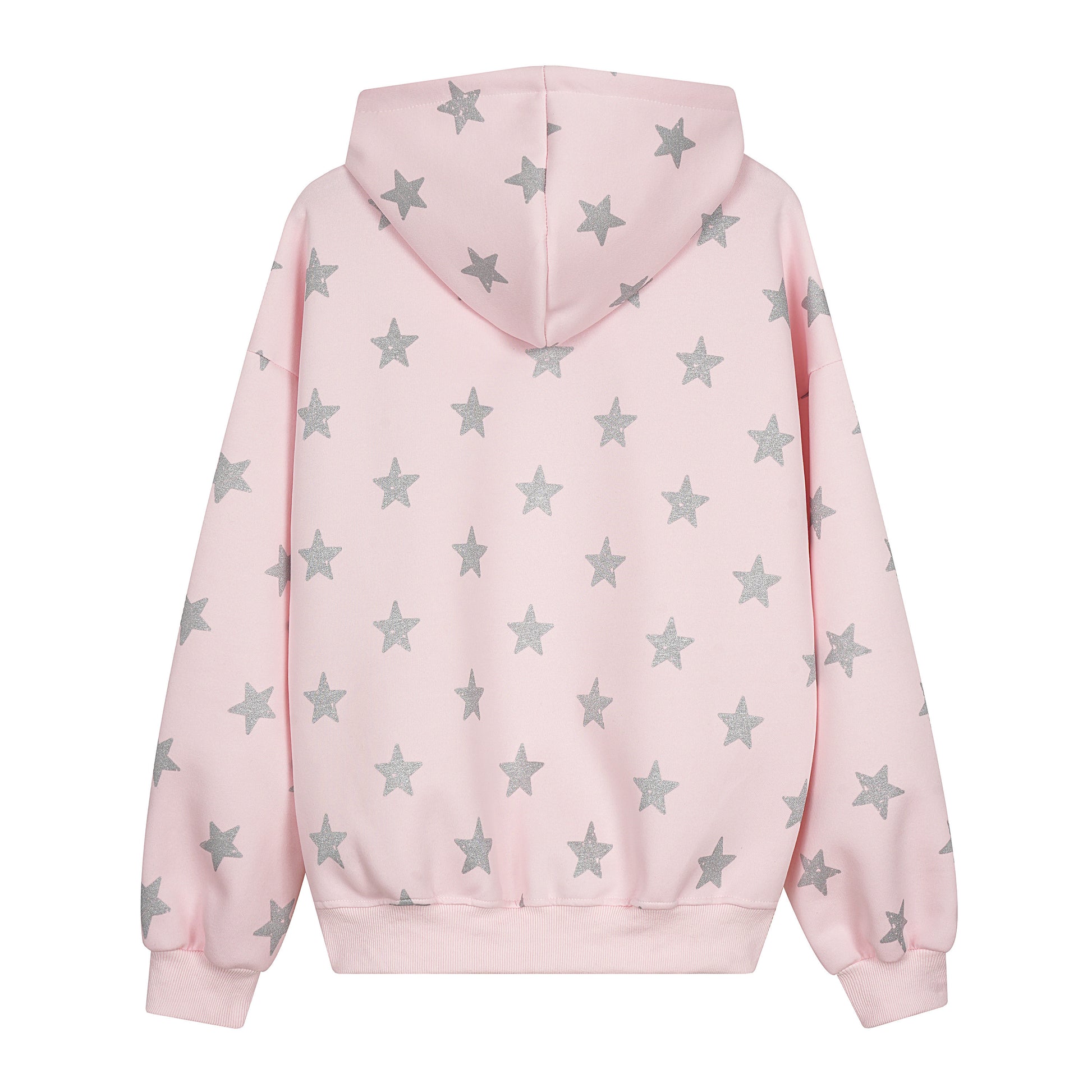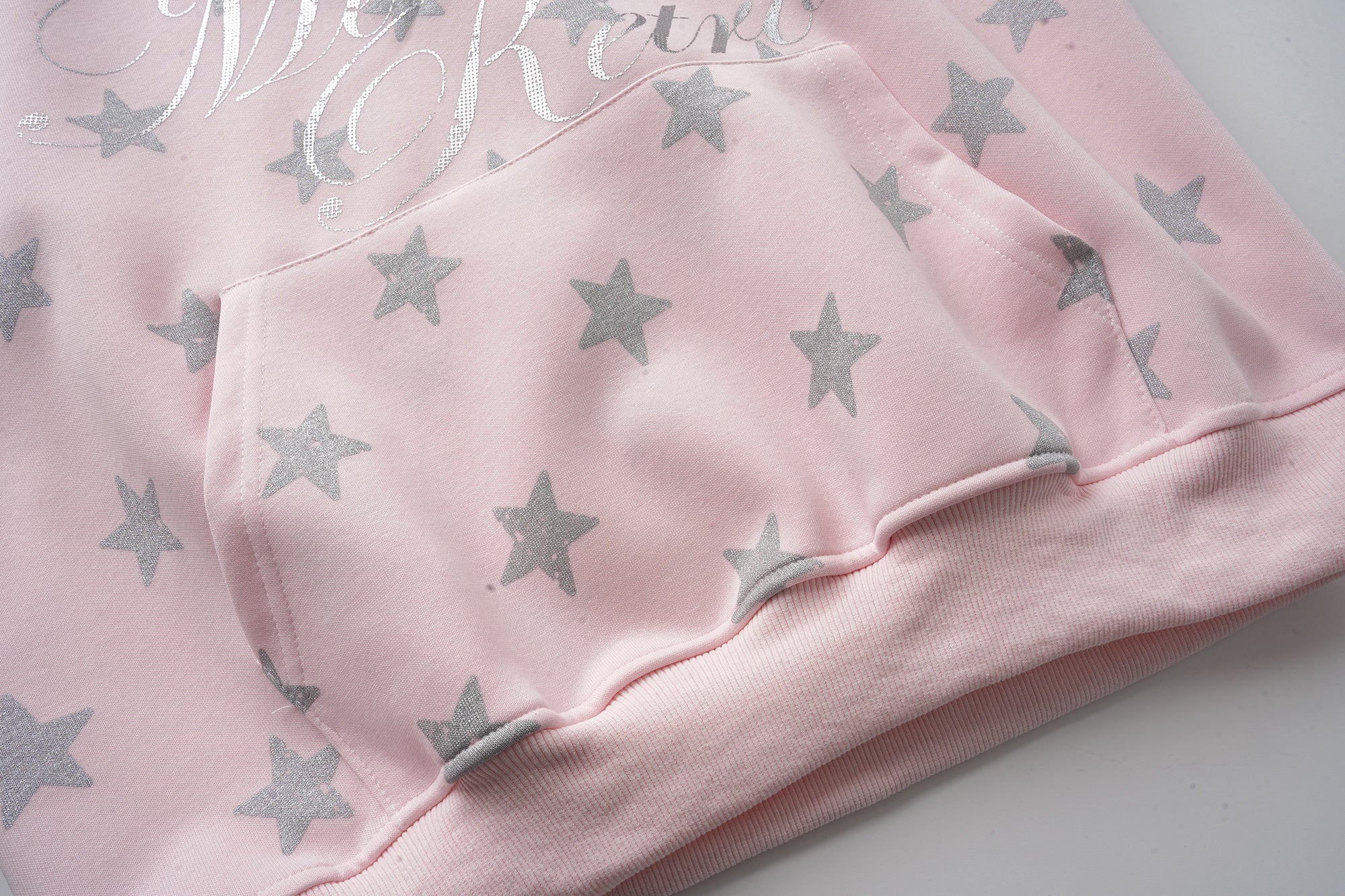 The Omirad Star Script Hoodie blends soft color tones with eye-catching metallic star prints for a playful yet elevated streetwear look. The all-over star pattern pairs with an elegant script graphic across the chest, creating a balanced mix of bold and refined aesthetics. Designed for comfort with a relaxed everyday silhouette.