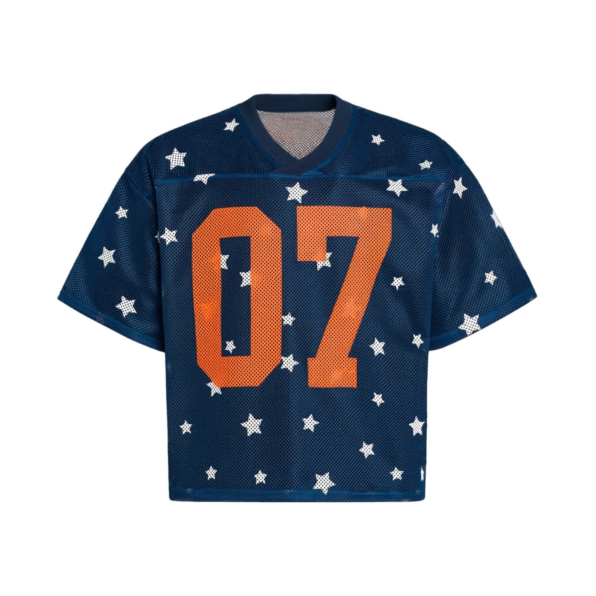 The Omirad Starfield Mesh Jersey blends classic sportswear aesthetics with modern streetwear energy. Featuring an all-over star pattern and bold varsity-style numbering, this breathable mesh jersey delivers a lightweight feel and standout visual impact for everyday styling.